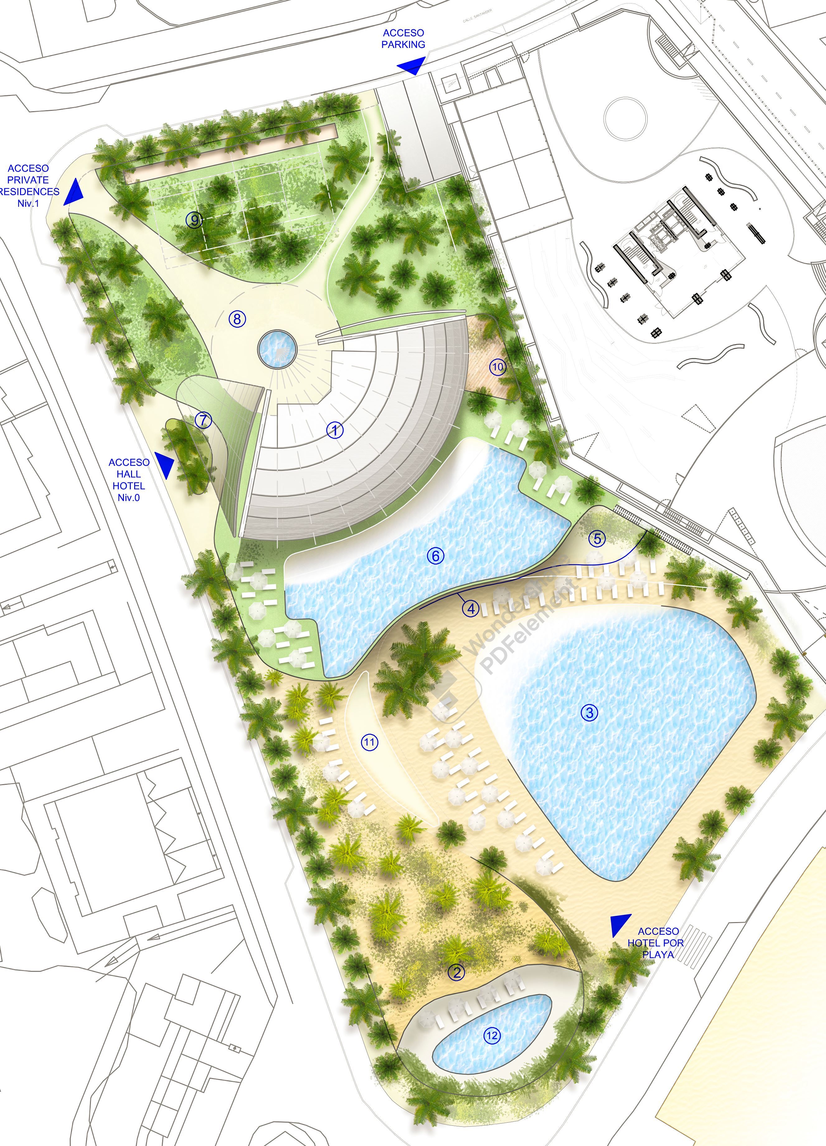 A unique project with the highest qualities and on the first beach line in Benidorm. All apartments will have unobstructed views of the Mediterranean Sea and with the ultimate location right in front of the beach and close to all restaurants, bars and shops. The luxury complex will consist of a hotel (lower part) and the remaining part of the apartment building will be ordinary apartments with the possibility of renting out (tourist licence will be available). The urbanisation includes Sky Garden, restaurant, social club, conference and coworking spaces, reception in the entrance, Beach Club adjacent to a swimming pool and directly adjacent to the beach, yoga studio, sauna, tennis court, gym, etc. There are apartments with one or two bedrooms, and one or two bathrooms, and all with a terrace of about 15m2 facing the sea.