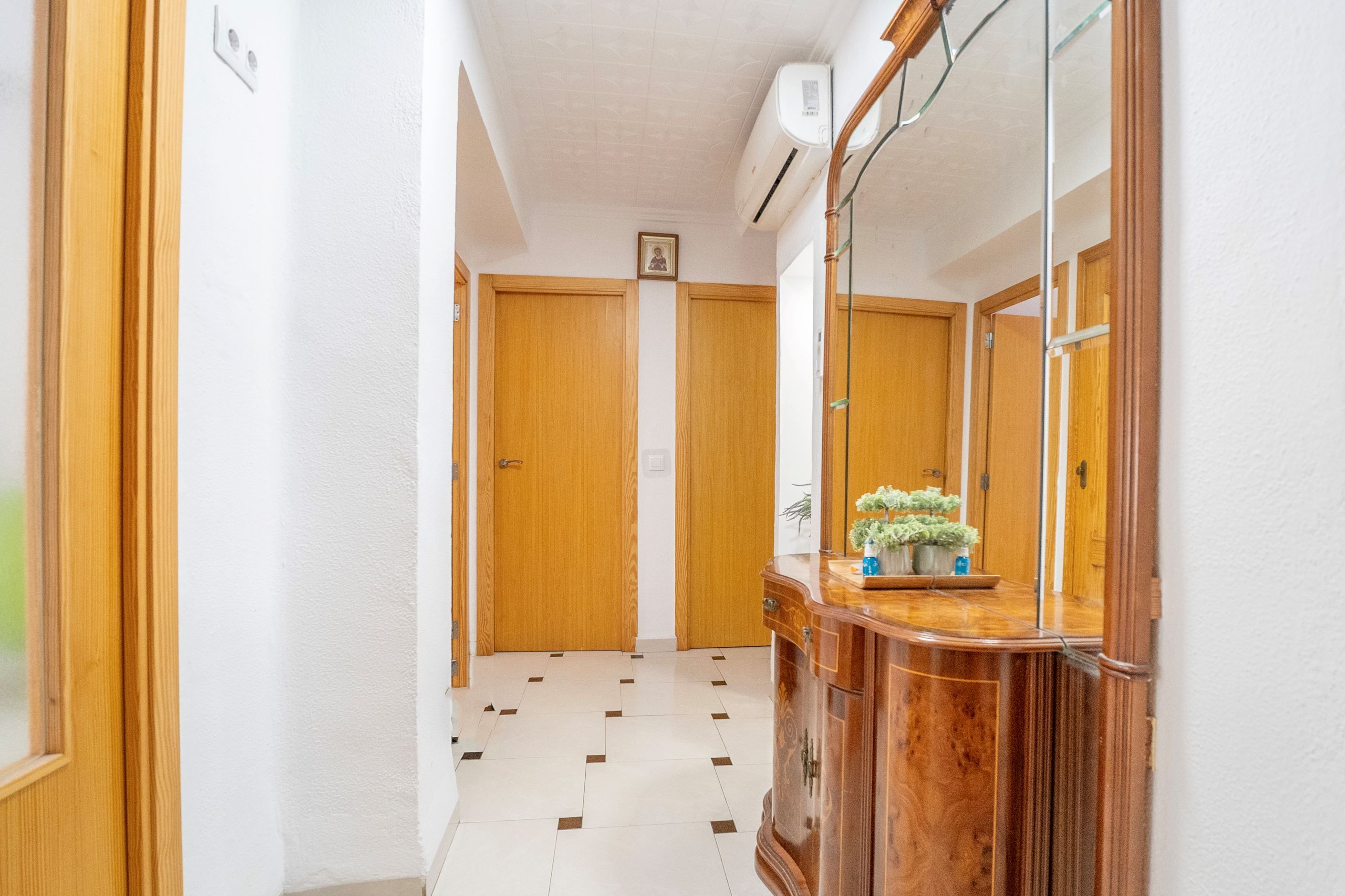 This three-bedroom flat is located in a quiet area with good transport links. It stands out for its comfort and for being ready to move into without the need for any renovations. Its location offers proximity to all daily amenities and, at the same time, the tranquillity of a well-maintained community, making it an excellent choice for both families and those looking for a practical and functional residence.