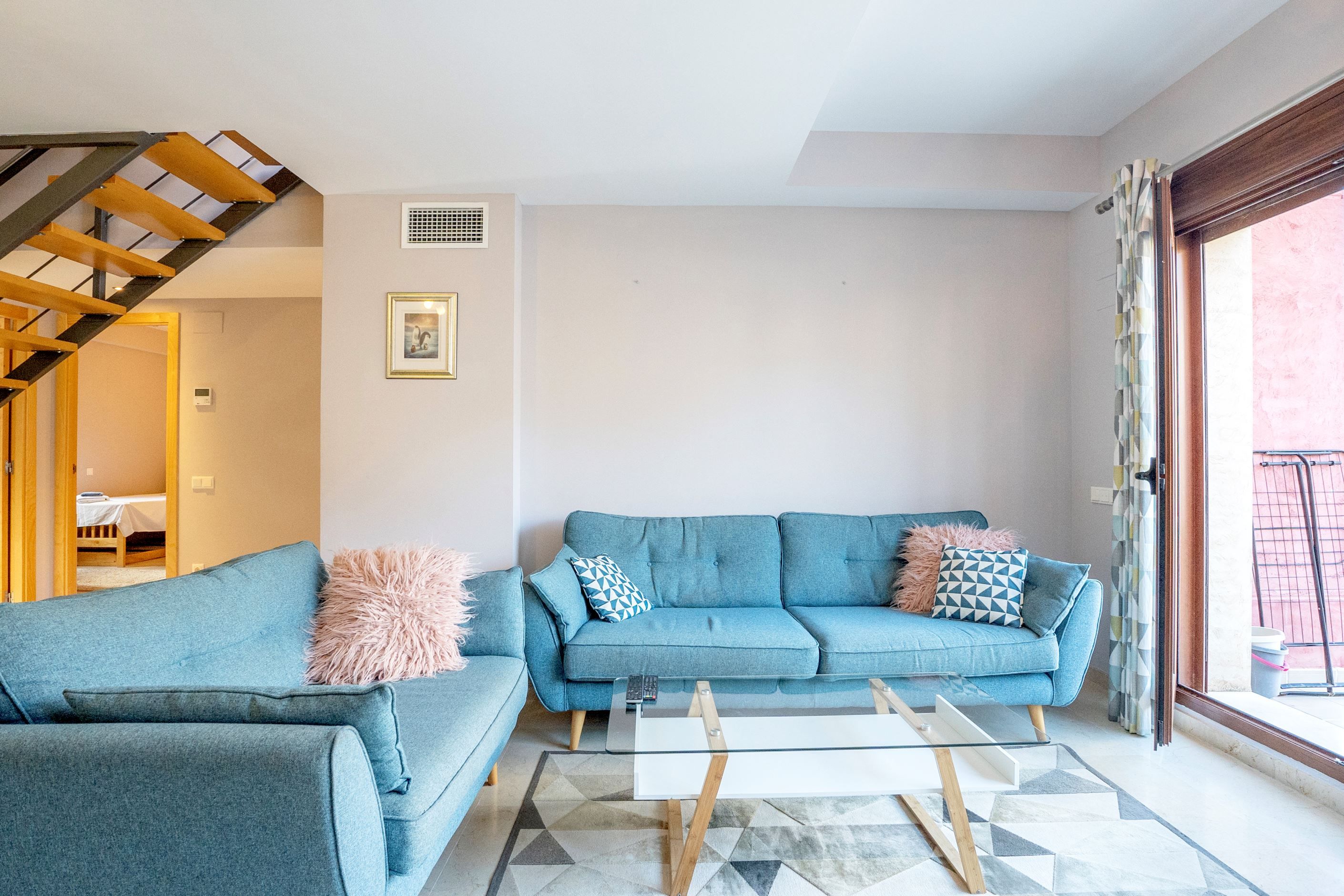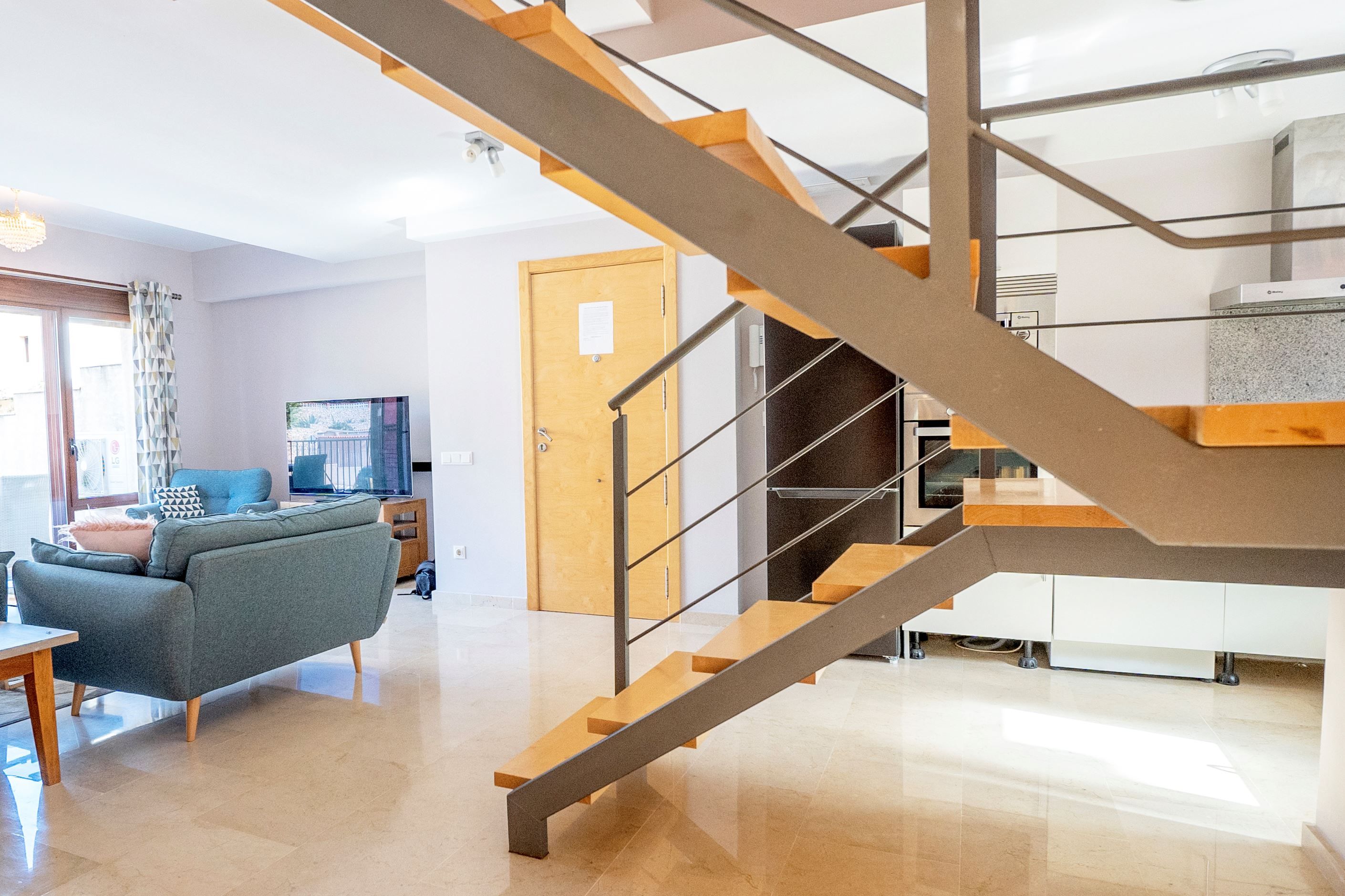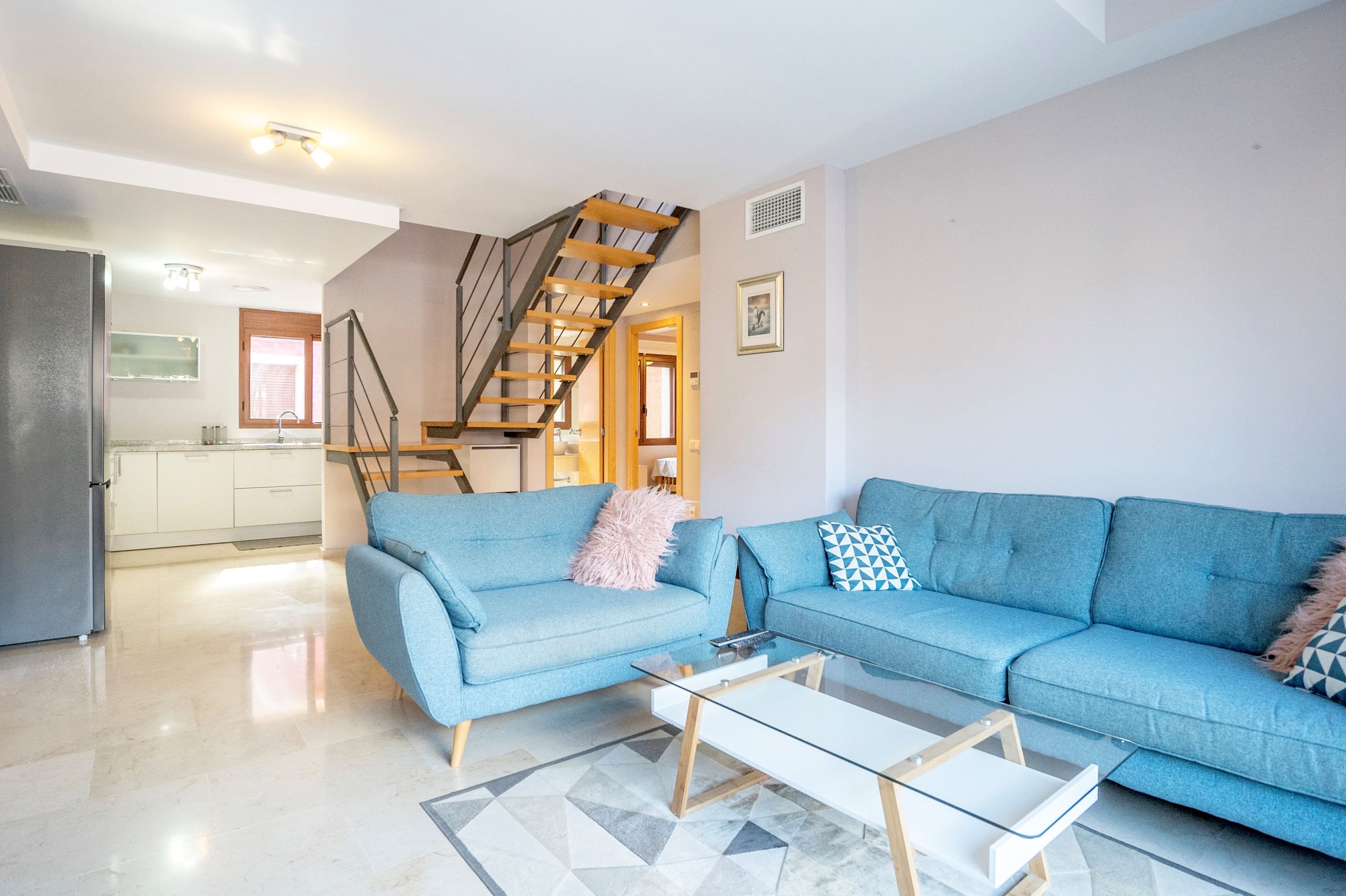 The interior features an open-plan kitchen, a bright and spacious living-dining area, two bedrooms with fitted wardrobes, and two bathrooms, one of them en suite. From the living room, there is access to a large terrace with open views. On the upper floor, a versatile space can be used as an extra bedroom, office, or relaxation area, with a private terrace ideal for sunbathing in peace.