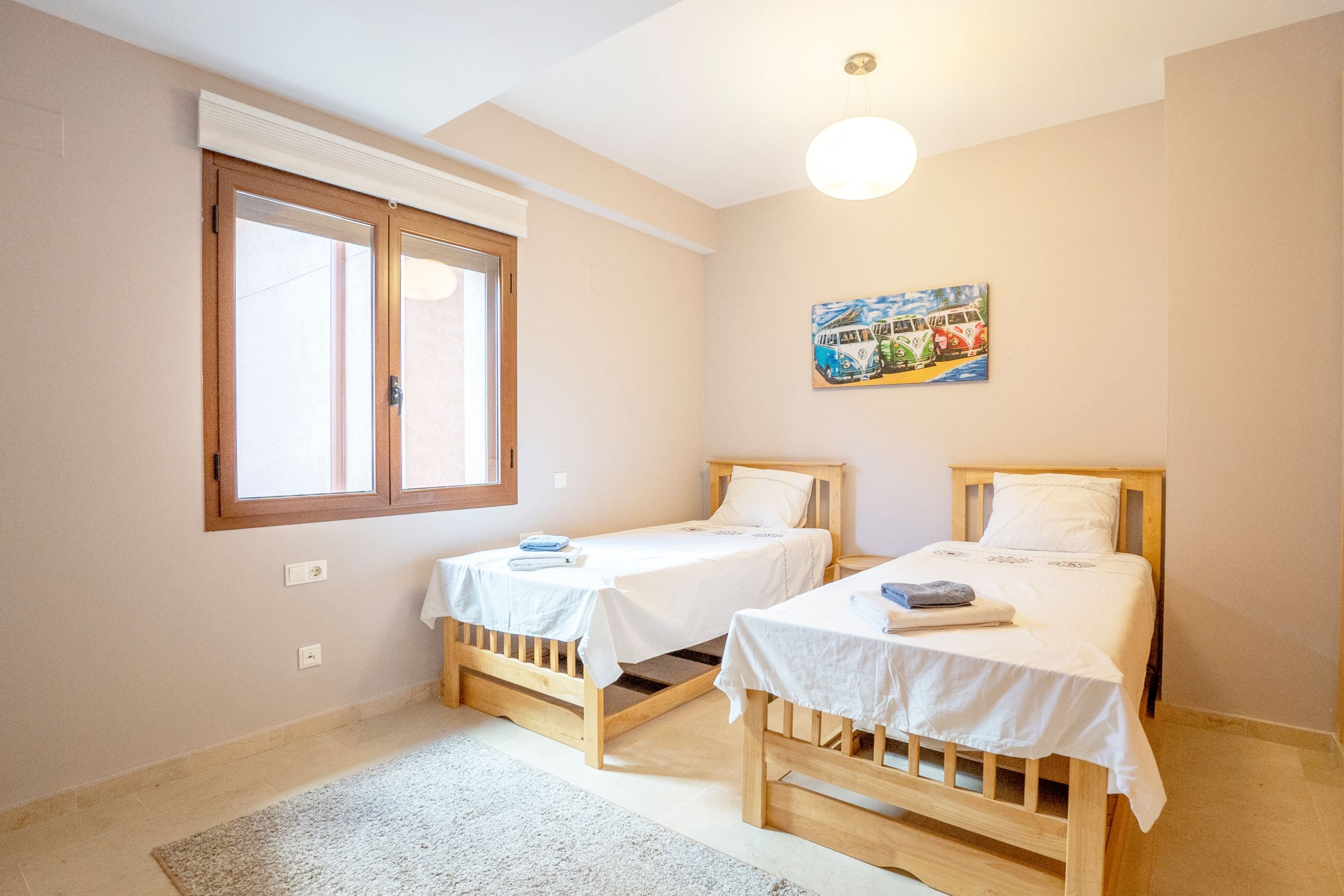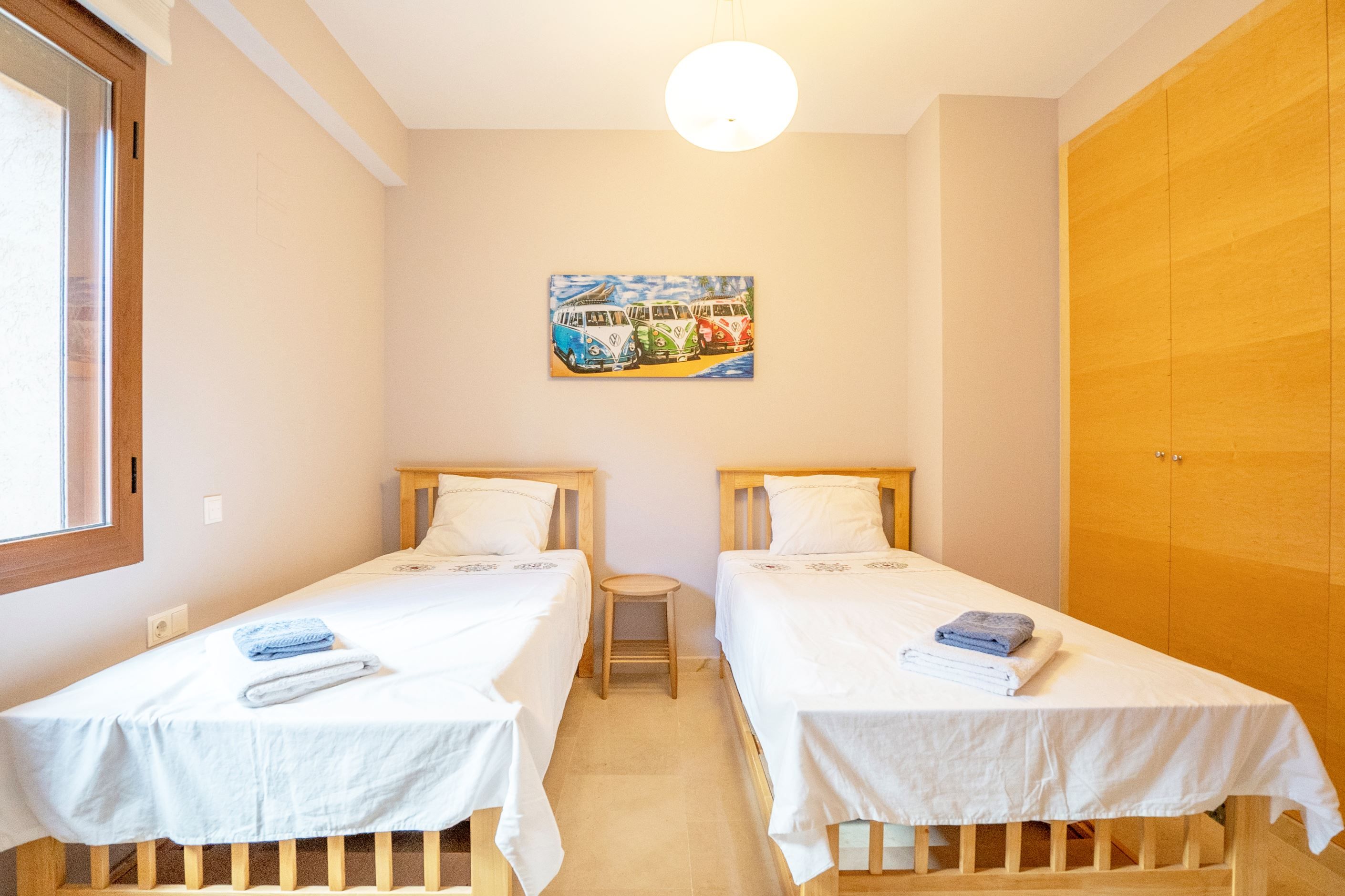 The apartment includes hot/cold air conditioning, a covered parking space, and a large storage room. The complex offers two outdoor pools, a children’s pool, a heated indoor pool, a sauna, and landscaped gardens. Located 2.2 km from the nearest beach, 900 m from restaurants, and 2.3 km from the nearest supermarket, with a 9-hole golf course 6 minutes away and Benissa and Moraira just a 10-minute drive.