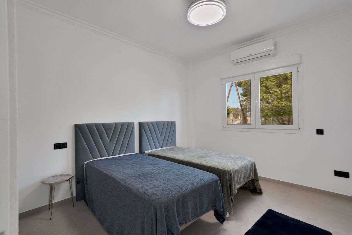 Upstairs are the private bedrooms, with access to two panoramic terraces overlooking the pool, garden and coastline. The master suite and another bedroom have en-suite bathrooms, while a third bright bedroom and another bathroom complete the floor plan – perfect for family and guests who value both comfort and privacy.
