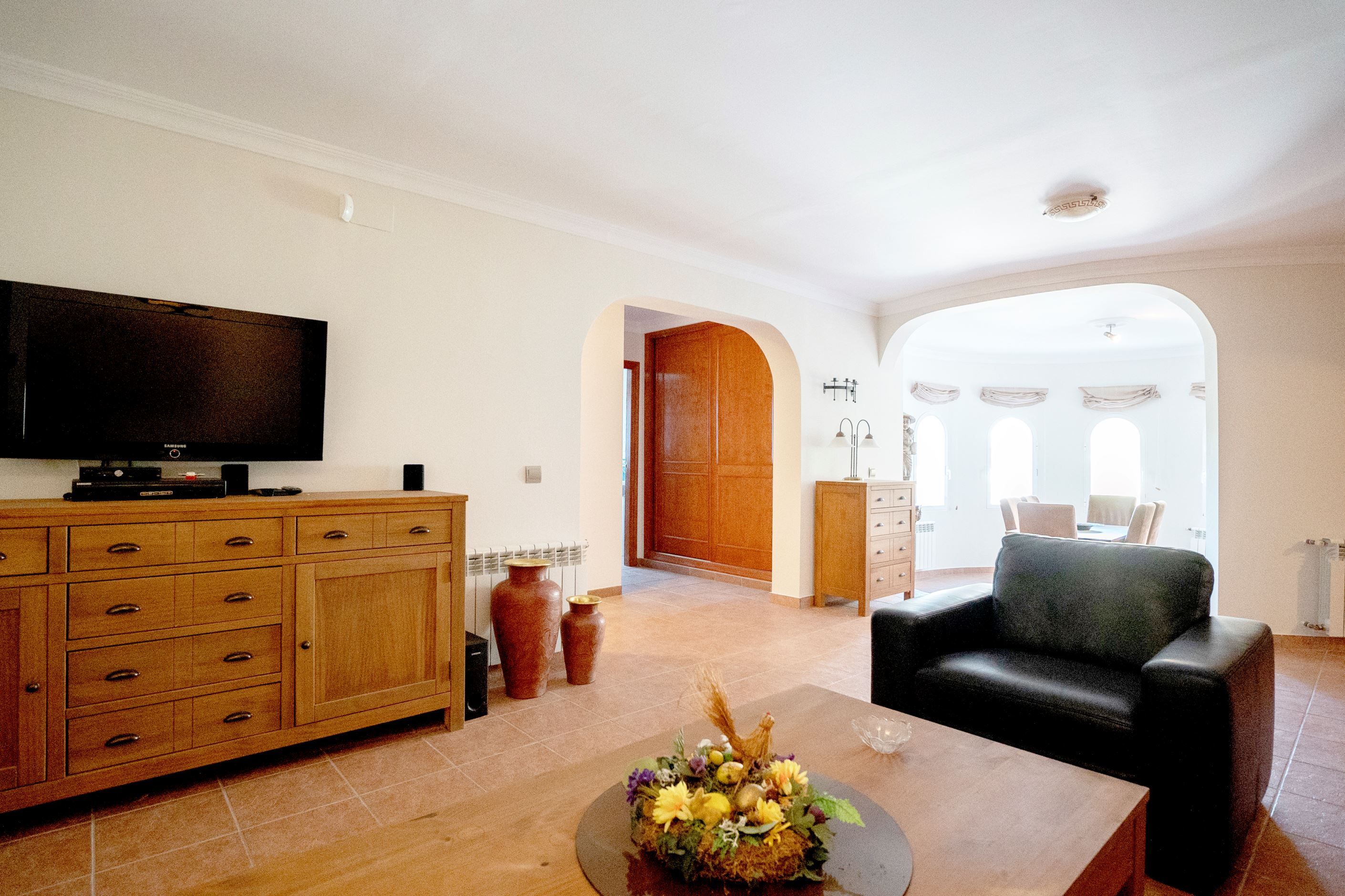The lower floor is furnished as a separate apartment with its own kitchen, living room, two bedrooms, an additional master bedroom with en-suite bathroom and separate entrance – ideal for guests or rental.