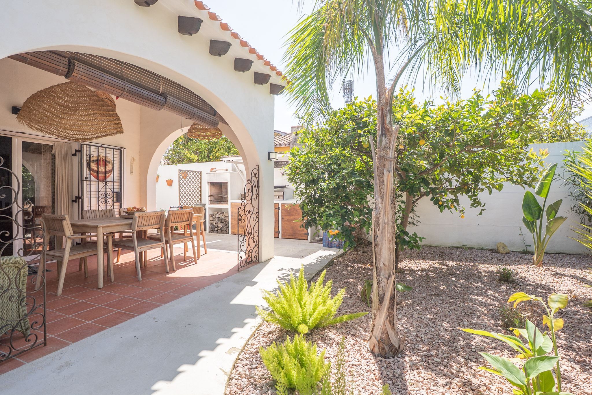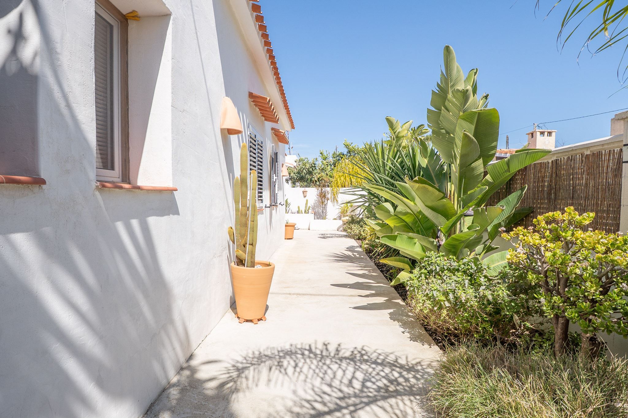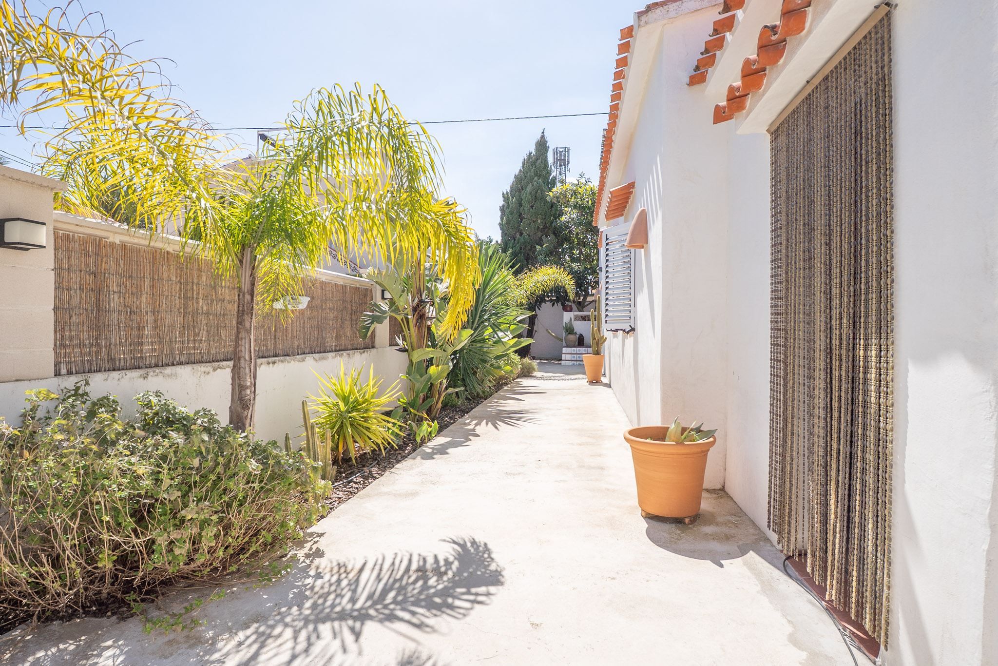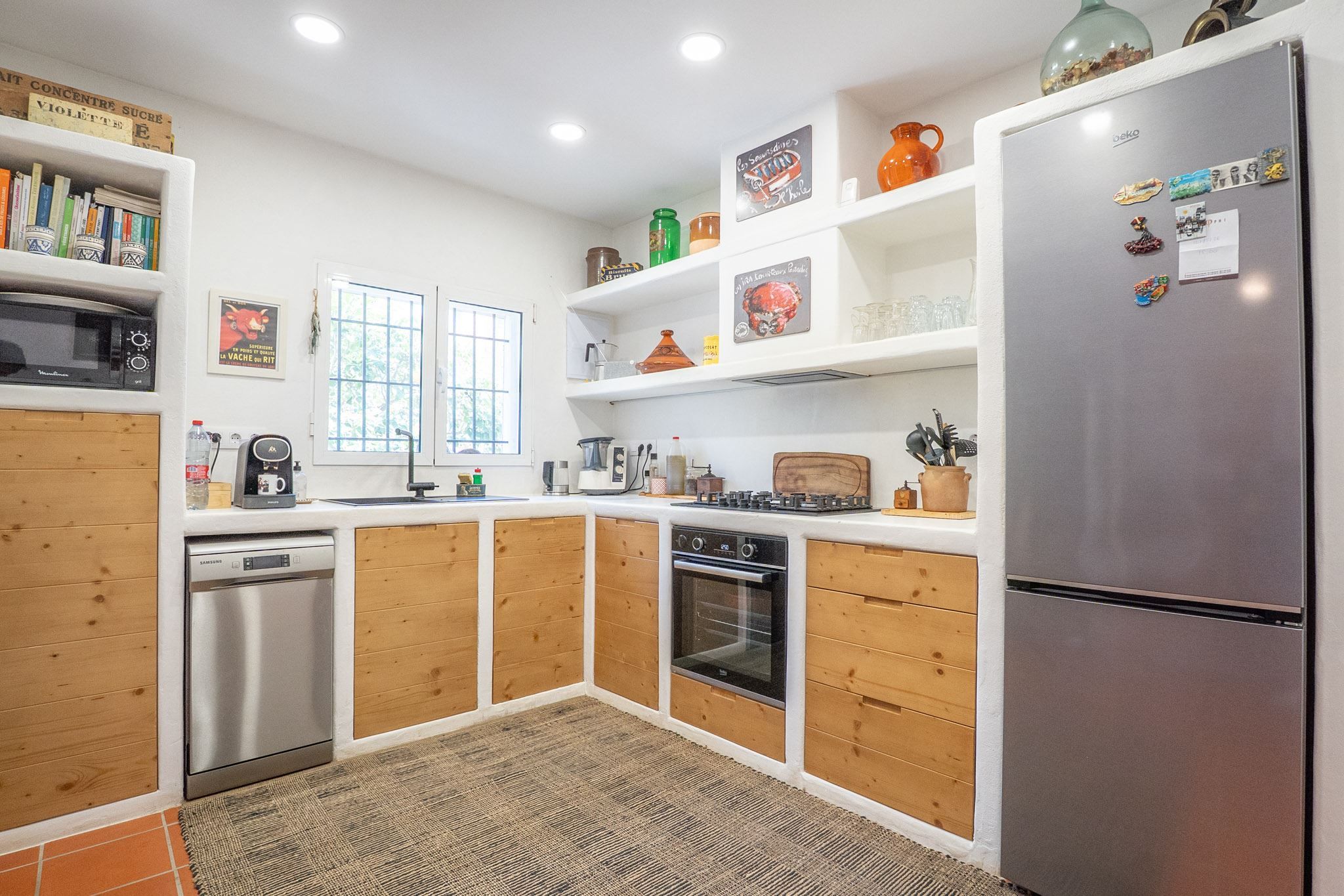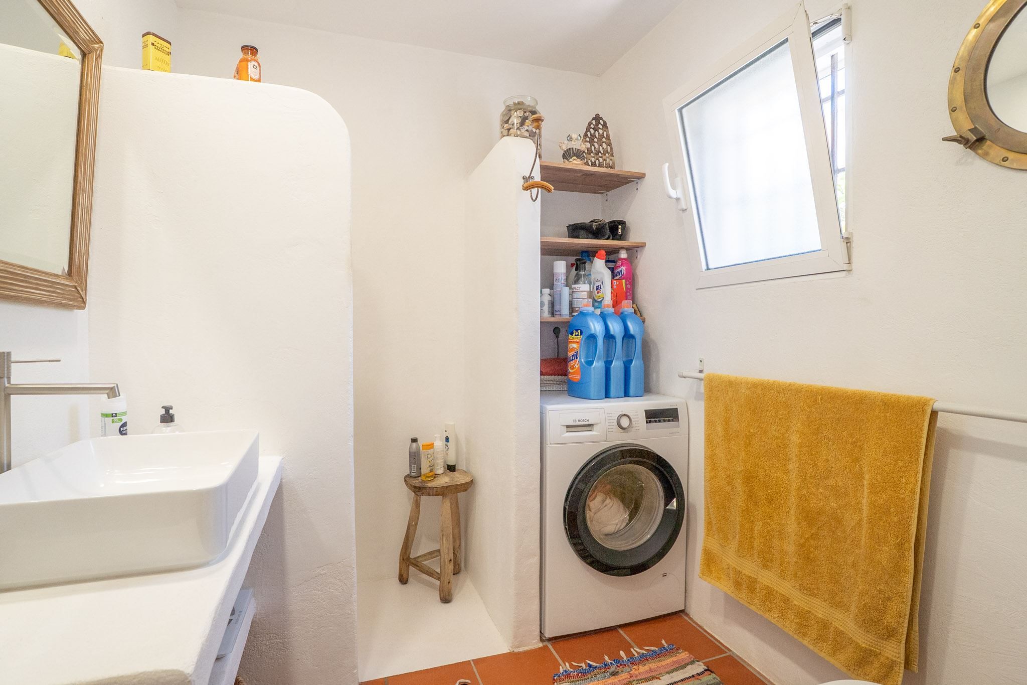 The property offers three bedrooms and two bathrooms, all renovated in an Ibiza-inspired style, with custom-made features throughout the kitchen, bathrooms and bedrooms. The combination of solid construction and wood details creates a warm and unique atmosphere. The house is equipped with air conditioning and a pellet stove for year-round comfort. On the roof, there is also a private rooftop terrace with sea views, perfect for enjoying the sun all year round.