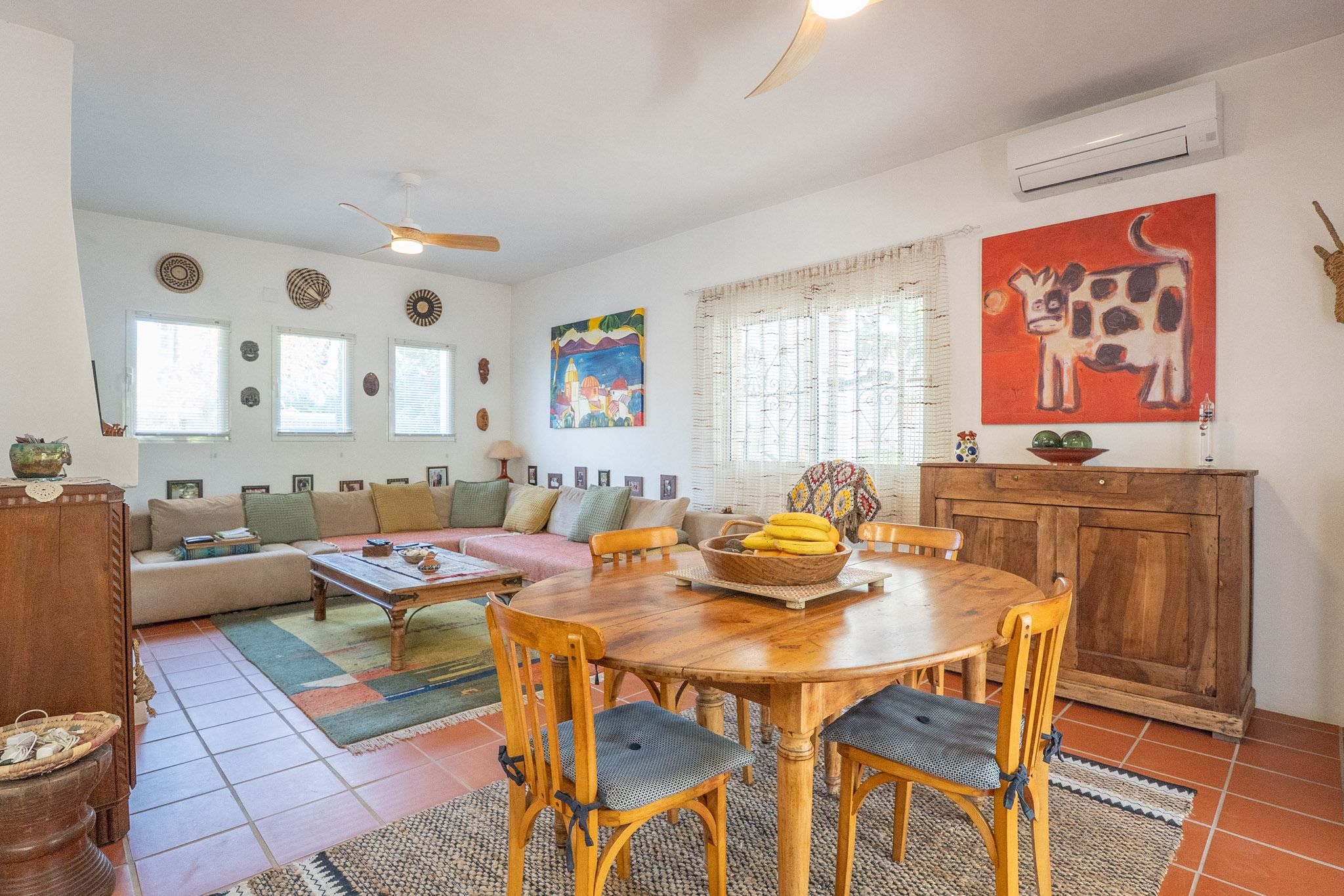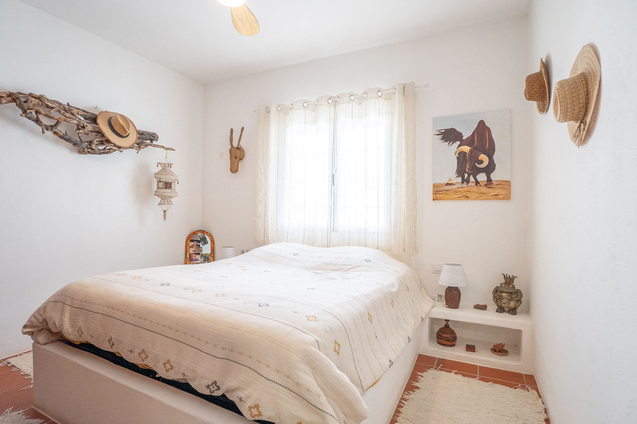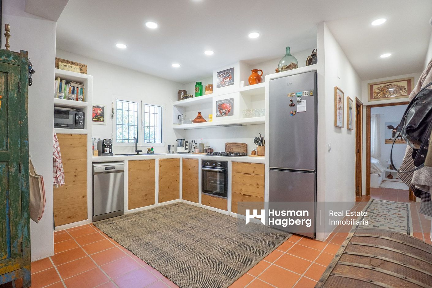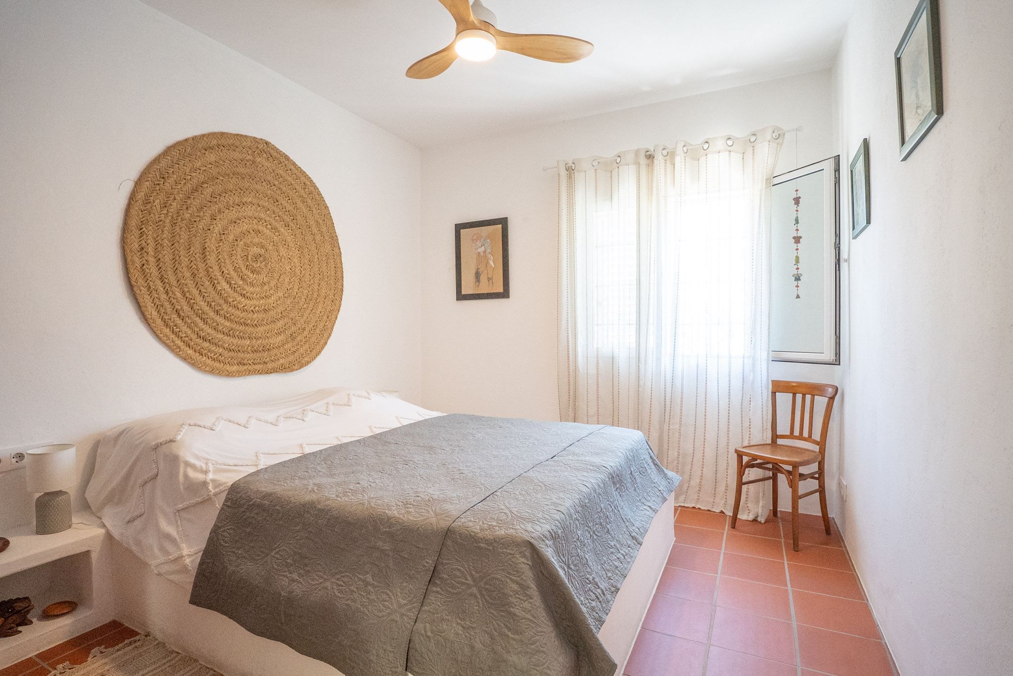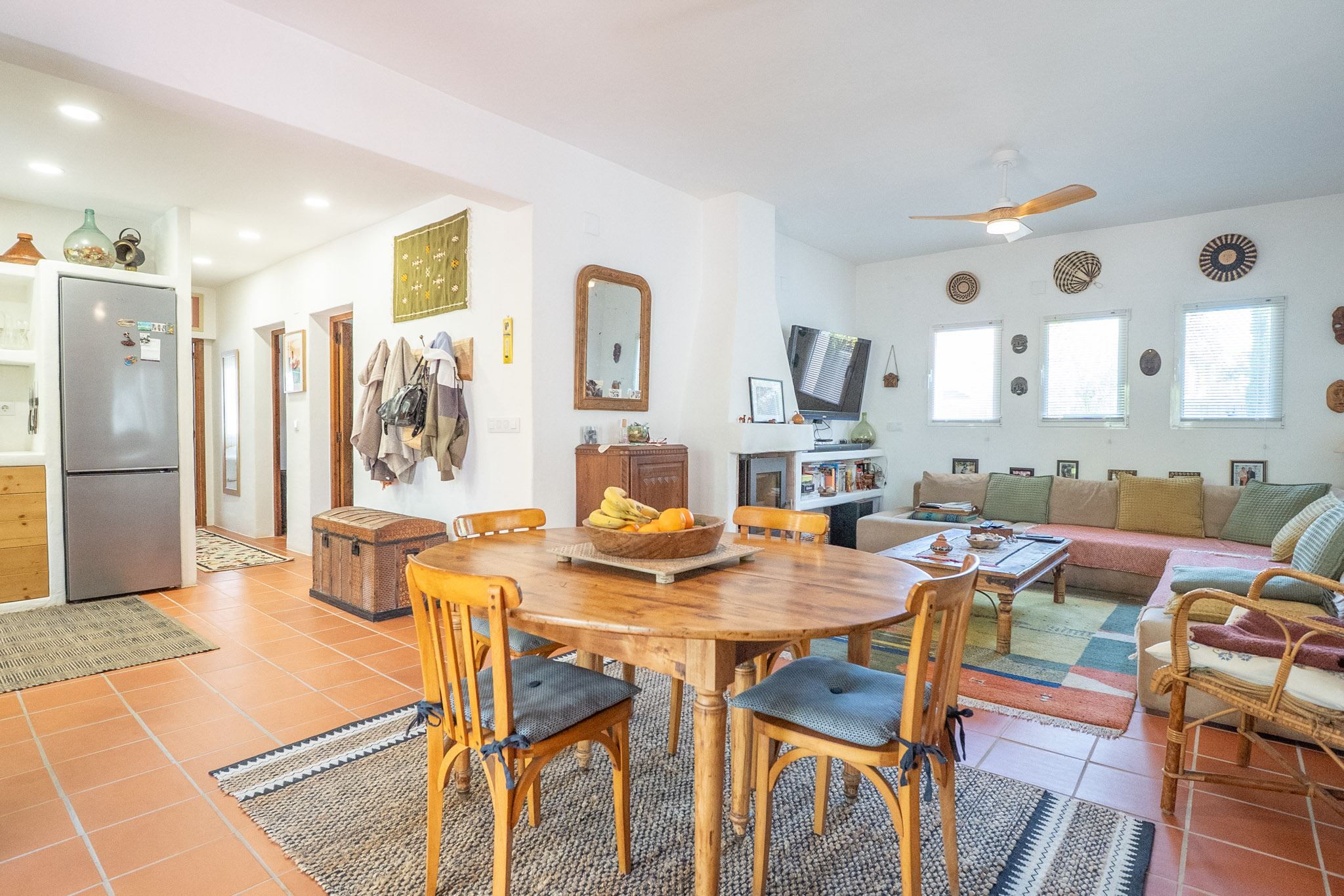 The property offers three bedrooms and two bathrooms, all renovated in an Ibiza-inspired style, with custom-made features throughout the kitchen, bathrooms and bedrooms. The combination of solid construction and wood details creates a warm and unique atmosphere. The house is equipped with air conditioning and a pellet stove for year-round comfort. On the roof, there is also a private rooftop terrace with sea views, perfect for enjoying the sun all year round.