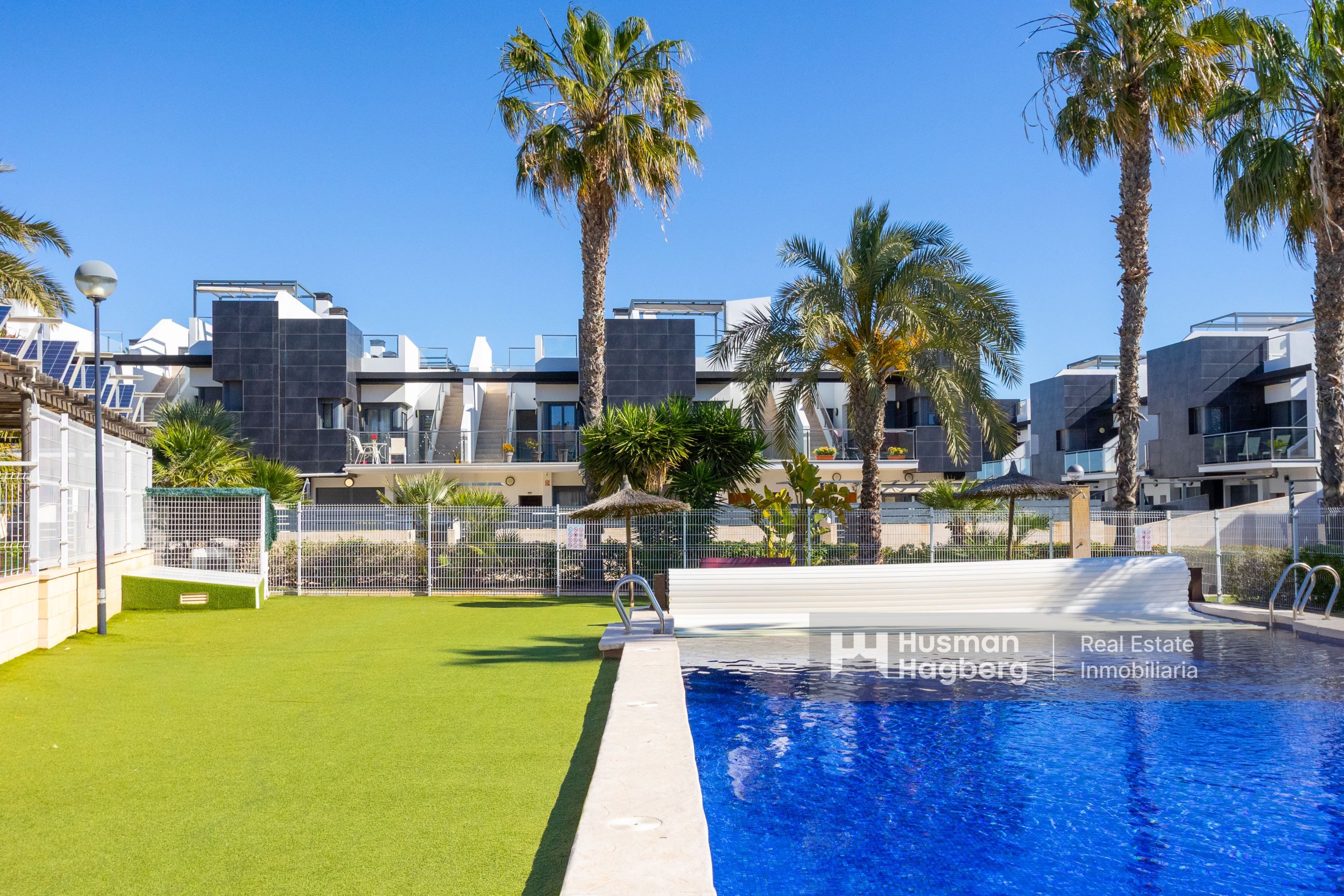 In a quiet and family-friendly area of Los Dolses you will find this spacious and bright home, located in a private and gated residential area with nice common areas. The home has a perfect south facing position which, together with large windows, fills the home with natural light from morning to evening and creates a warm and inviting atmosphere.