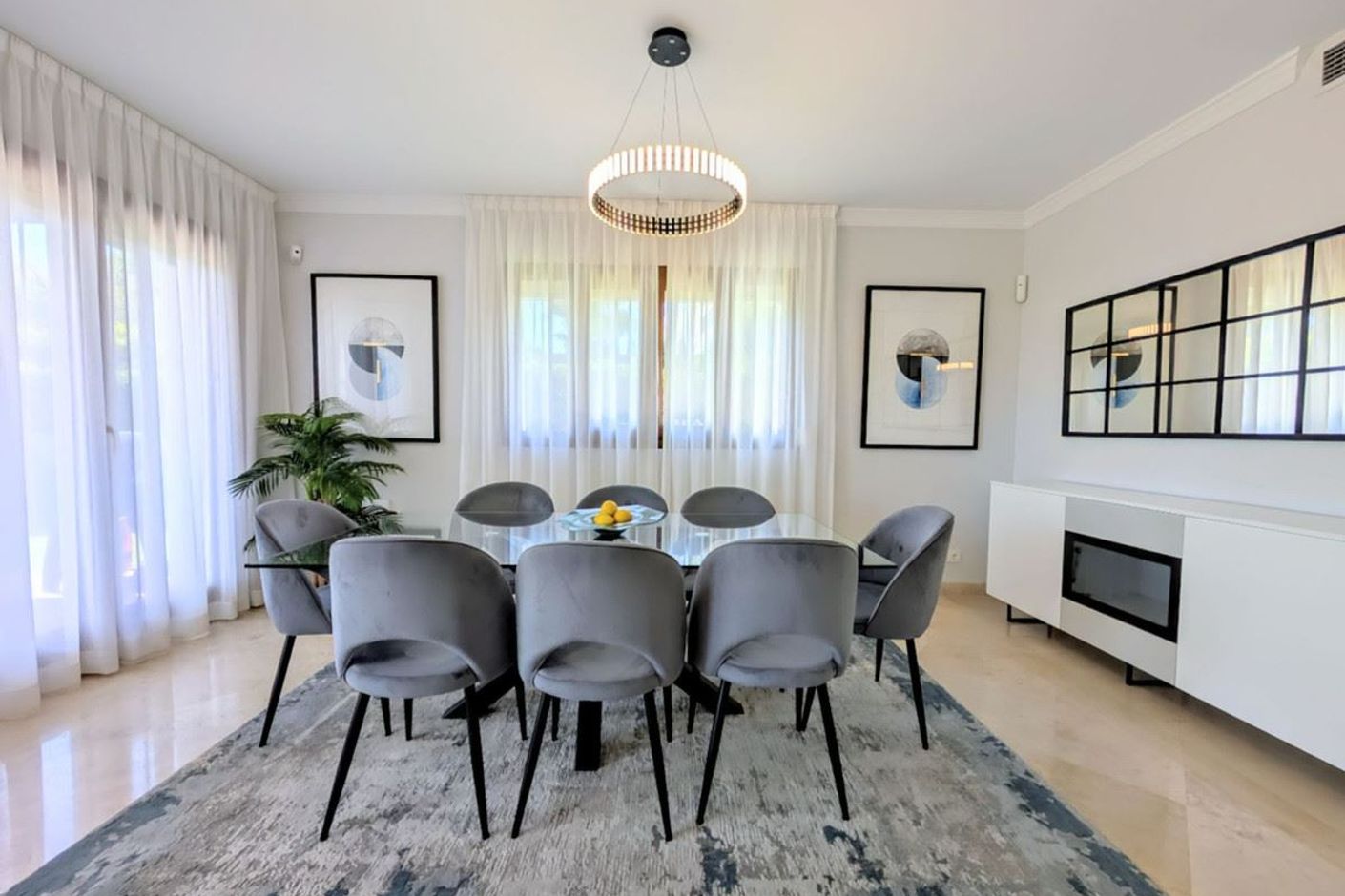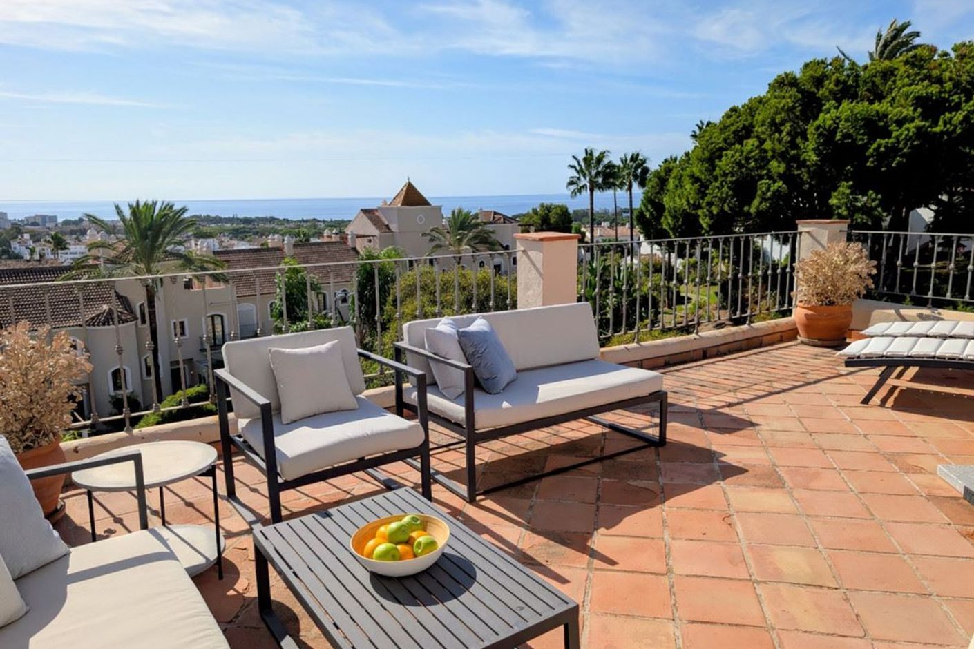 Welcome to this exclusive semi-detached house in the sought-after and gated community of Paraíso Hills, built in an elegant Mediterranean style and with a high standard throughout. The property is distributed over three floors and offers generous living areas and several terraces, including a fantastic roof terrace with panoramic views of the sea and La Concha mountain.