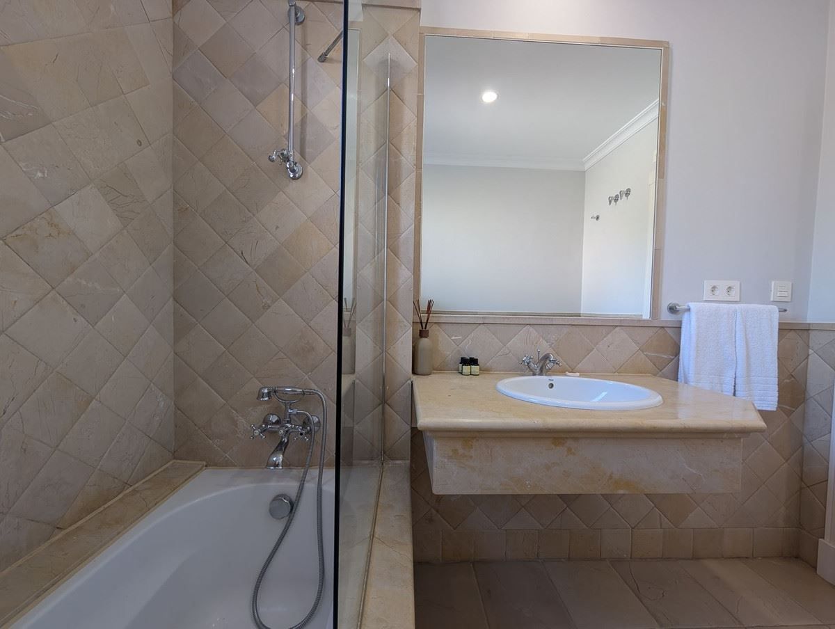 An elegant marble staircase leads up to the upper floor where three generous bedrooms are located. The master bedroom offers its own en-suite bathroom (bath and shower), built-in wardrobes and access to a sunny south-facing terrace. The two other bedrooms also have built-in wardrobes, access to the terrace and share a stylish bathroom. All bedrooms are equipped with individual climate control (A/C hot and cold).