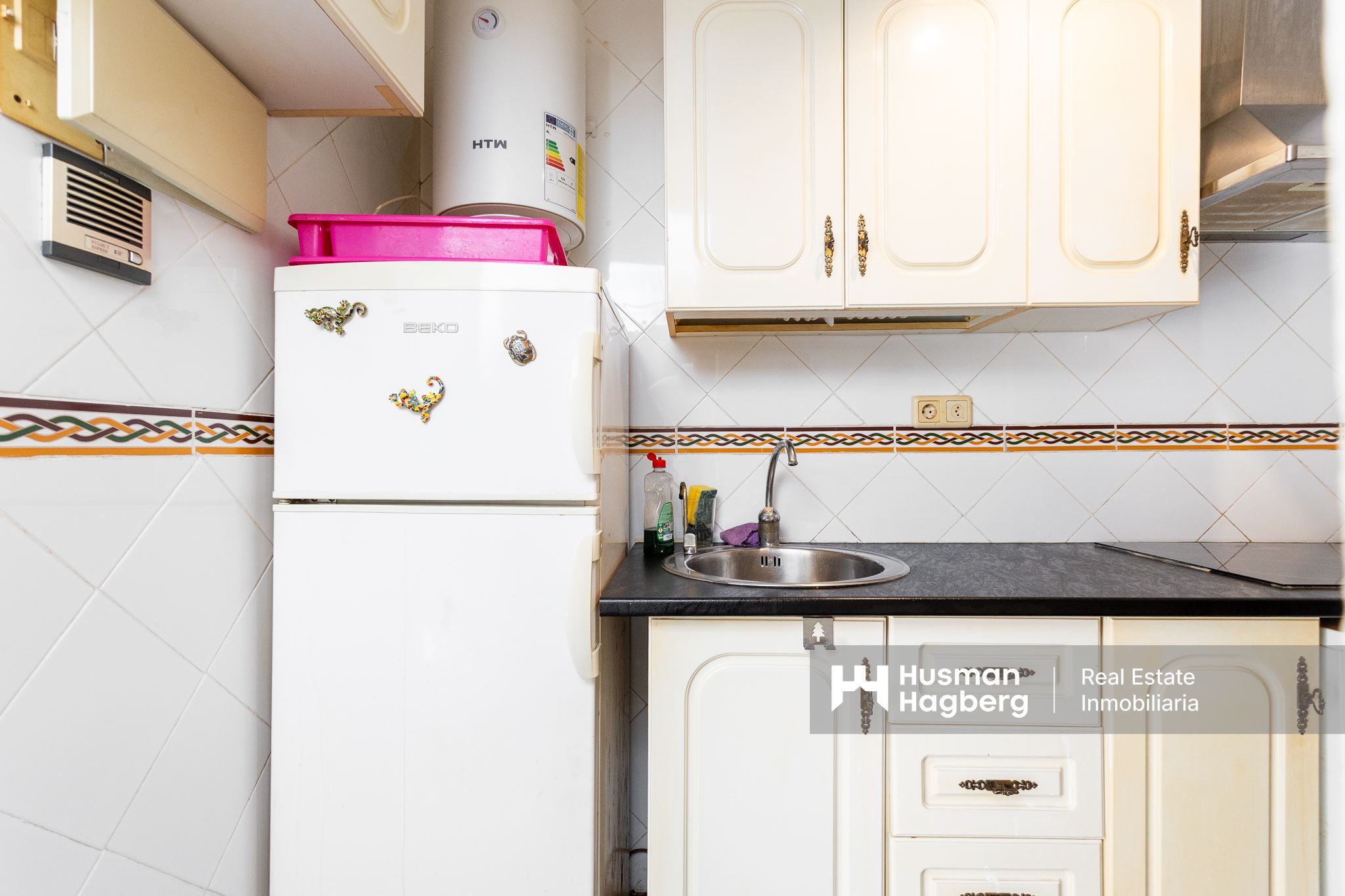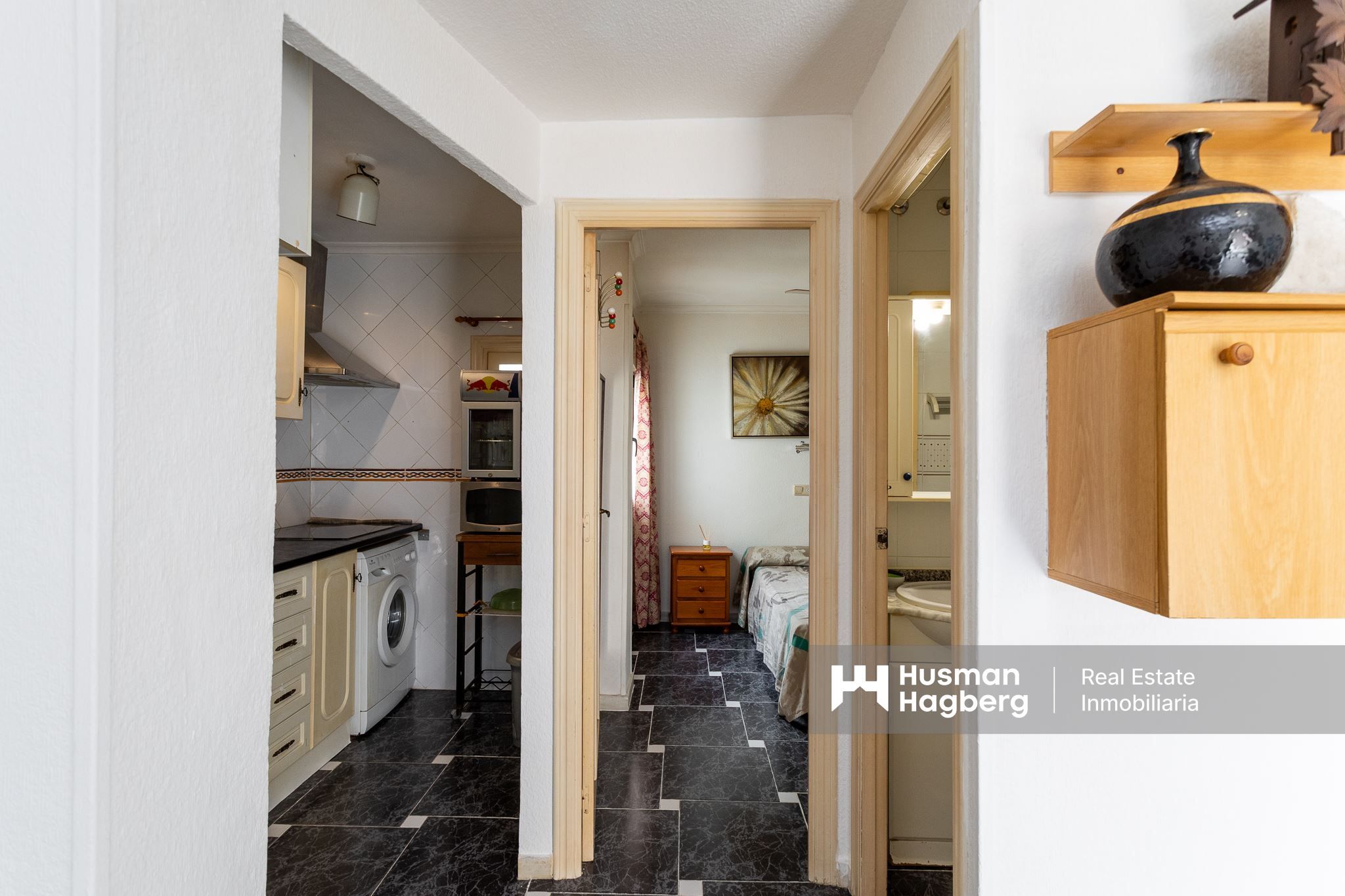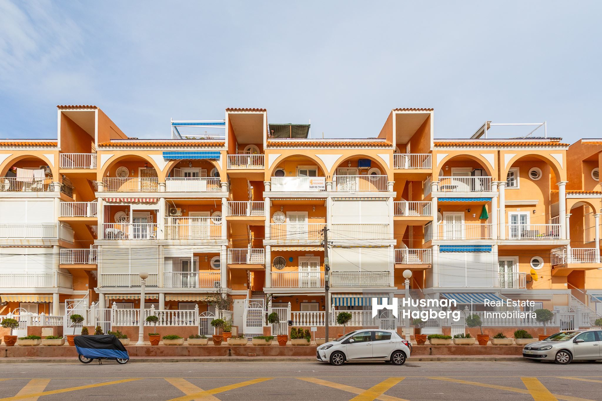 Just a few steps from the gentle breeze of the sea awaits this charming apartment, a home where the sun streams through the windows and where every day begins with the feeling of living on the coast for real. Here you live on the third floor in a cozy and well-kept residential area with lush gardens and an inviting communal pool that becomes a natural meeting place during the warm months of the year.