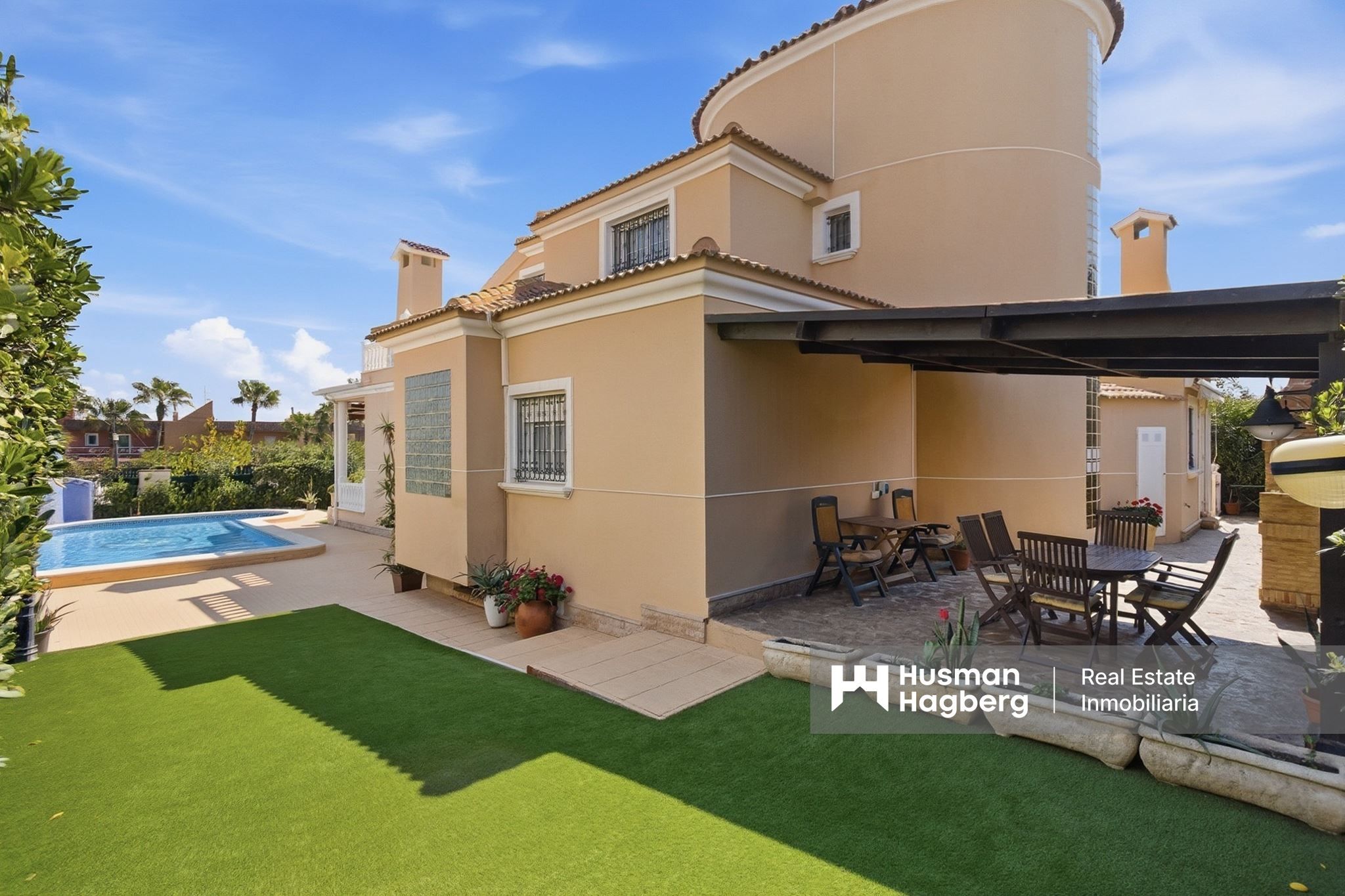 This is a villa for those looking for something unusually spacious, flexible and sunny – a home where the sea is only about 750 meters away, and where both indoor and outdoor life has generous space to flourish.