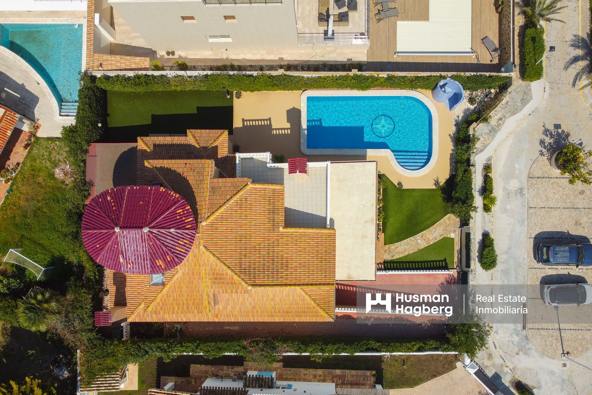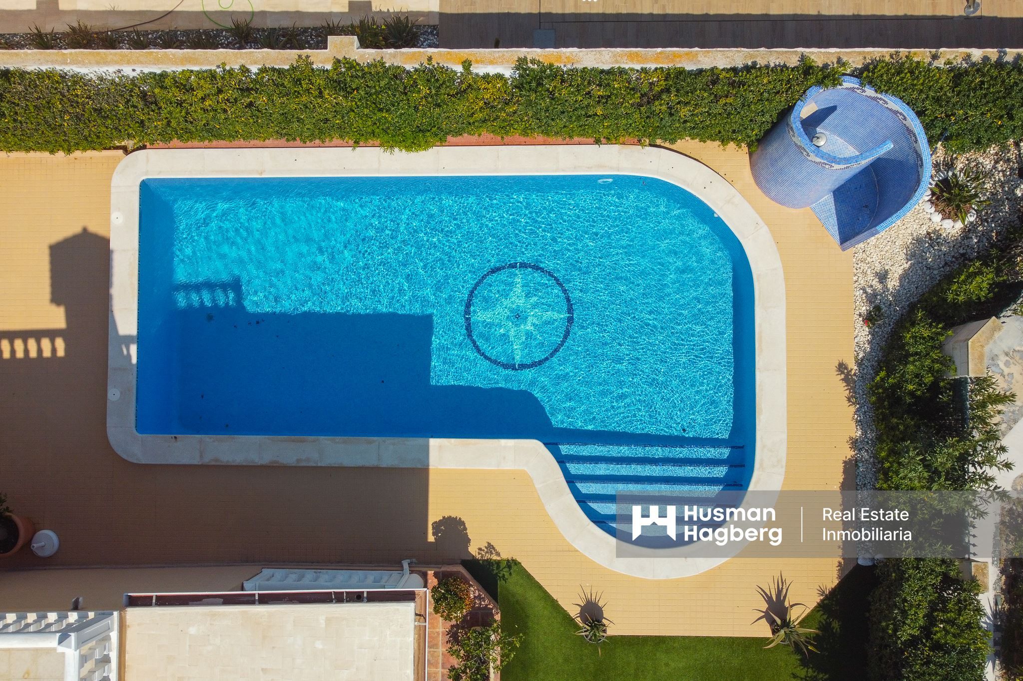 The villa has an impressive living space of 392 m2, spread over several generous floors. On the first floor, three bedrooms and three full bathrooms await you – bright and well-planned rooms, several with access to a spacious terrace with lovely sea views. Under the roof there is also a practical storage space that can accommodate everything from suitcases to seasonal items.