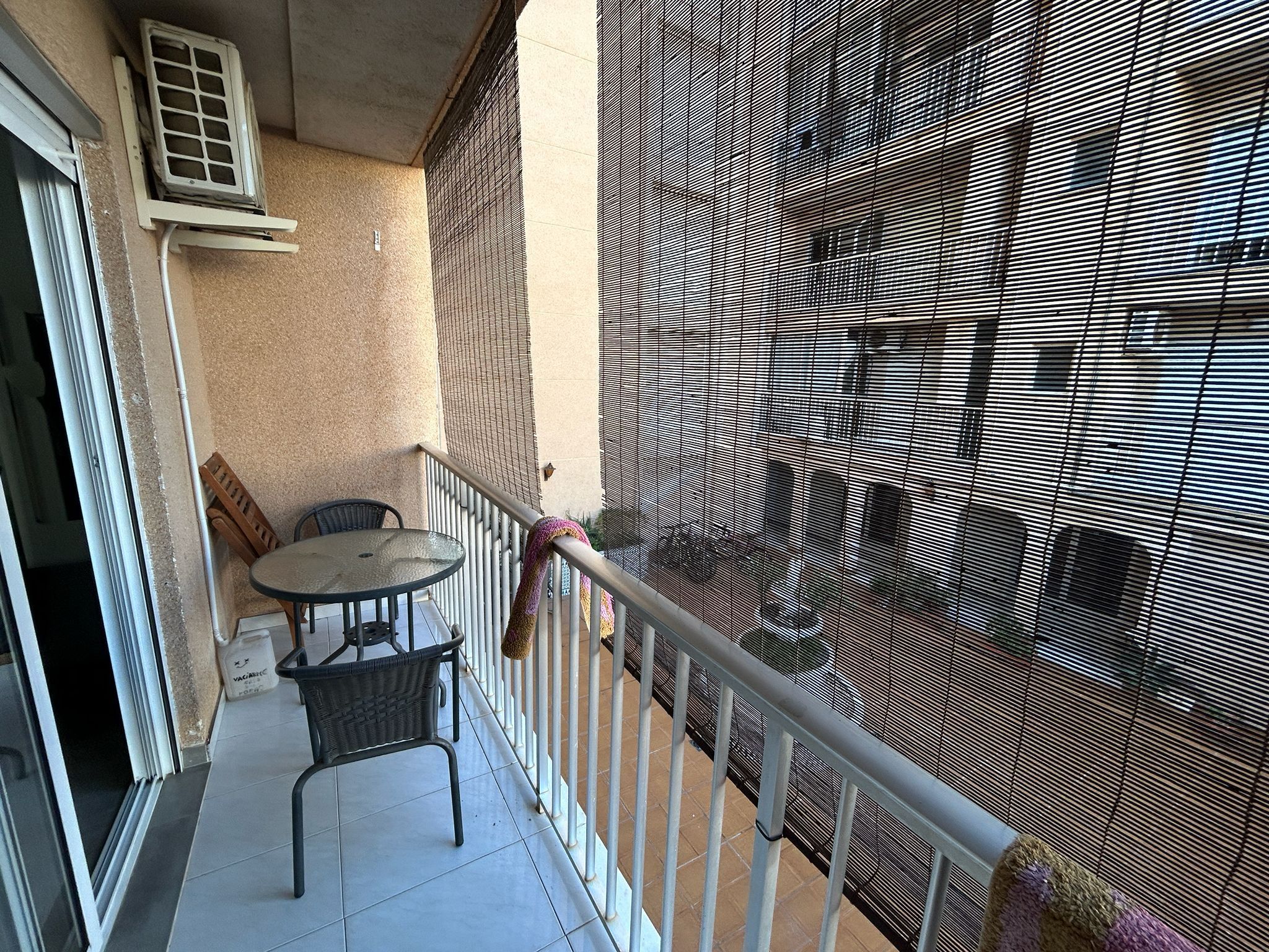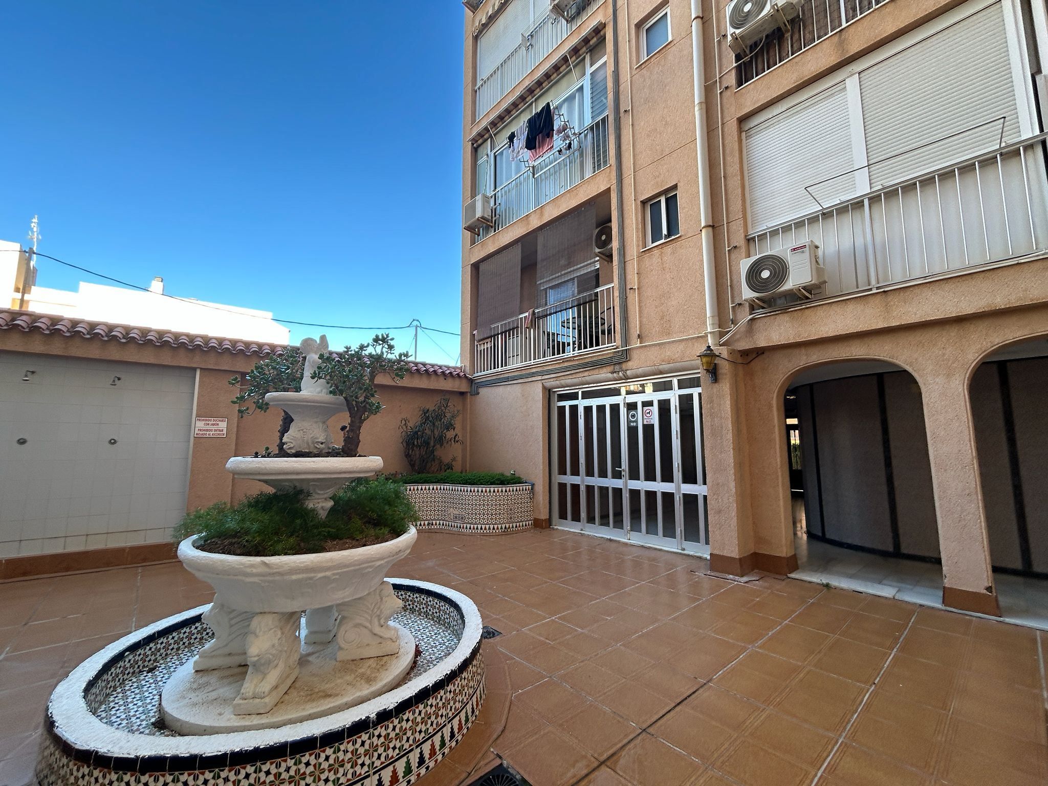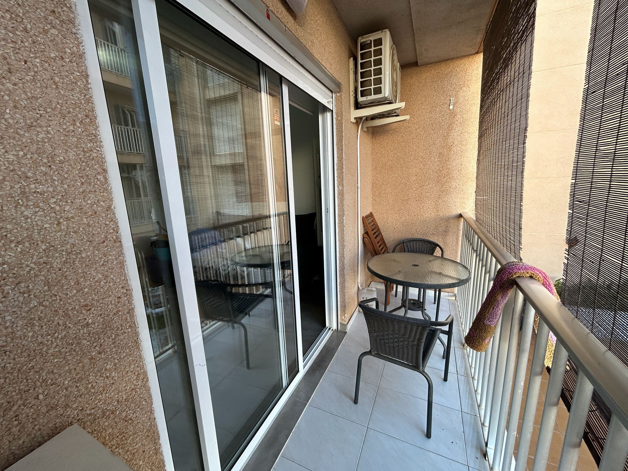 The fully tiled bathroom is elegant and practical, and the air conditioning ensures that you always have a comfortable indoor climate, regardless of the season. Access to a communal garden adds an extra sense of well-being, and the proximity to the beach makes this an ideal home for both permanent residence and holiday living.