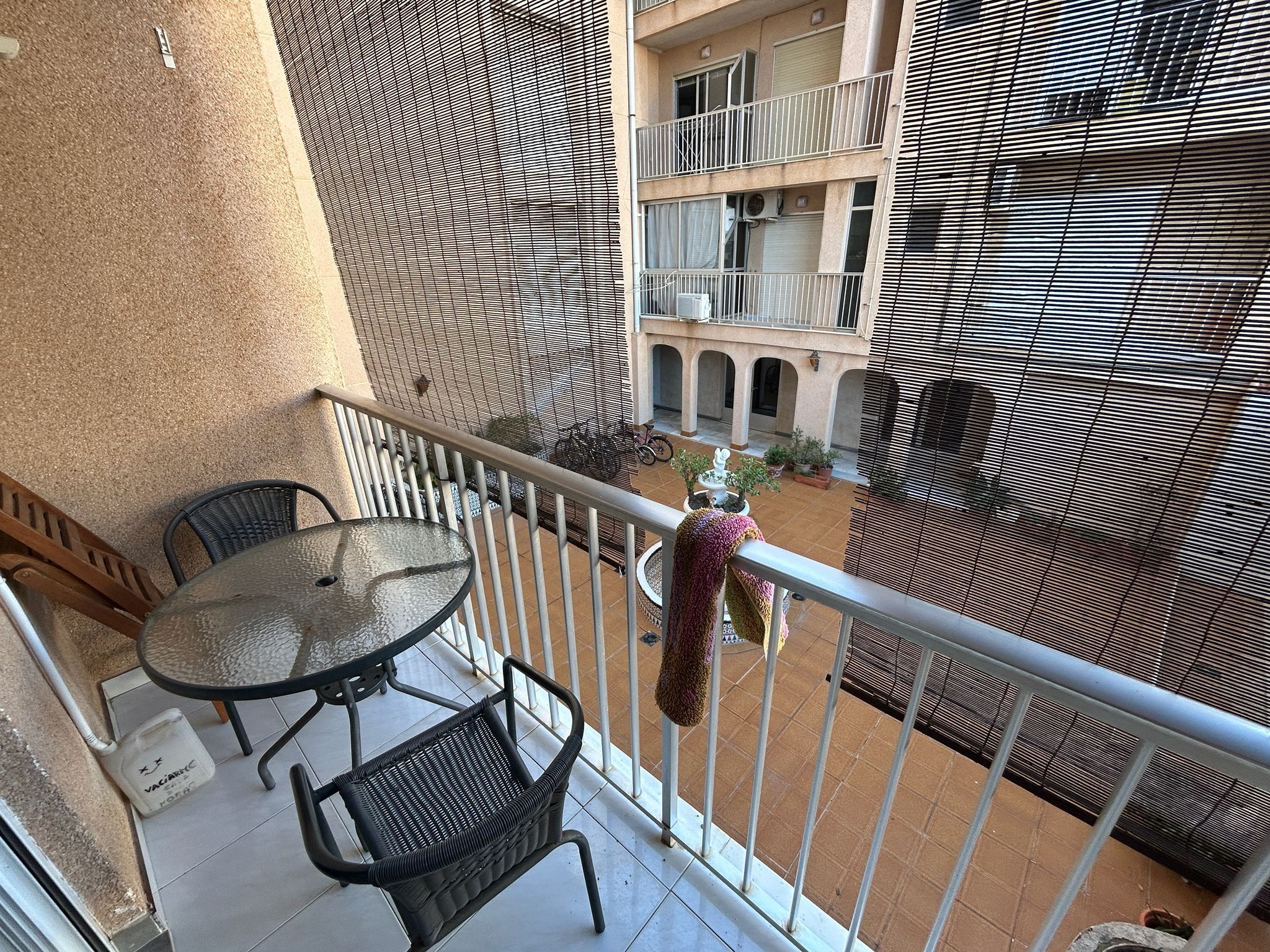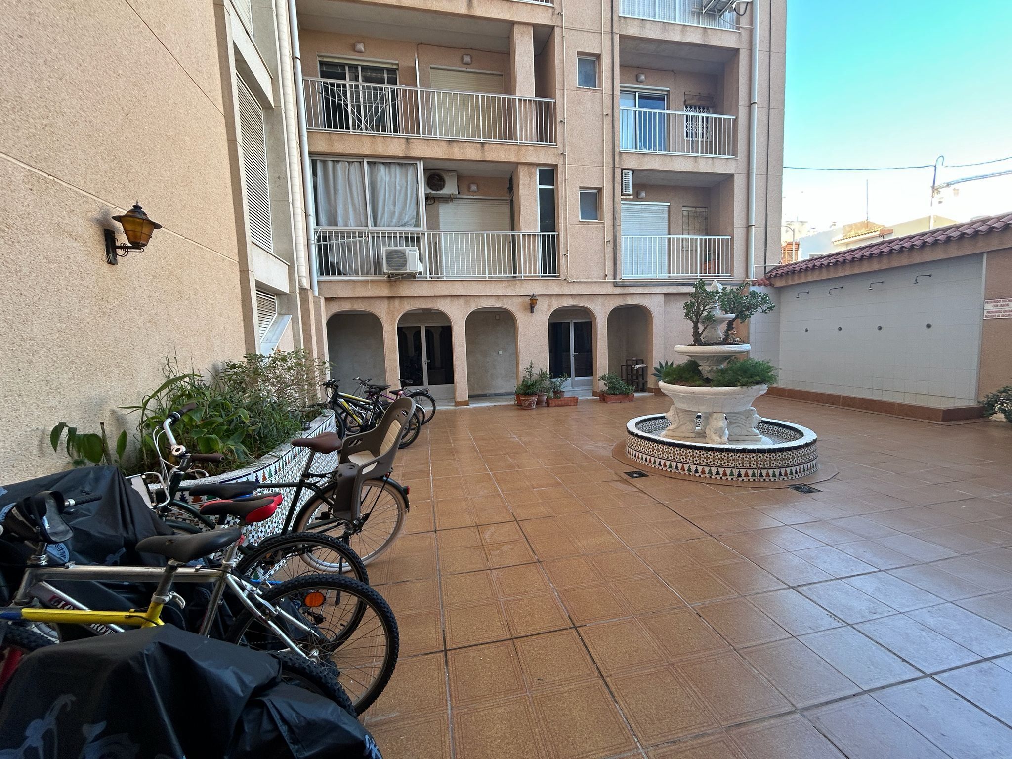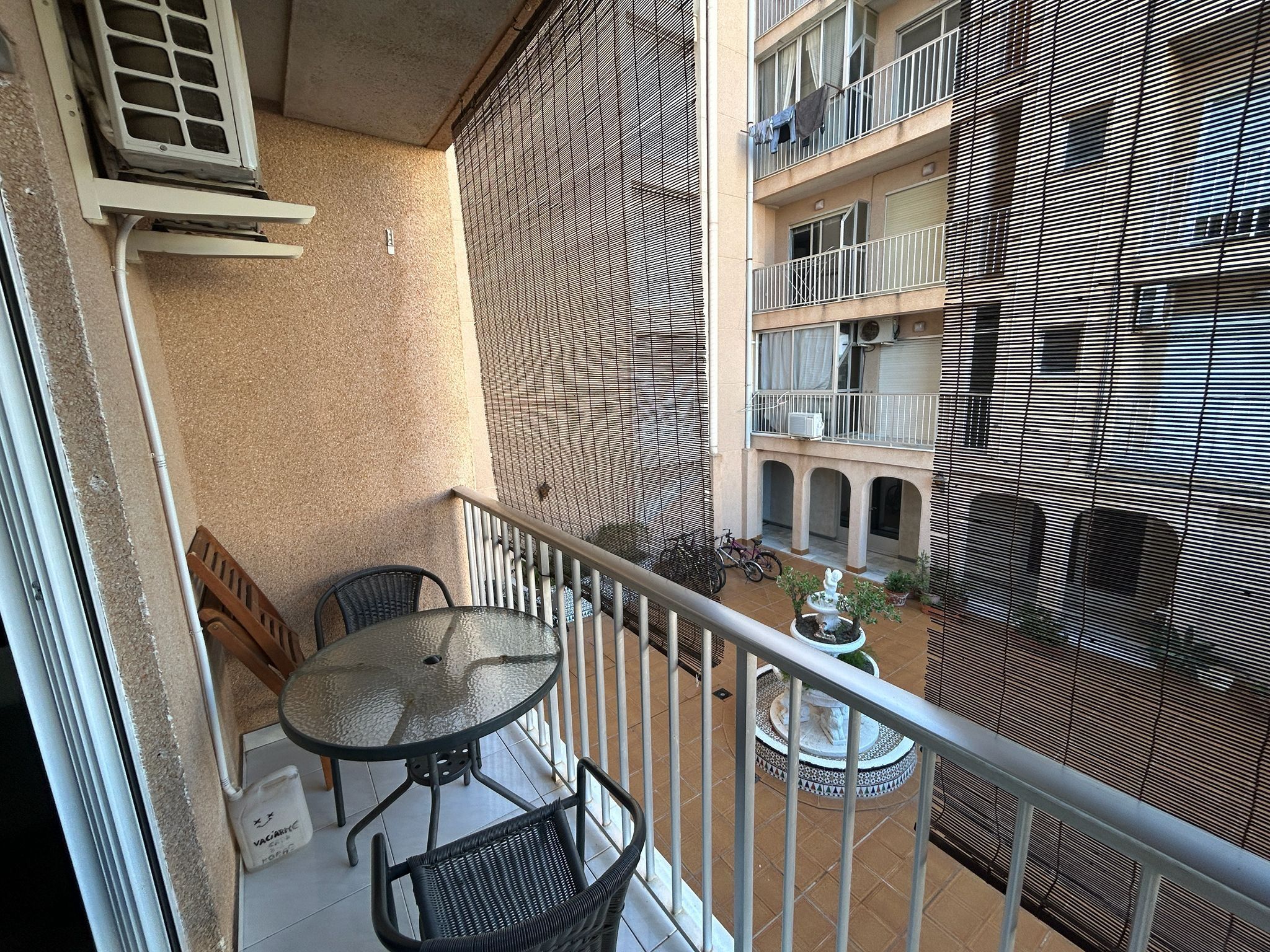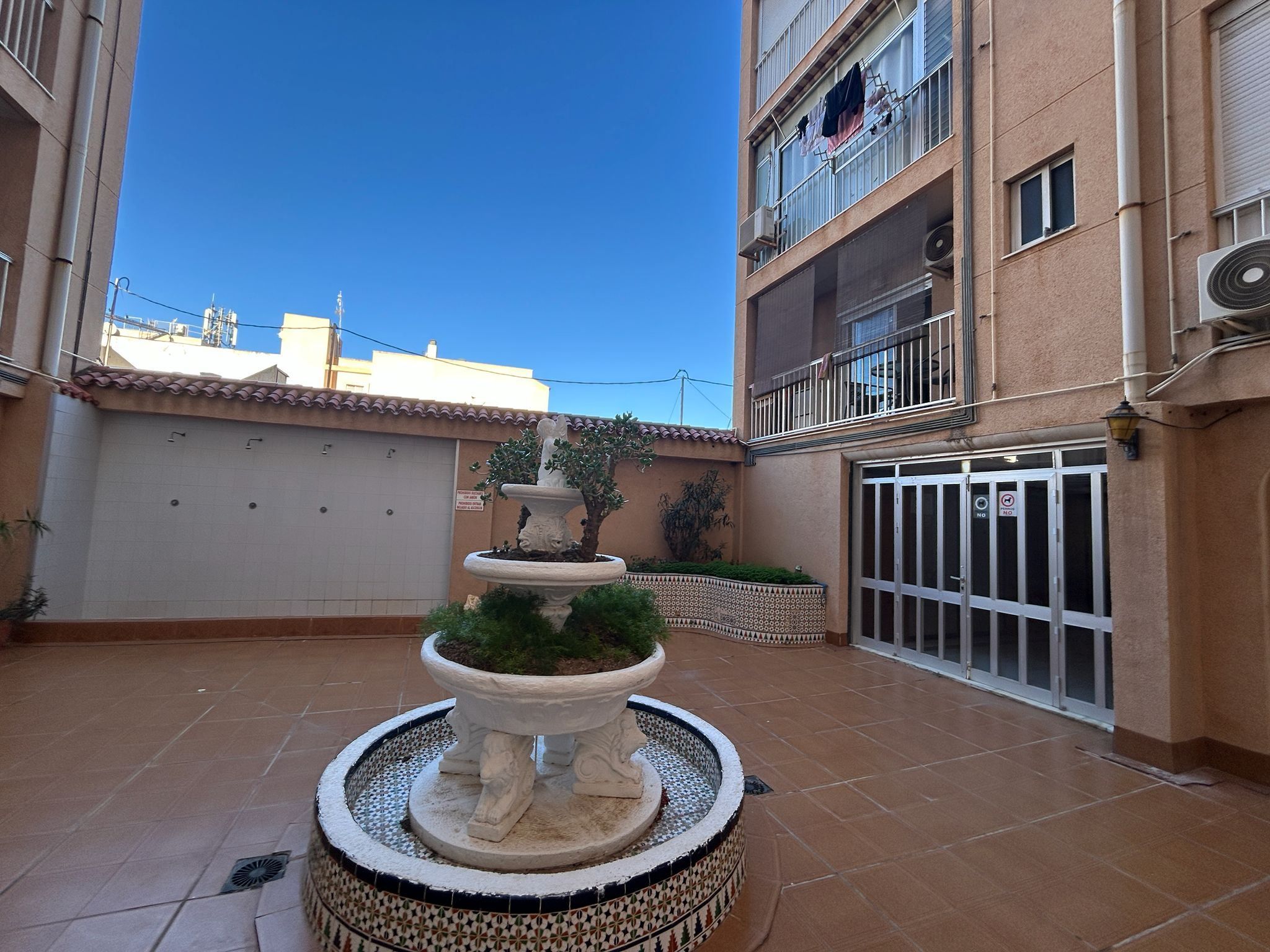 The fully tiled bathroom is elegant and practical, and the air conditioning ensures that you always have a comfortable indoor climate, regardless of the season. Access to a communal garden adds an extra sense of well-being, and the proximity to the beach makes this an ideal home for both permanent residence and holiday living.
