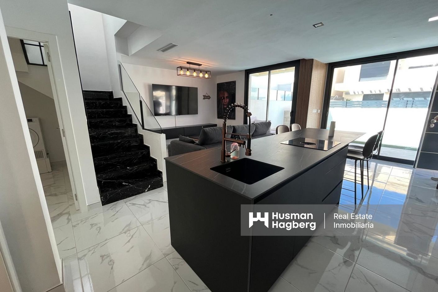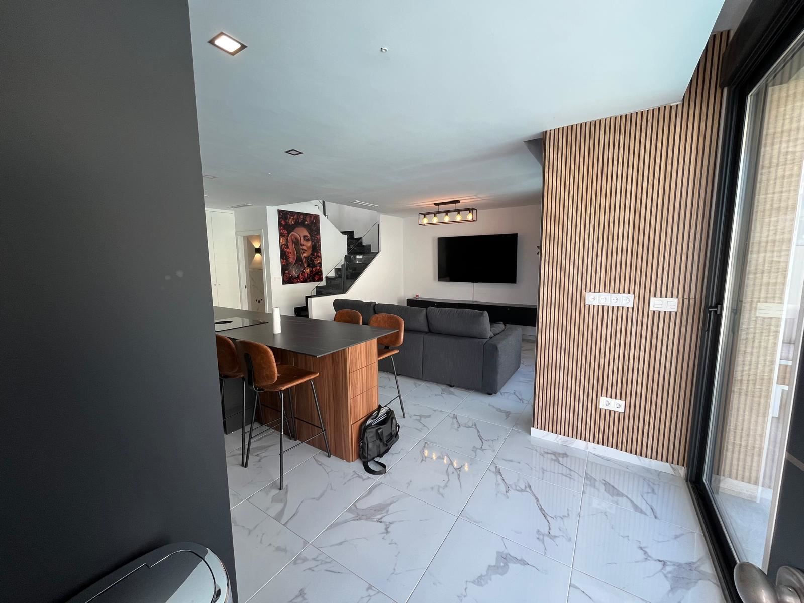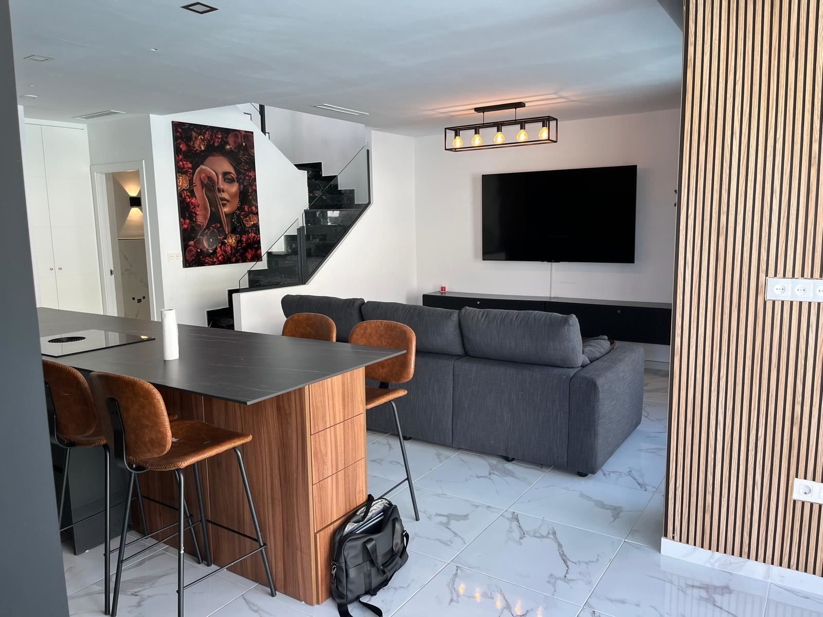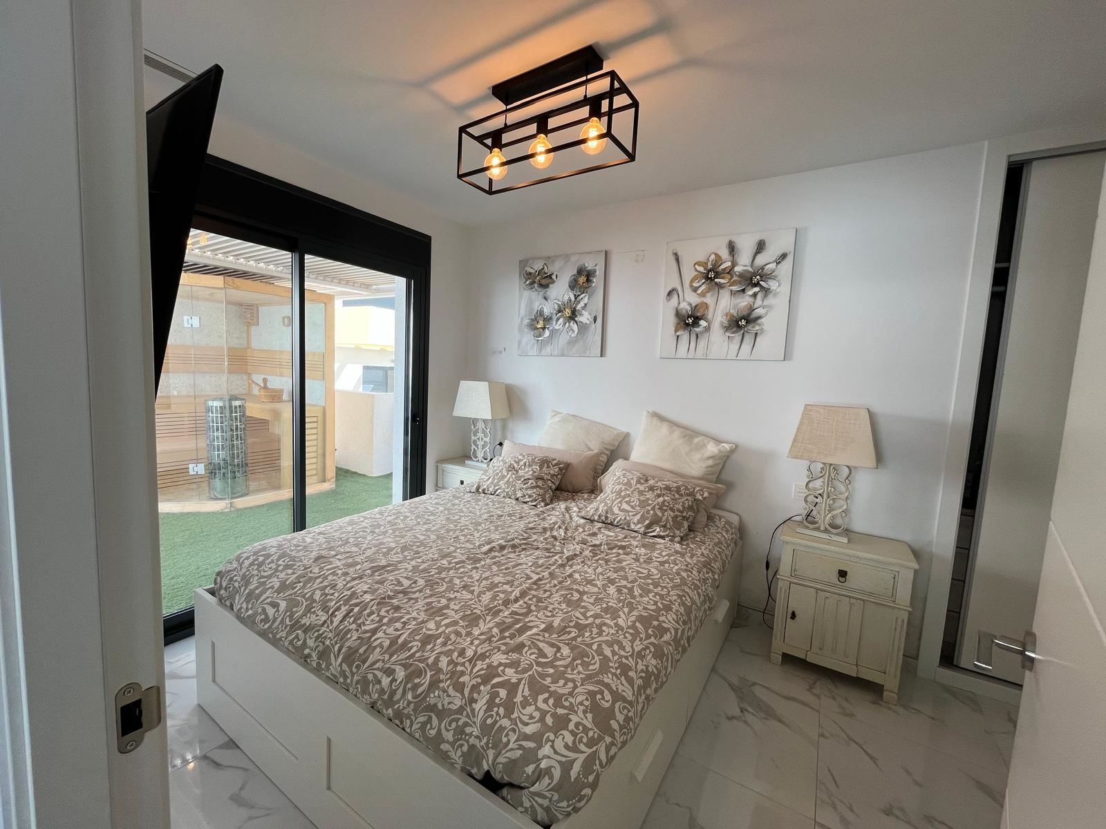 A warm welcome to Los Montesinos and this stylish villa with a well-thought-out floor plan, generous light flows and a consistently inviting feel. The villa is modern throughout and consists of three bedrooms, two bathrooms and a living room and kitchen in an open plan. On the large plot there is a private pool and space for outdoor furniture and sun loungers. One floor up is the spacious terrace with space for, among other things, a lounge group.