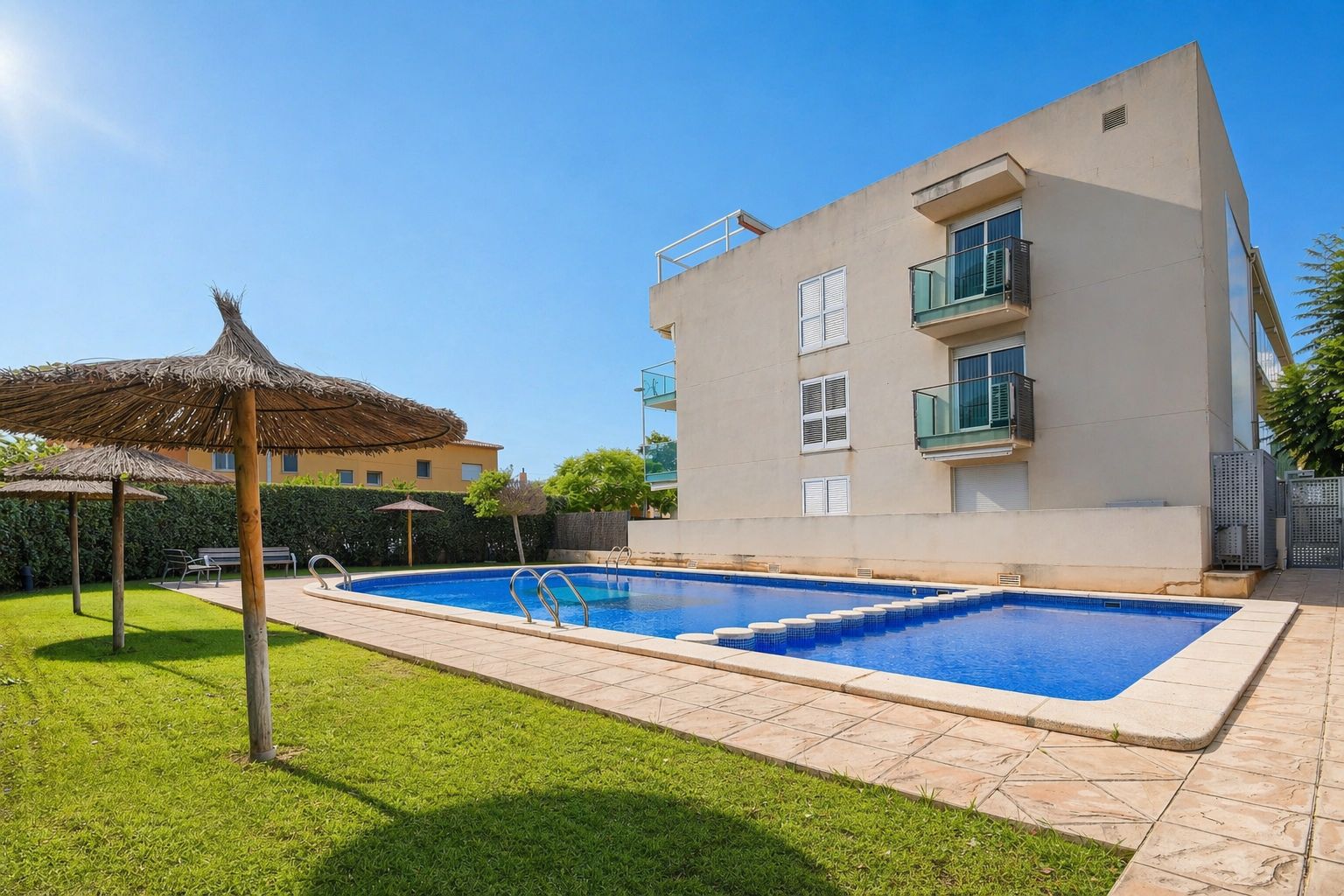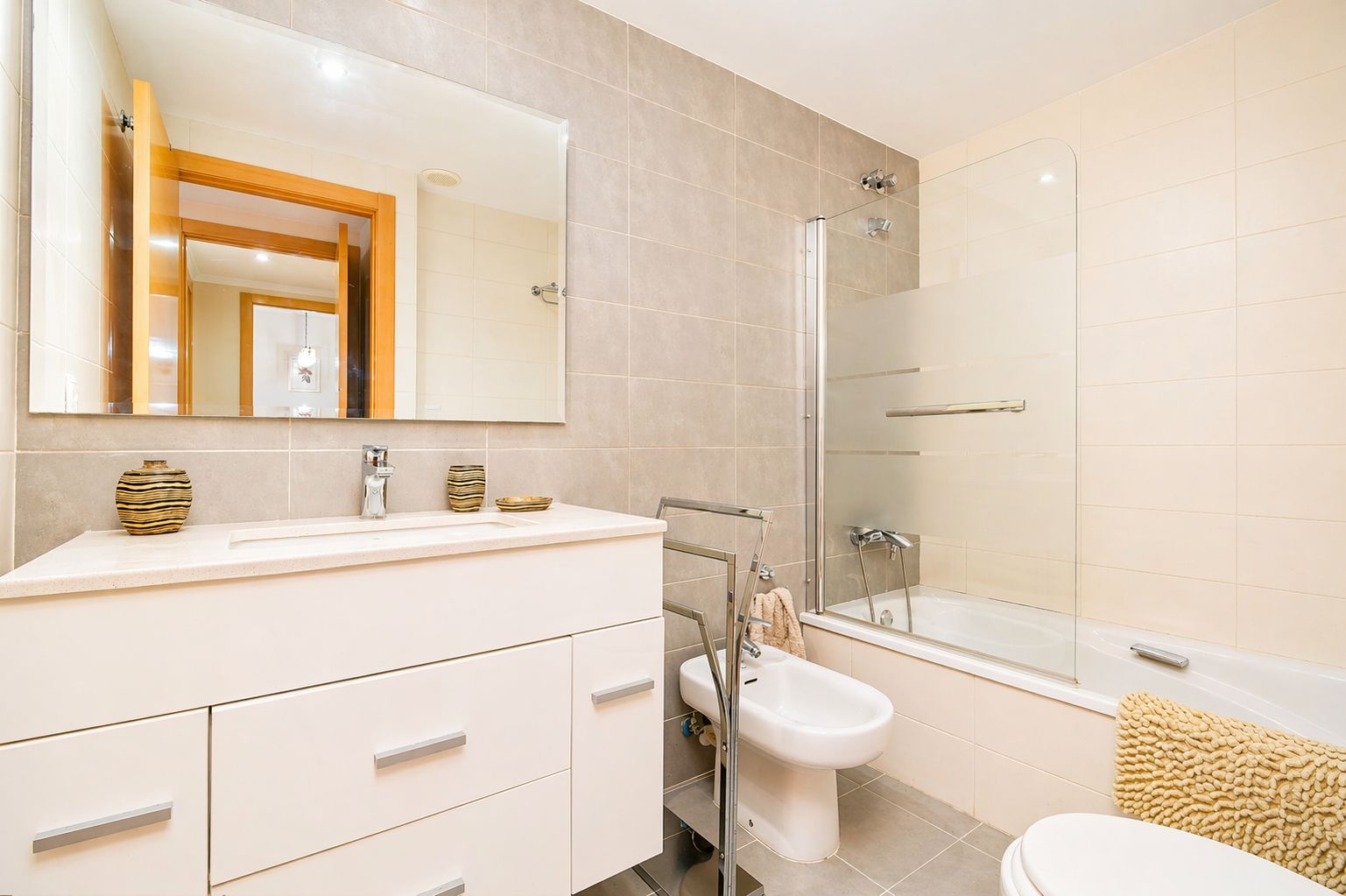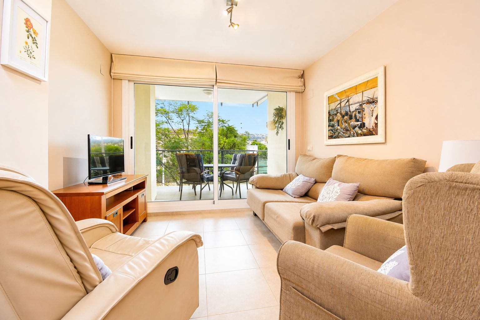 The property offers approximately 87 sqm built and features a functional and comfortable layout. It includes a bright living room with access to a covered terrace, a separate kitchen, three bedrooms and two bathrooms, one of them integrated into the master bedroom. The apartment is in good condition and provides an ideal space both for families and for those looking for a second residence on the coast.