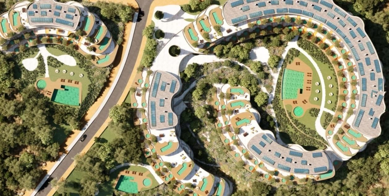 The design of the project is inspired by organic shapes, mixing steel, stone and wood in flowing volumes reminiscent of a shell, the symbol of the residential complex. Surrounded by landscaped green areas, panoramic sea views and the facilities of Higuerón Resort, this residential complex represents the perfect balance between innovation, sustainability and well-being.