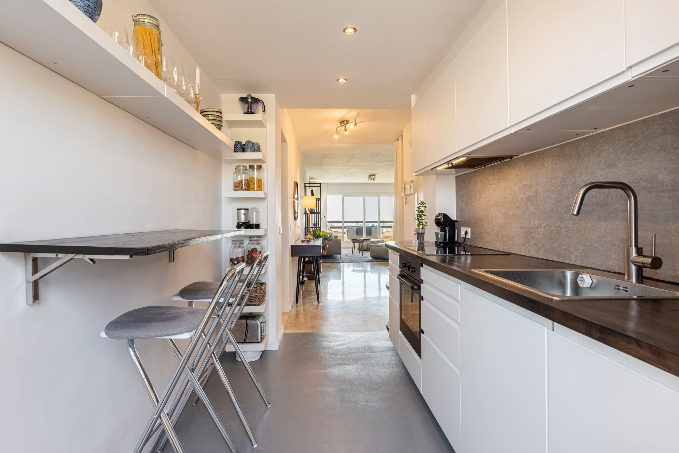 From the living room you reach a terrace where you can enjoy beautiful views of the Mediterranean Sea, a perfect place for your morning coffee or relaxing evenings.