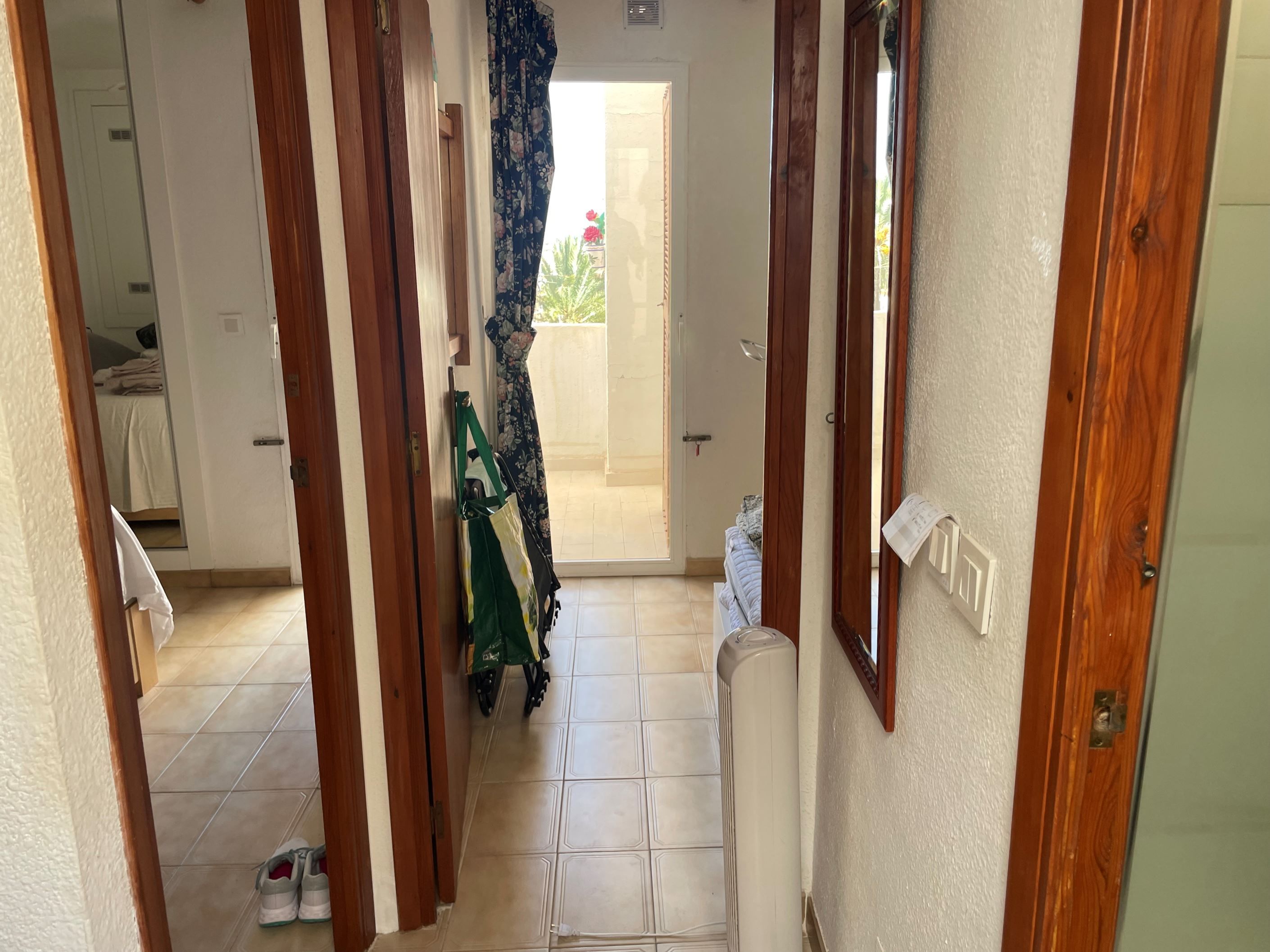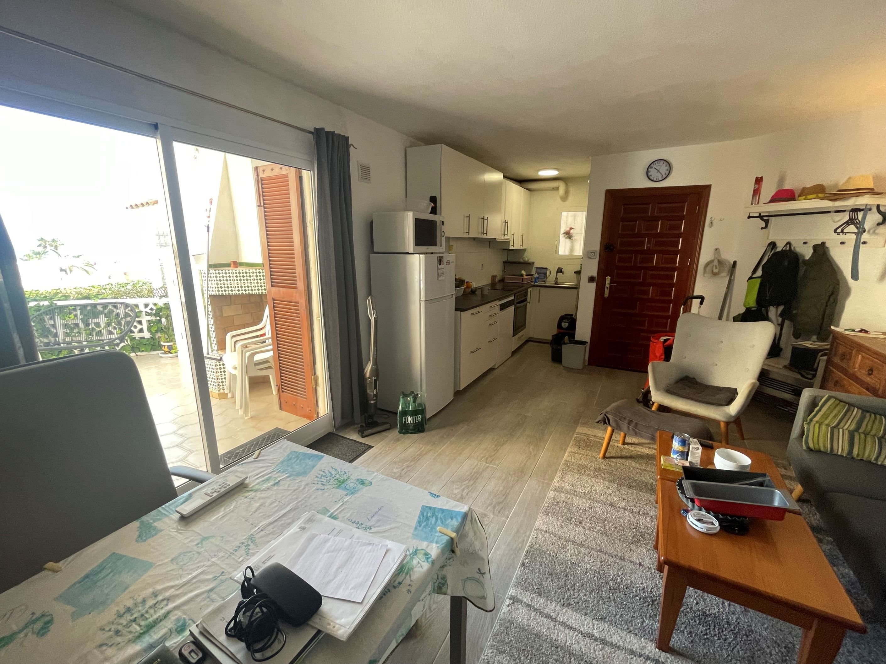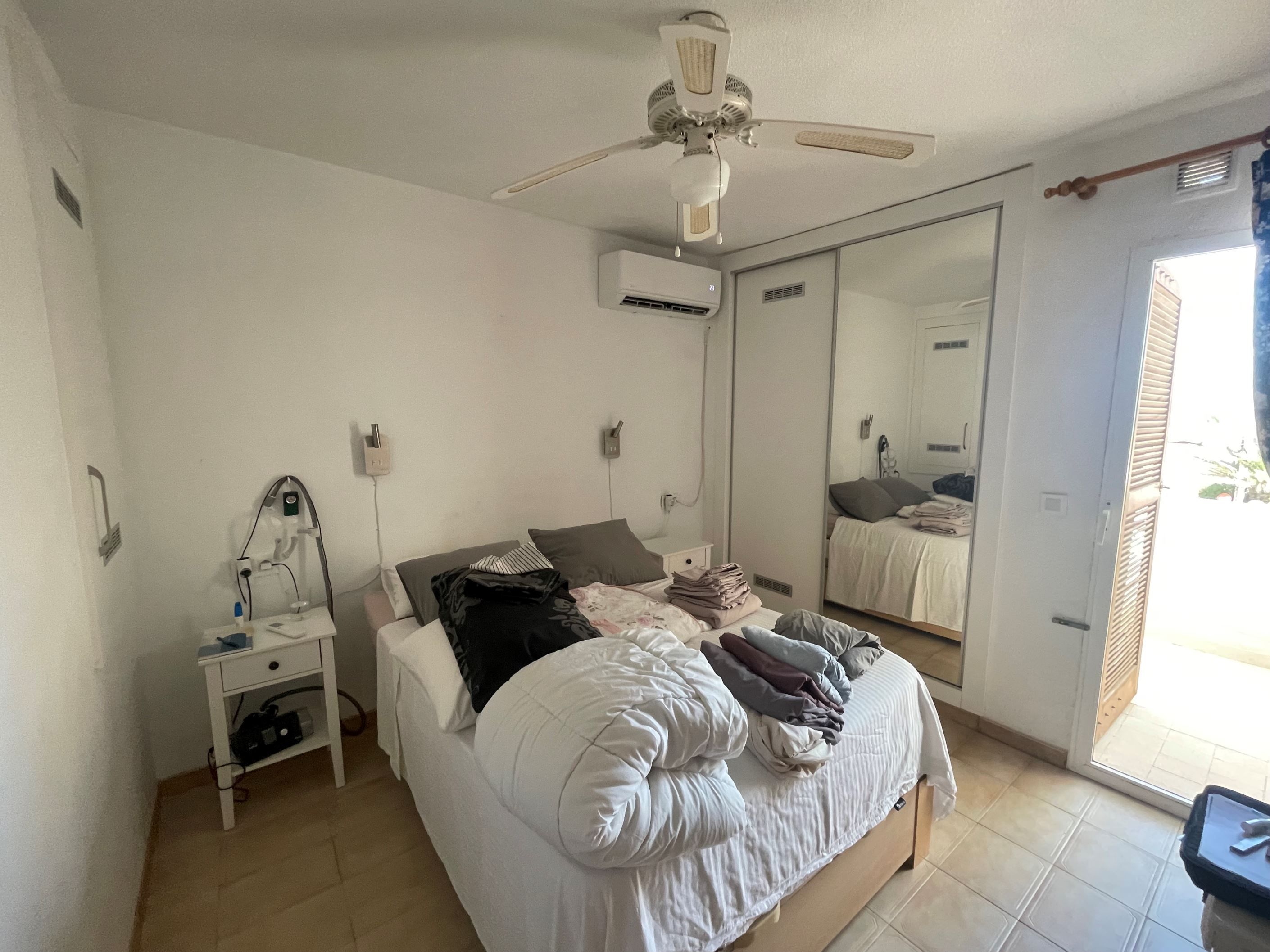 La propiedad ofrece dos dormitorios, un baño, un luminoso salón y una cocina americana. Dispone de varios espacios exteriores encantadores: una terraza a dos niveles, un balcón soleado y una azotea privada con acceso por una escalera compartida. Desde cada nivel se puede disfrutar de la vista del mar Mediterráneo, donde el cielo y el mar se funden en armoniosos tonos azules.
