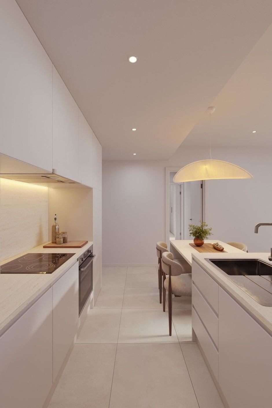 El proyecto consta de un elegante edificio de 7 plantas con 126 apartamentos de 1, 2 y 3 dormitorios. Todas las viviendas están diseñadas con salón, comedor y cocina de planta abierta para maximizar el espacio y la luz natural. Las amplias terrazas orientadas al sur amplían la zona de estar al aire libre, creando el entorno perfecto para disfrutar de las vistas panorámicas y del suave clima costero. Cada apartamento cuenta con aire acondicionado, cocina moderna totalmente equipada, dos plazas de aparcamiento privadas y trastero.