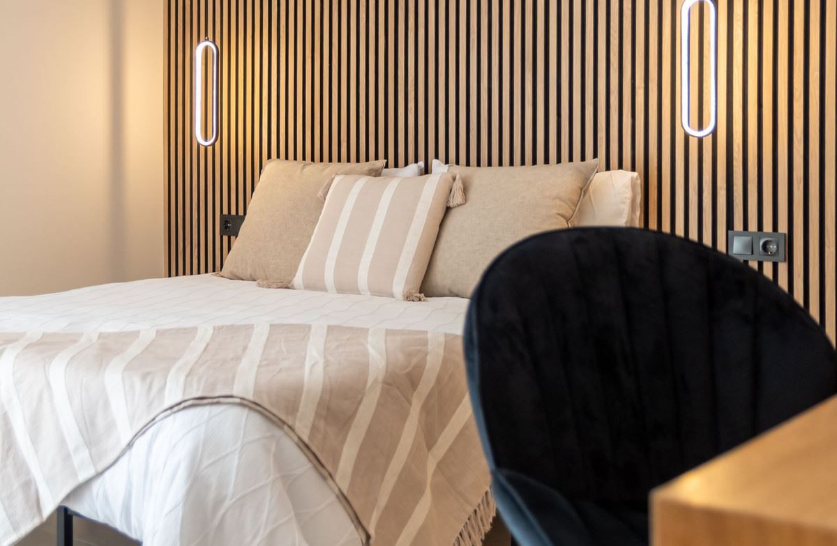 Cada uno de los cuatro dormitorios cuenta con elegantes armarios empotrados, iluminación personalizada y modernos baños en suite. Los dos dormitorios delanteros tienen balcones Julieta. La lujosa suite principal incluye baño privado en suite, ofreciendo el refugio perfecto, con su propio y espacioso balcón. El versátil ático cuenta con baño privado, terraza privada y espacio de almacenamiento exterior adicional, ideal para invitados o como un tranquilo espacio de trabajo.