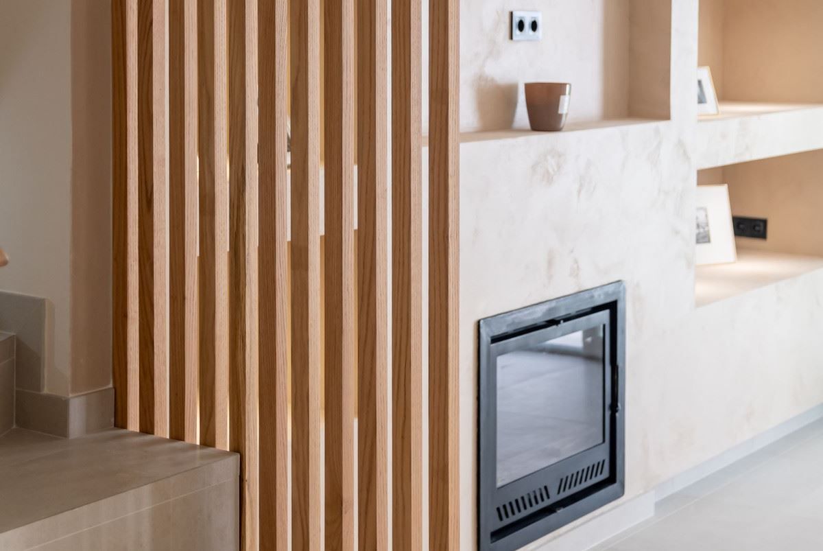 En el interior, la propiedad cuenta con una espaciosa distribución diáfana que combina la sala de estar, el comedor y una moderna cocina totalmente equipada con electrodomésticos integrados de alta gama y una vinoteca. Una acogedora chimenea enmarca el espacio, ideal tanto para el entretenimiento como para la relajación.