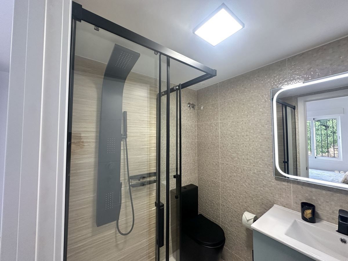 Además, hay un supermercado Lidl a solo unos minutos a pie, y la autopista A7 está a menos de 1 minuto en coche, lo que le brinda un acceso rápido y fácil a toda la Costa del Sol. A pesar de su proximidad a la carretera, el apartamento está en una zona tranquila.