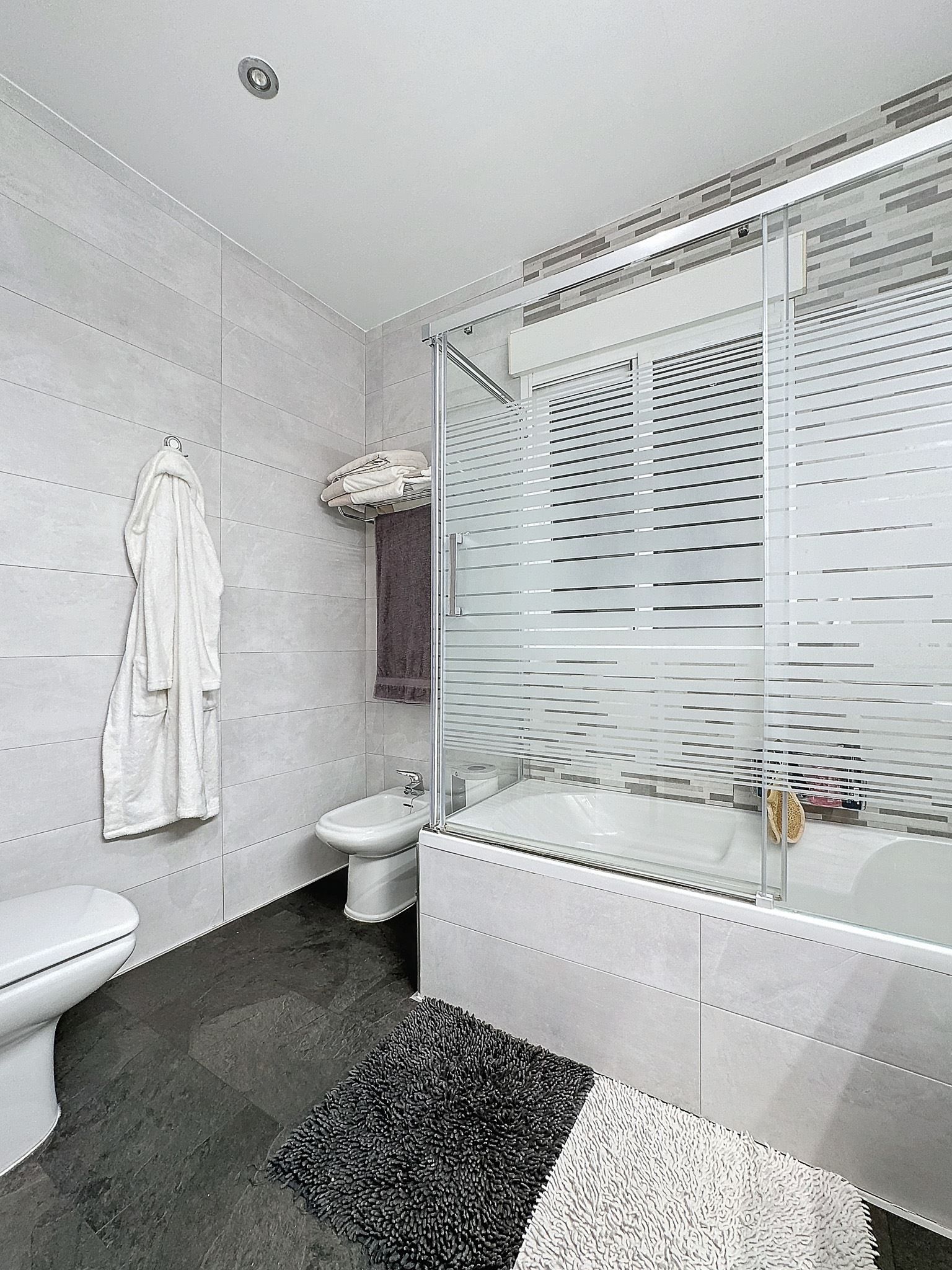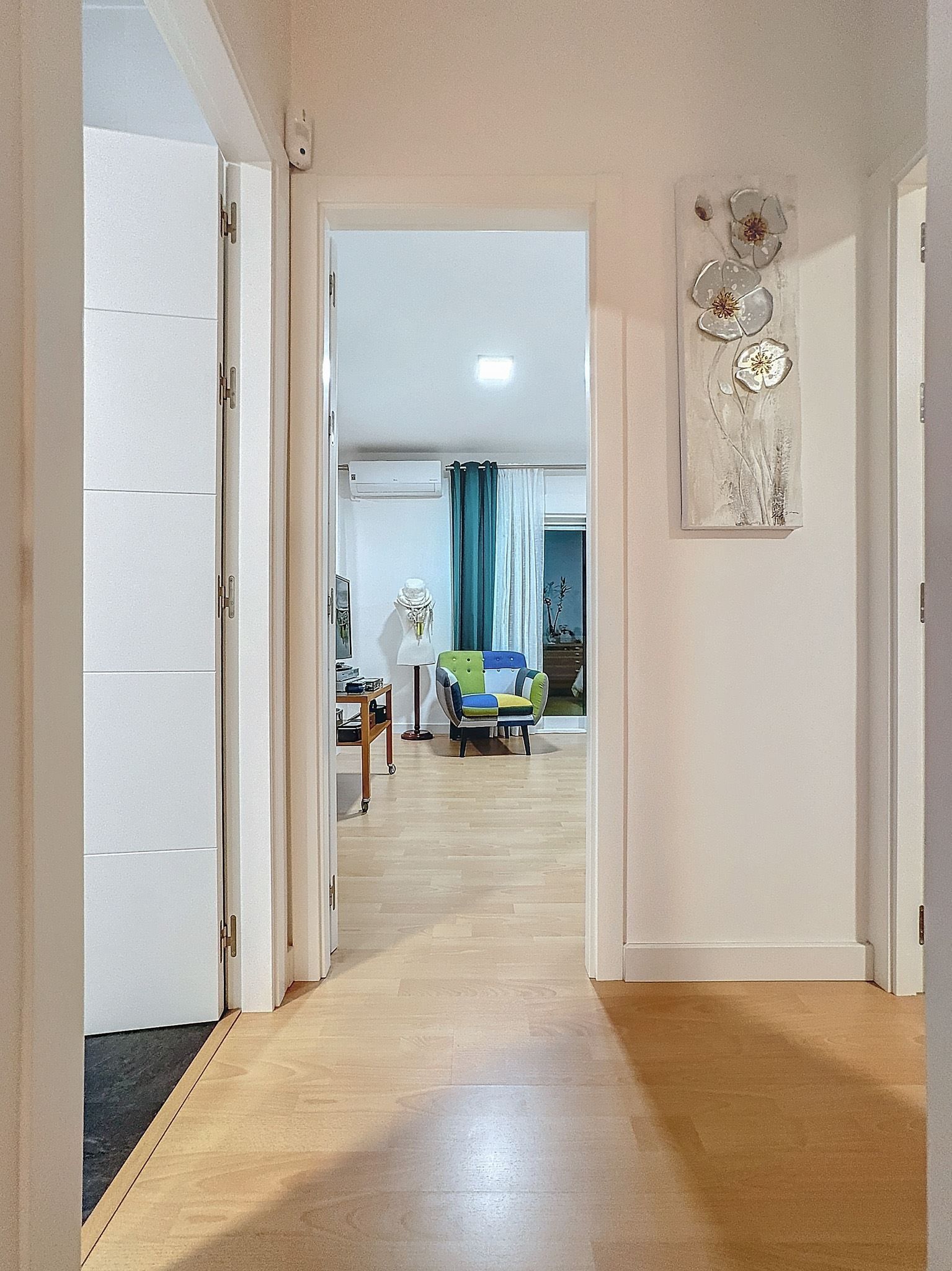Fastigheten är fördelad på två våningar. På bottenvåningen finns ett rymligt och ljust vardagsrum med matplats och öppen utsikt, ett fullt utrustat kök och två sovrum som delar ett komplett badrum. På övervåningen finns det stora sovrummet med eget badrum och tillgång till en privat terrass på 20 m², perfekt för att skapa ett avkopplande område med utsikt. På denna våning finns också ett fjärde sovrum, även det med eget badrum.