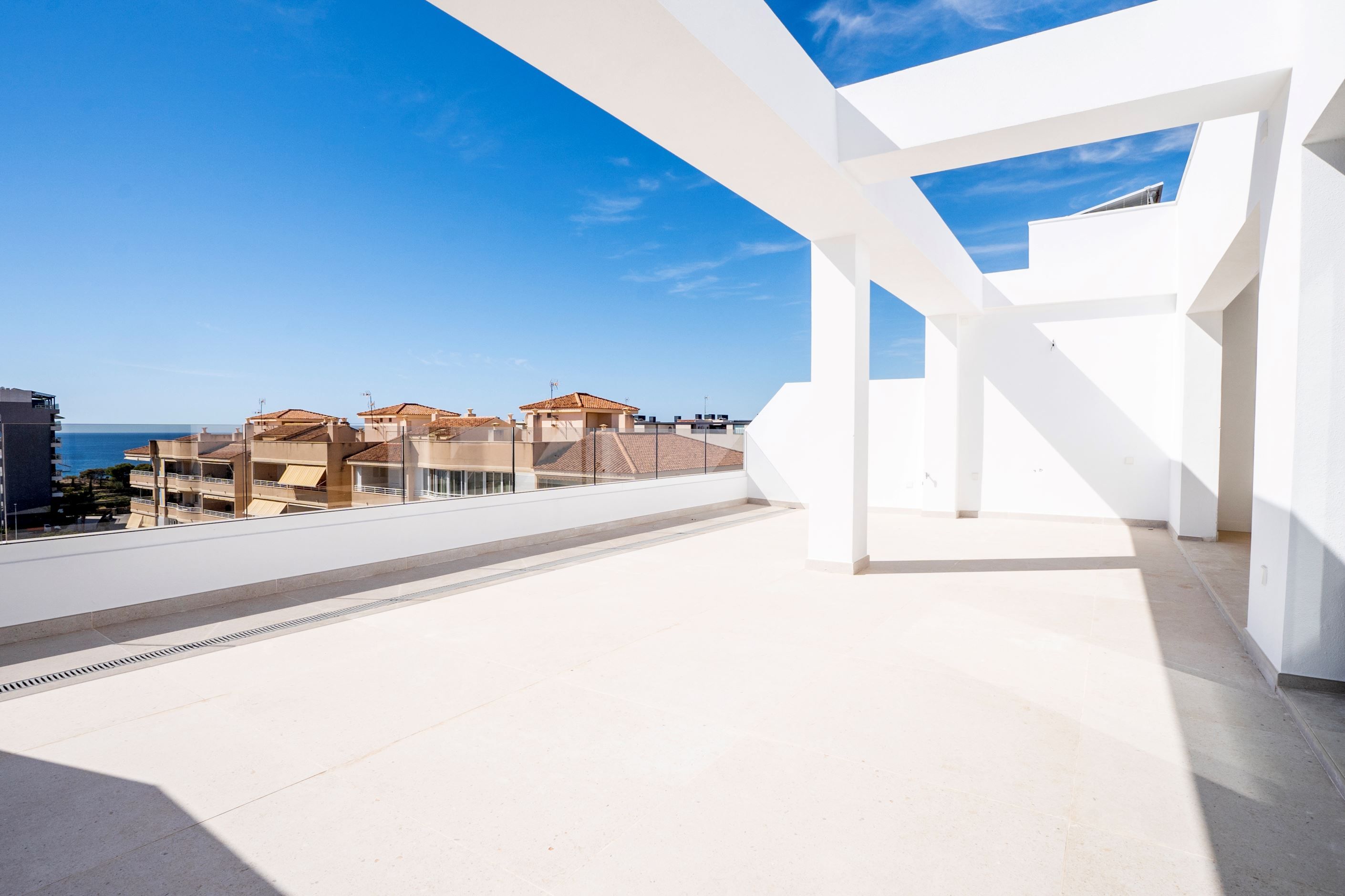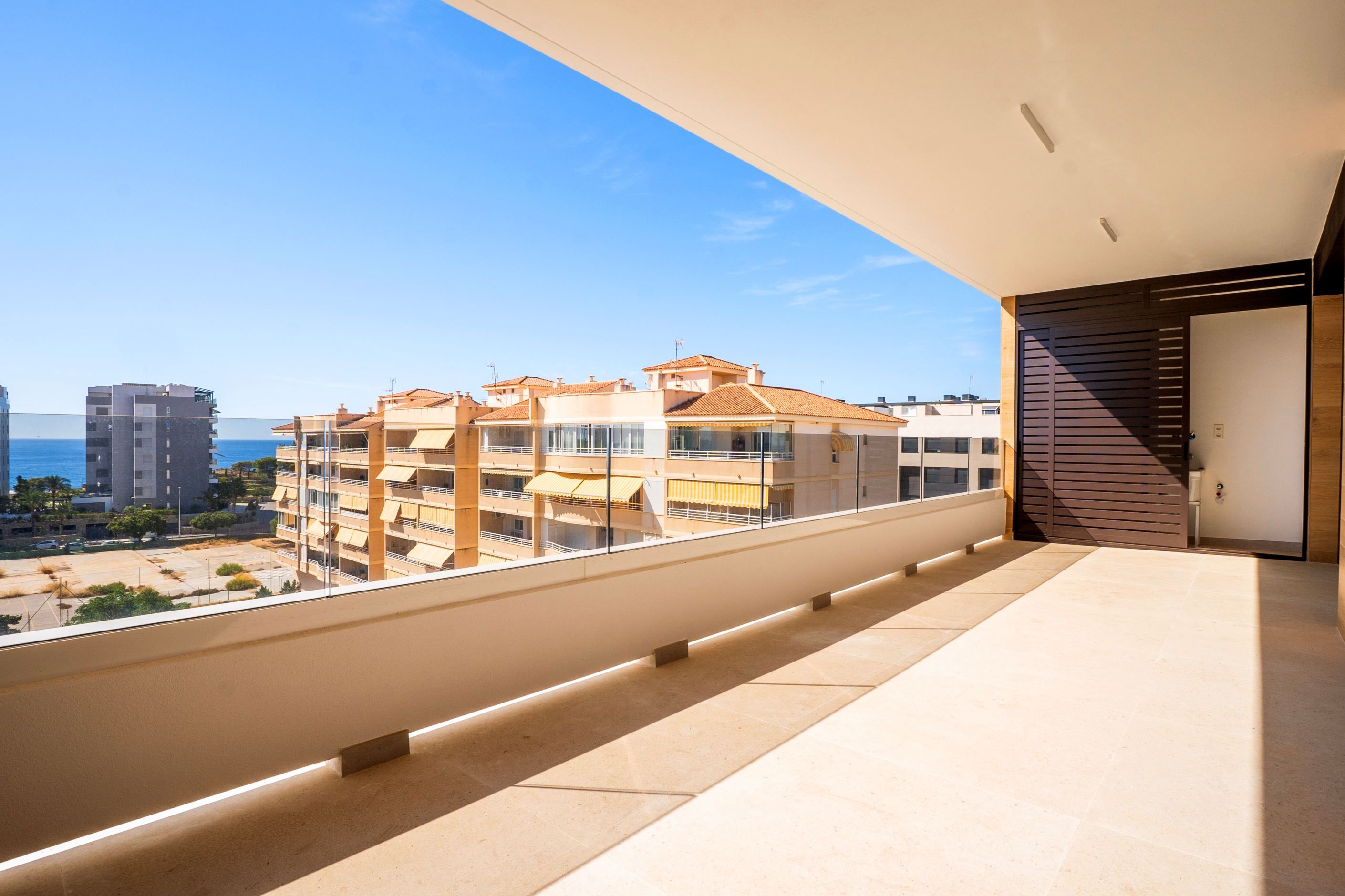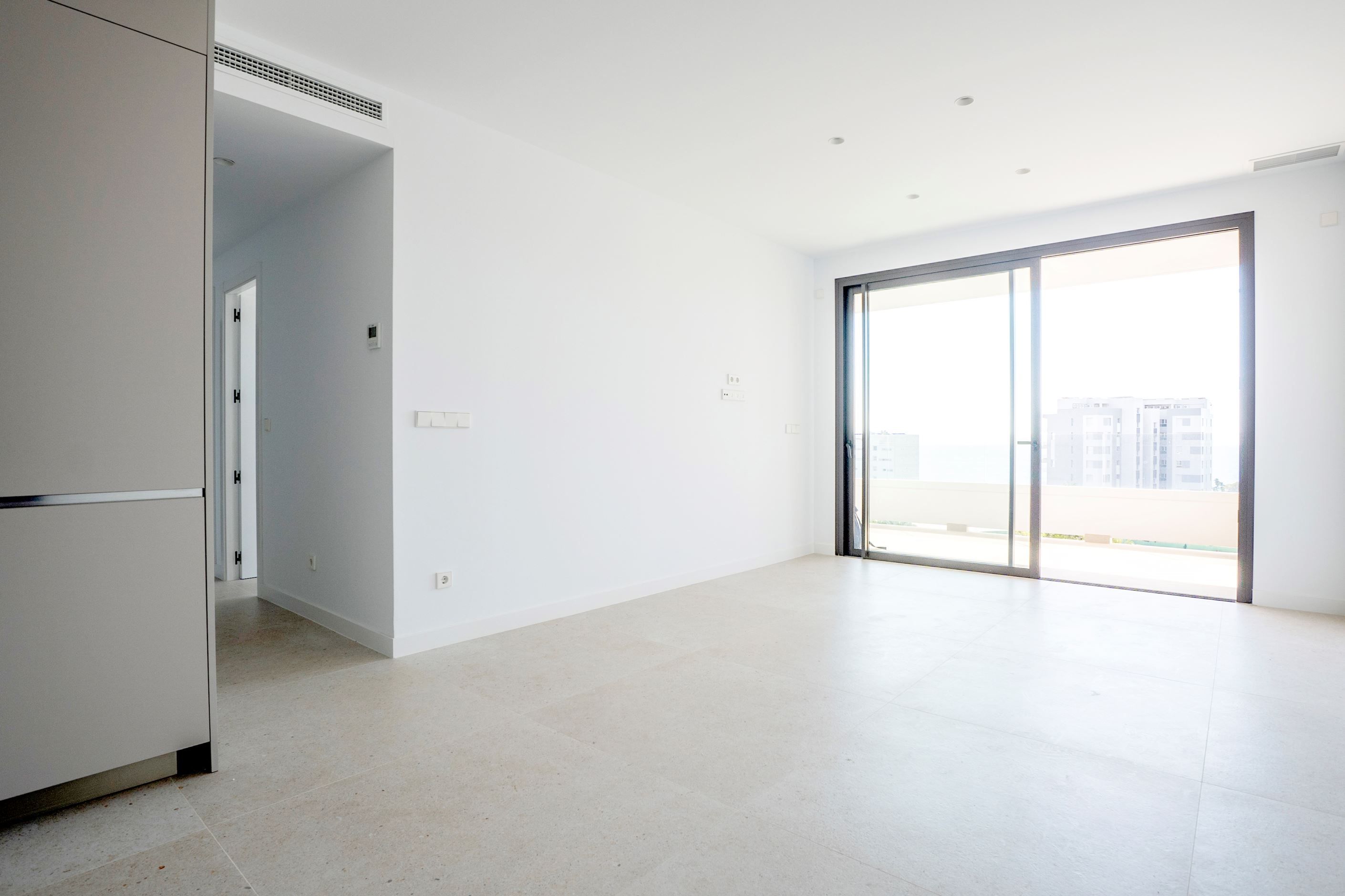Fastigheten har två sovrum och ett badrum, ett vardagsrum och ett kök i öppen planlösning som ansluter direkt till en privat terrass med fantastisk havsutsikt. Sovrummen har också tillgång till terrassen, vilket ger upplevelsen att vakna varje morgon med Medelhavet som bakgrund. På övervåningen erbjuder den privata takterrassen med hissuppgång en enorm potential, med förinstallation för utekök, möjlighet att lägga till ett extra sovrum och badrum, och till och med utrymme för att installera en jacuzzi.
