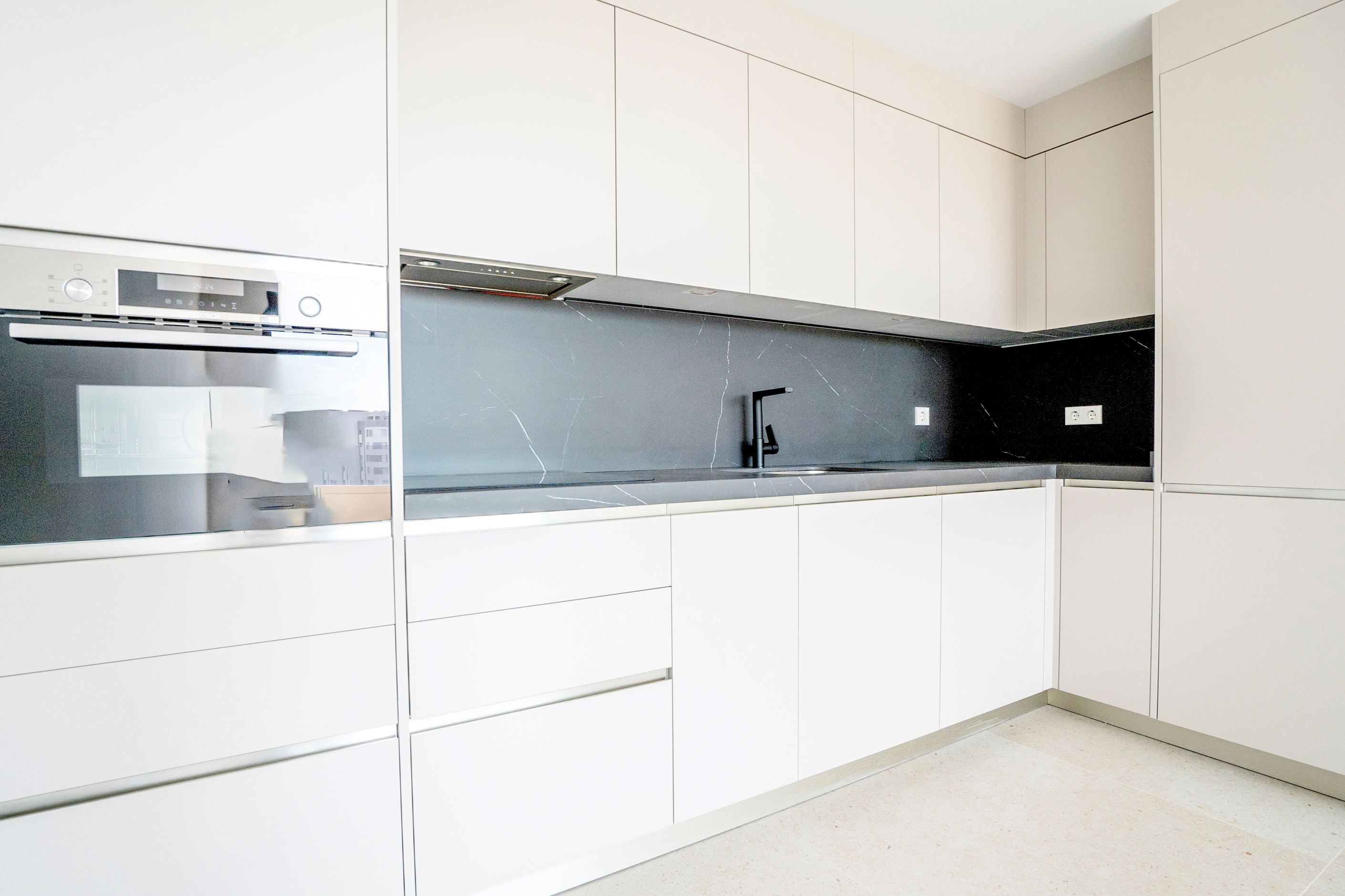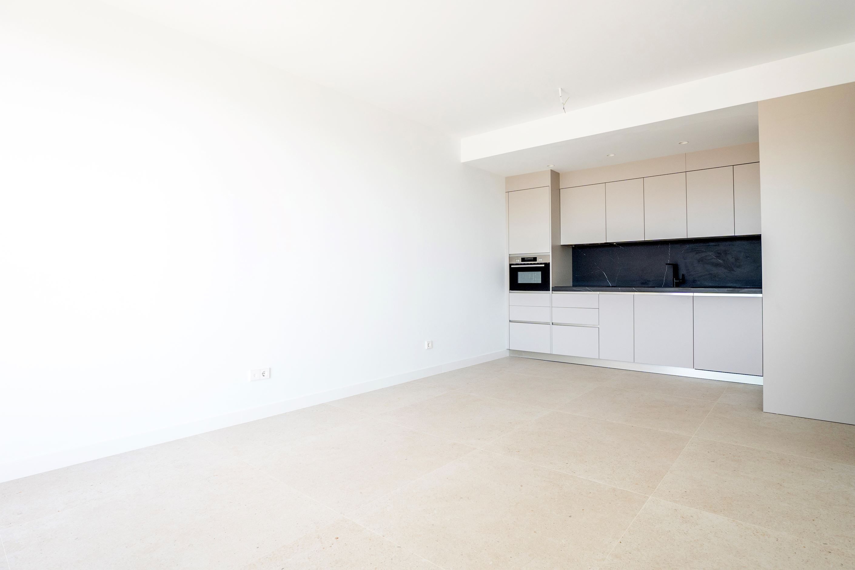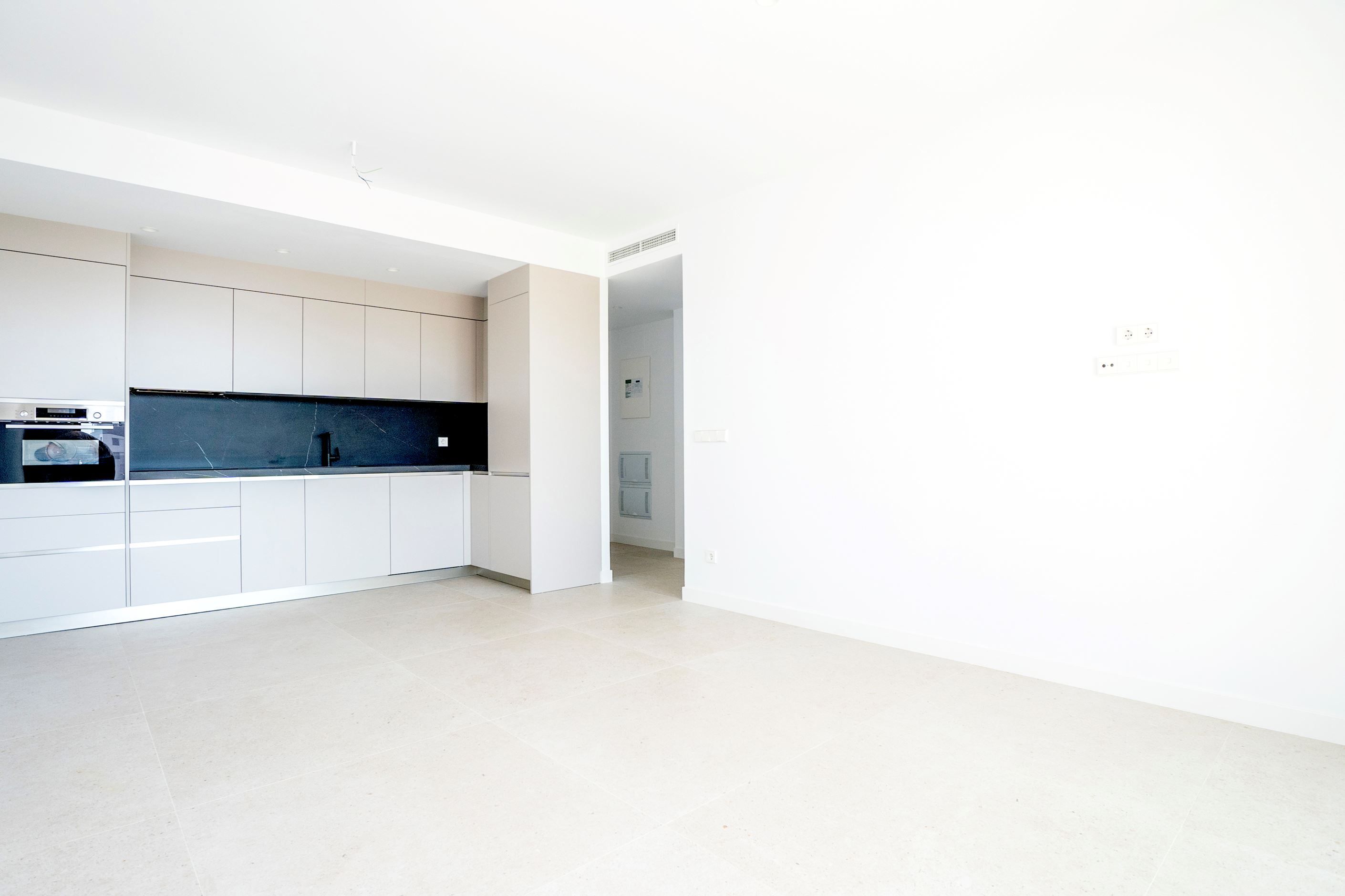 Fastigheten har två sovrum och ett badrum, ett vardagsrum och ett kök i öppen planlösning som ansluter direkt till en privat terrass med fantastisk havsutsikt. Sovrummen har också tillgång till terrassen, vilket ger upplevelsen att vakna varje morgon med Medelhavet som bakgrund. På övervåningen erbjuder den privata takterrassen med hissuppgång en enorm potential, med förinstallation för utekök, möjlighet att lägga till ett extra sovrum och badrum, och till och med utrymme för att installera en jacuzzi.
