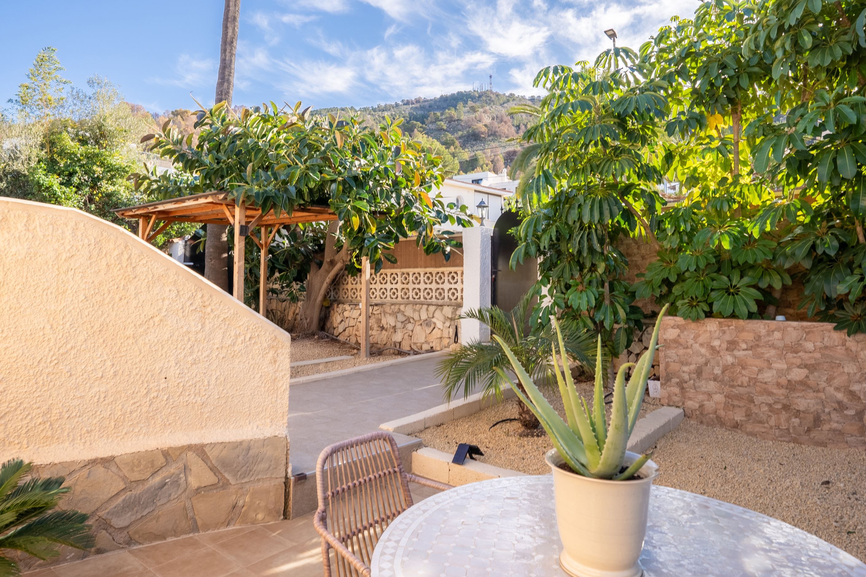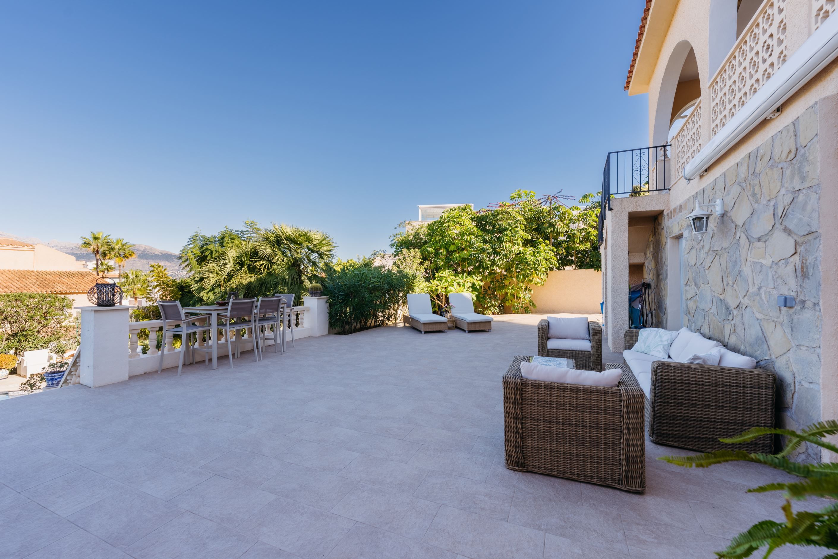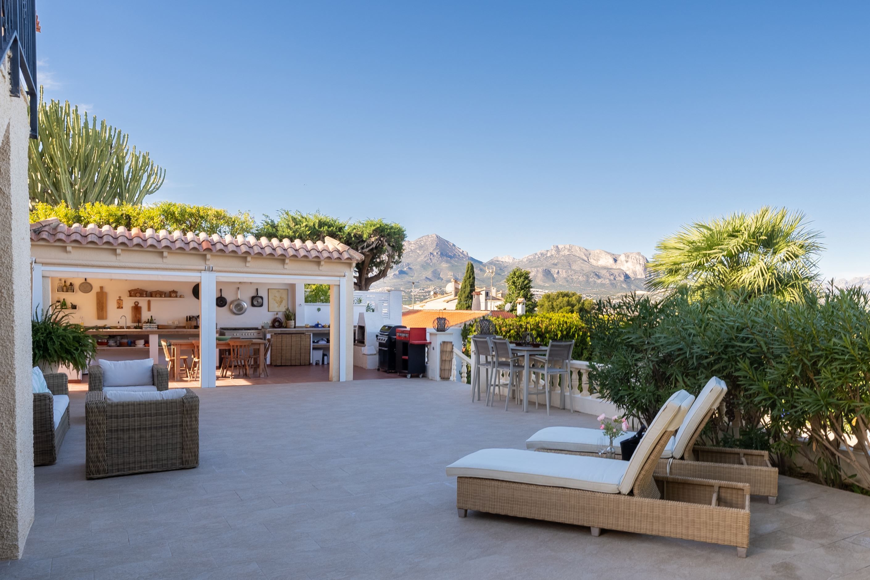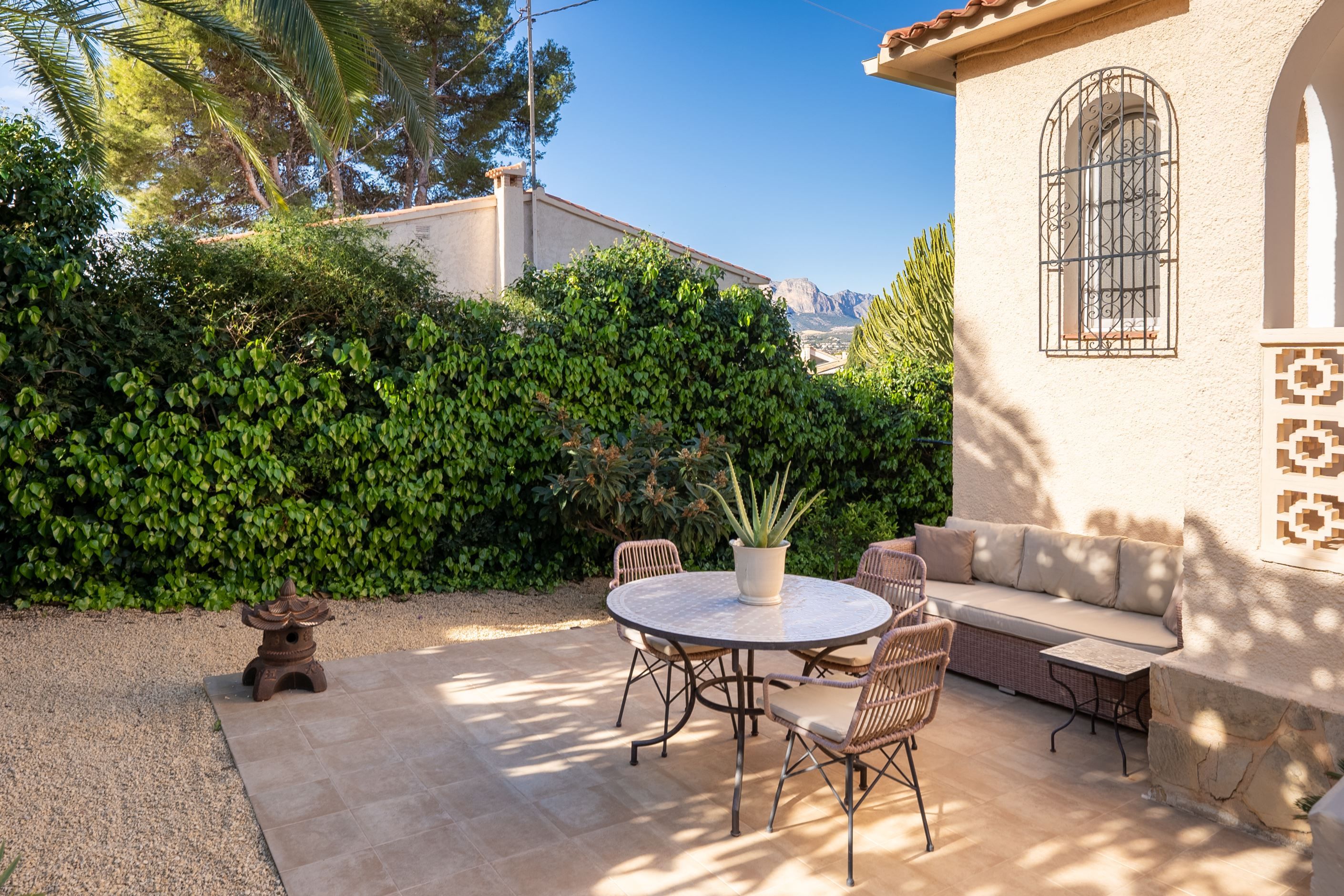 Underbar villa, belägen i det lugna och exklusiva bostadsområdet i den övre delen av Albir, omgiven av natur och med fantastisk panoramautsikt. Fastigheten ligger på en upphöjd tomt på 1 050 m² och kombinerar avskildhet och lugn, bara några minuter från alla bekvämligheter, affärer, restauranger och stranden. Det är den perfekta platsen för dem som letar efter en lugn tillflyktsort utan att ge upp komforten i vardagen.