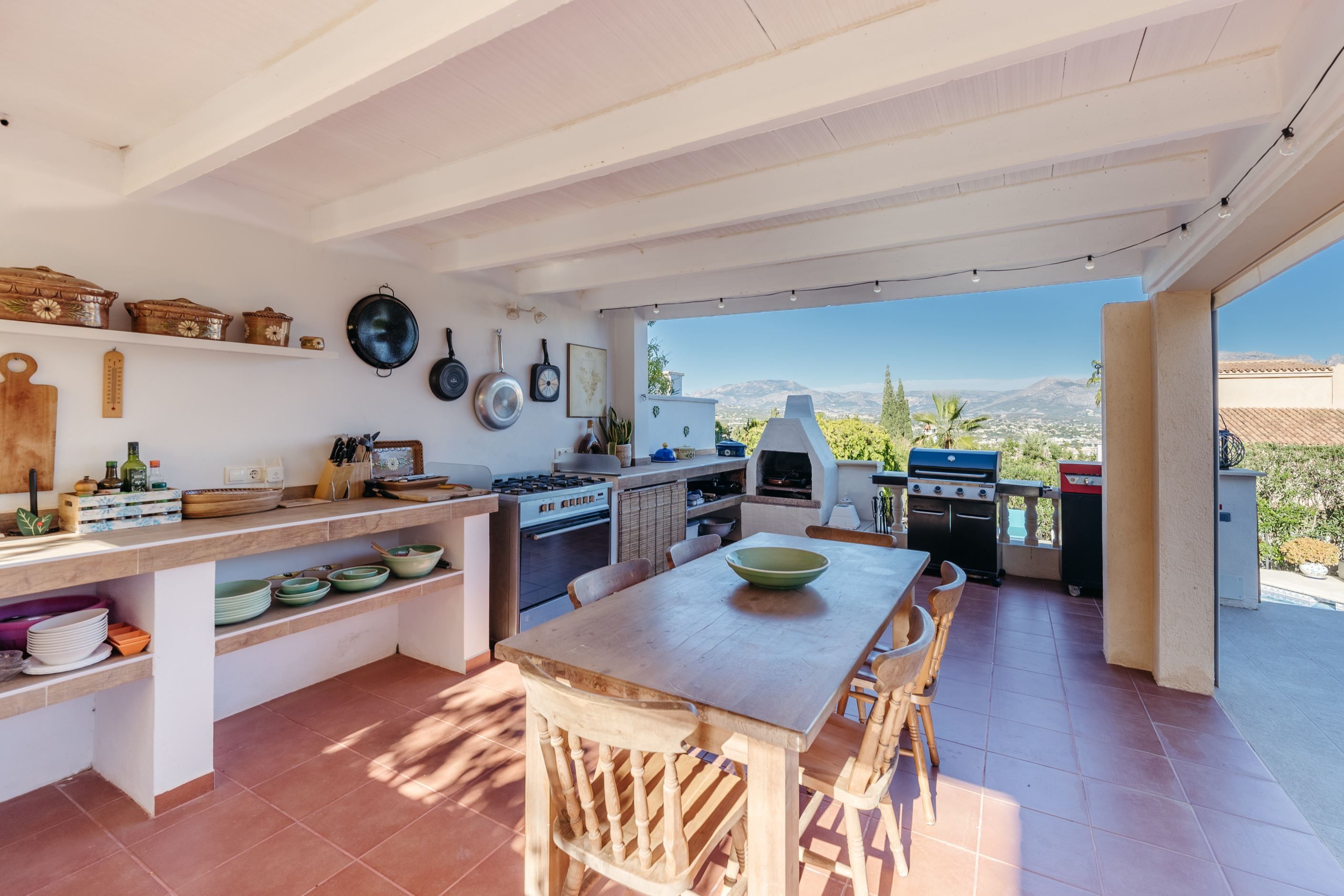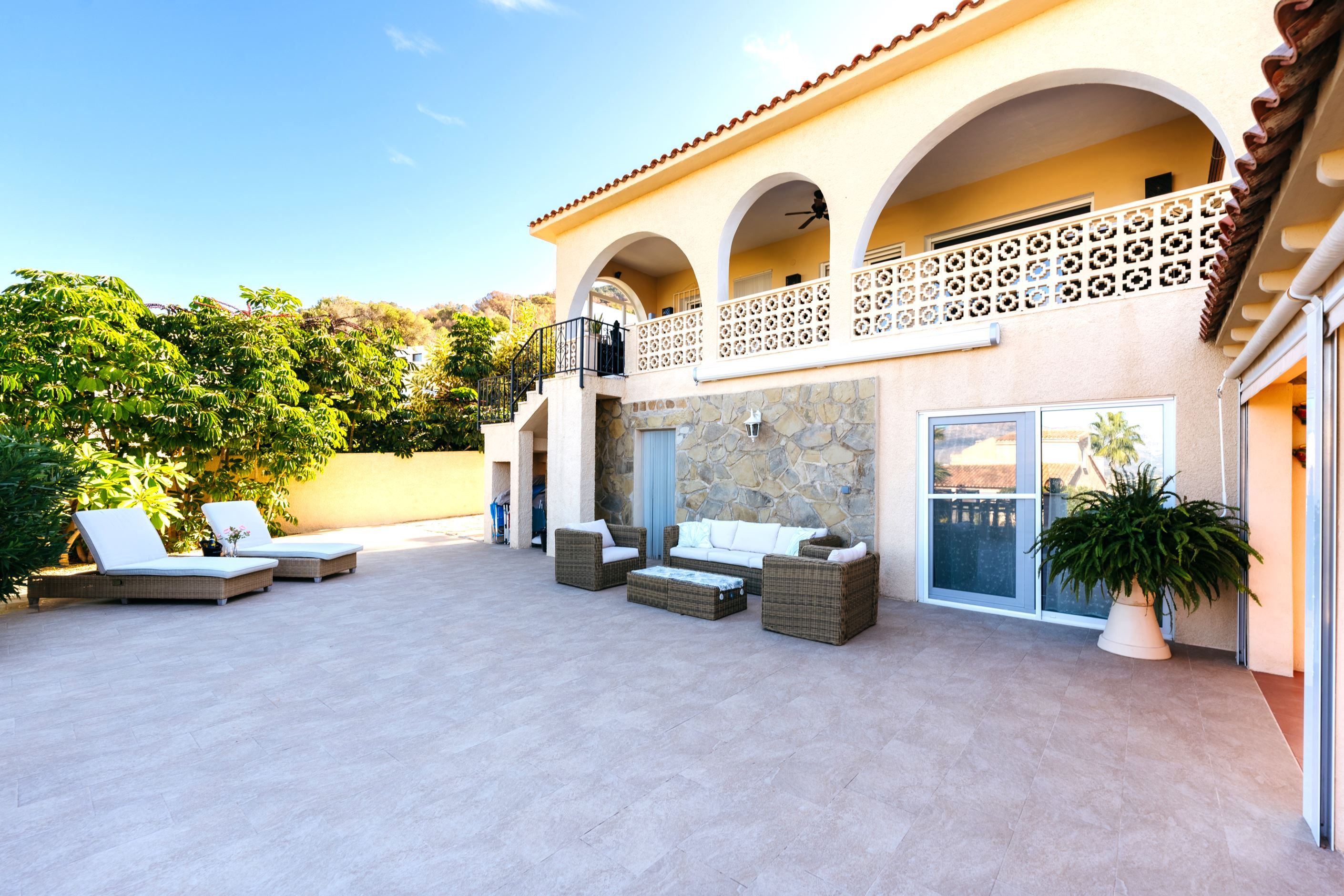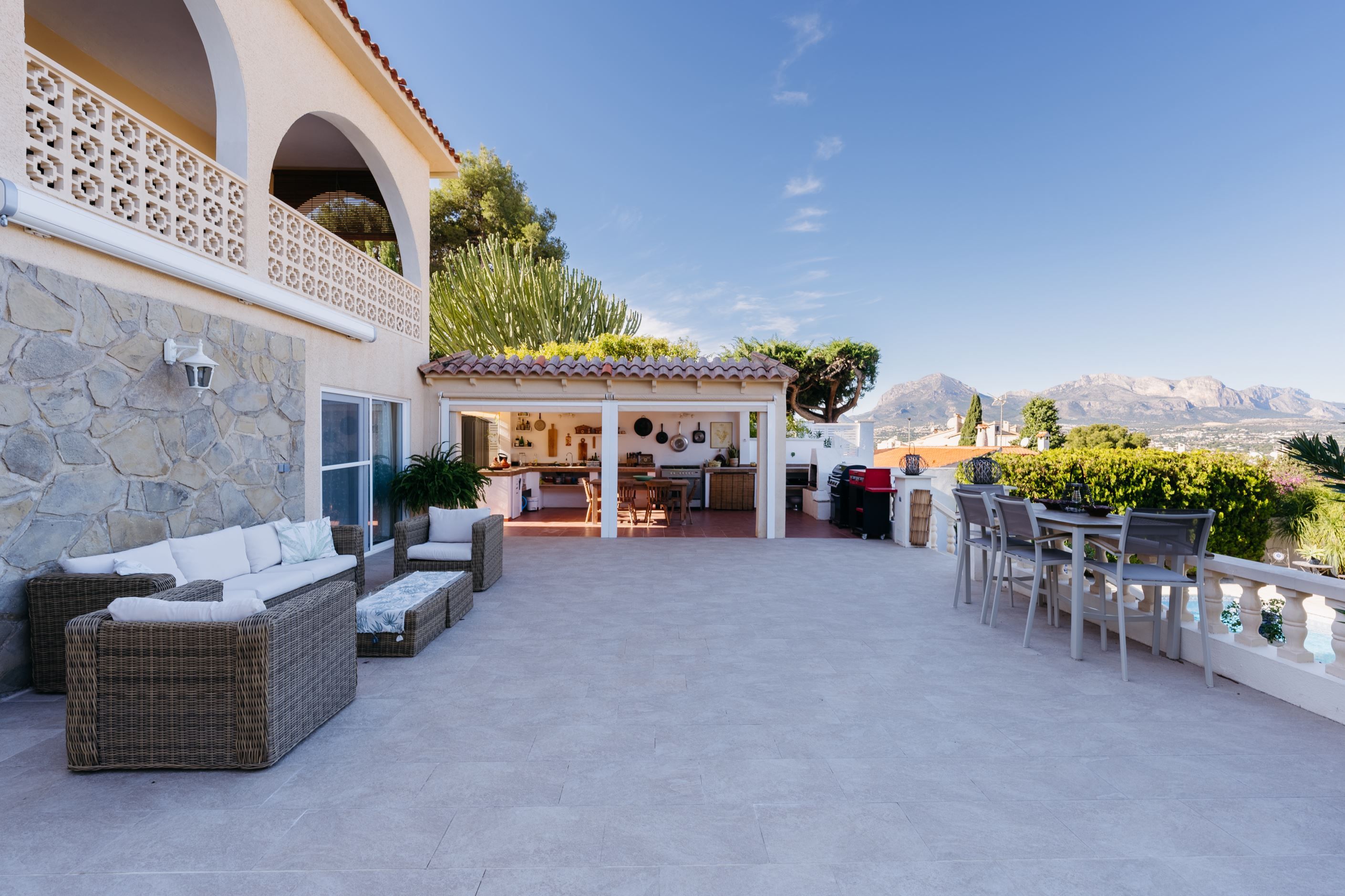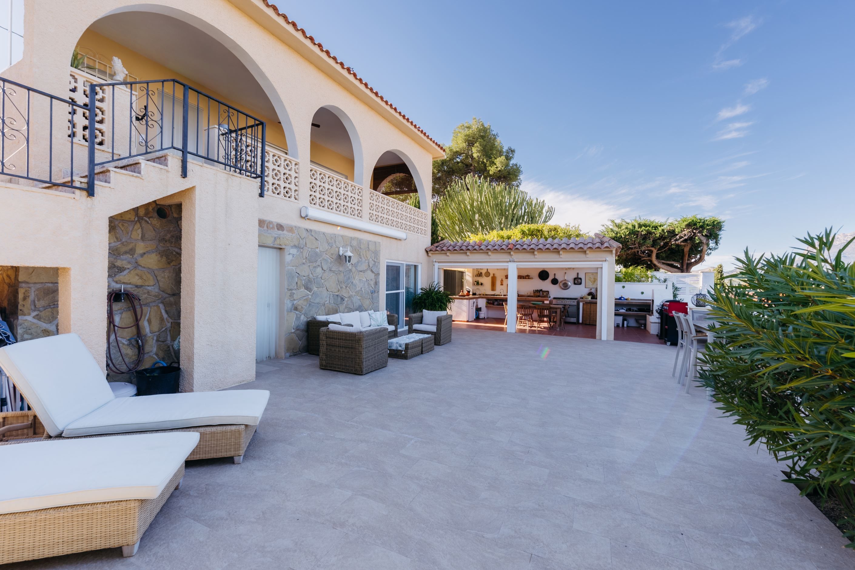 Villans exteriör är en riktig pärla som inbjuder dig att njuta av utomhuslivet. Med en privat pool, flera soliga terrasser och ett imponerande utekök är det den perfekta platsen för Medelhavets somrar. Dessutom erbjuder den rymliga trädgården tillräckligt med utrymme för att koppla av, leka eller njuta av oförglömliga stunder med familj och vänner - ett hus med allt du behöver för att skapa ditt perfekta hem!