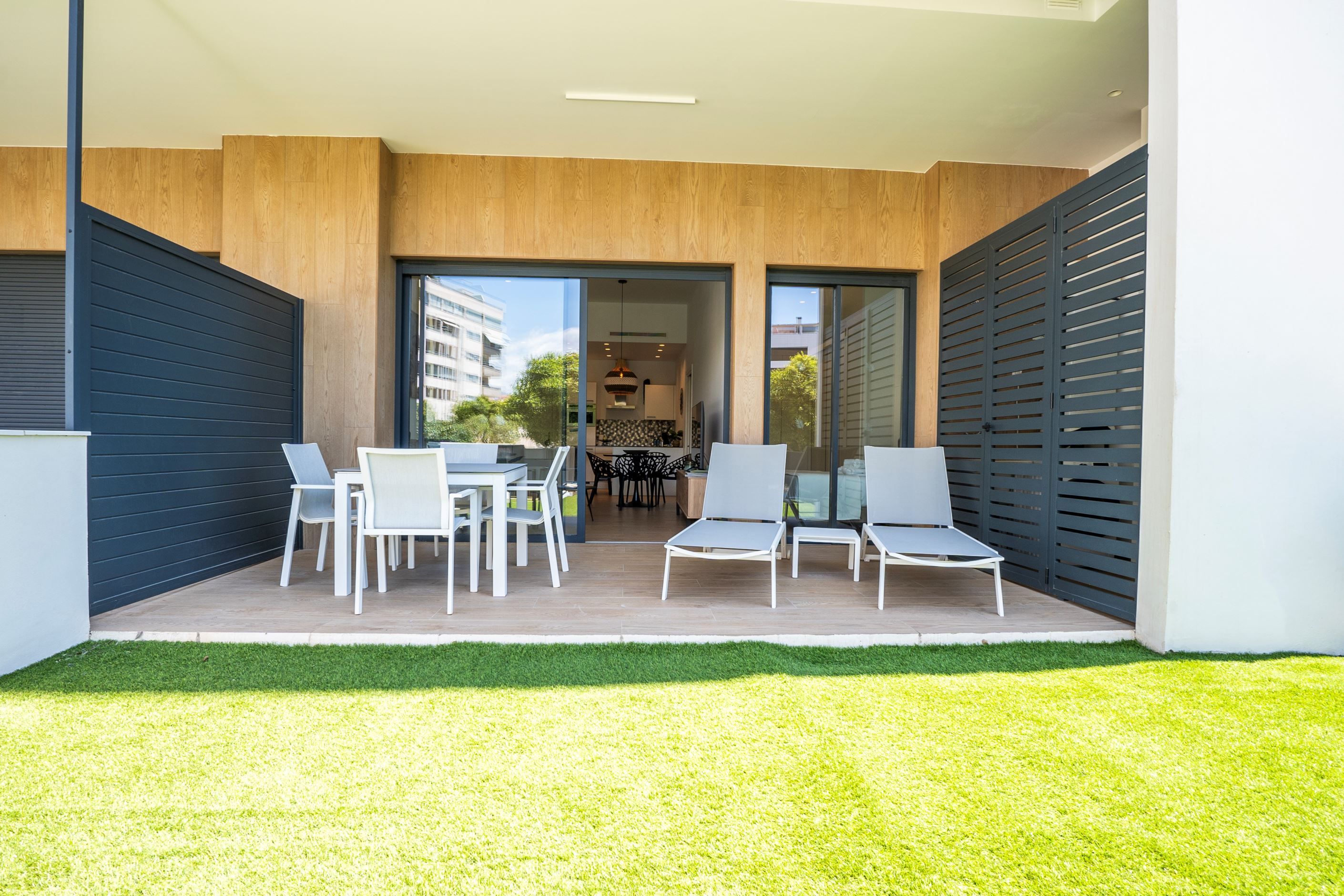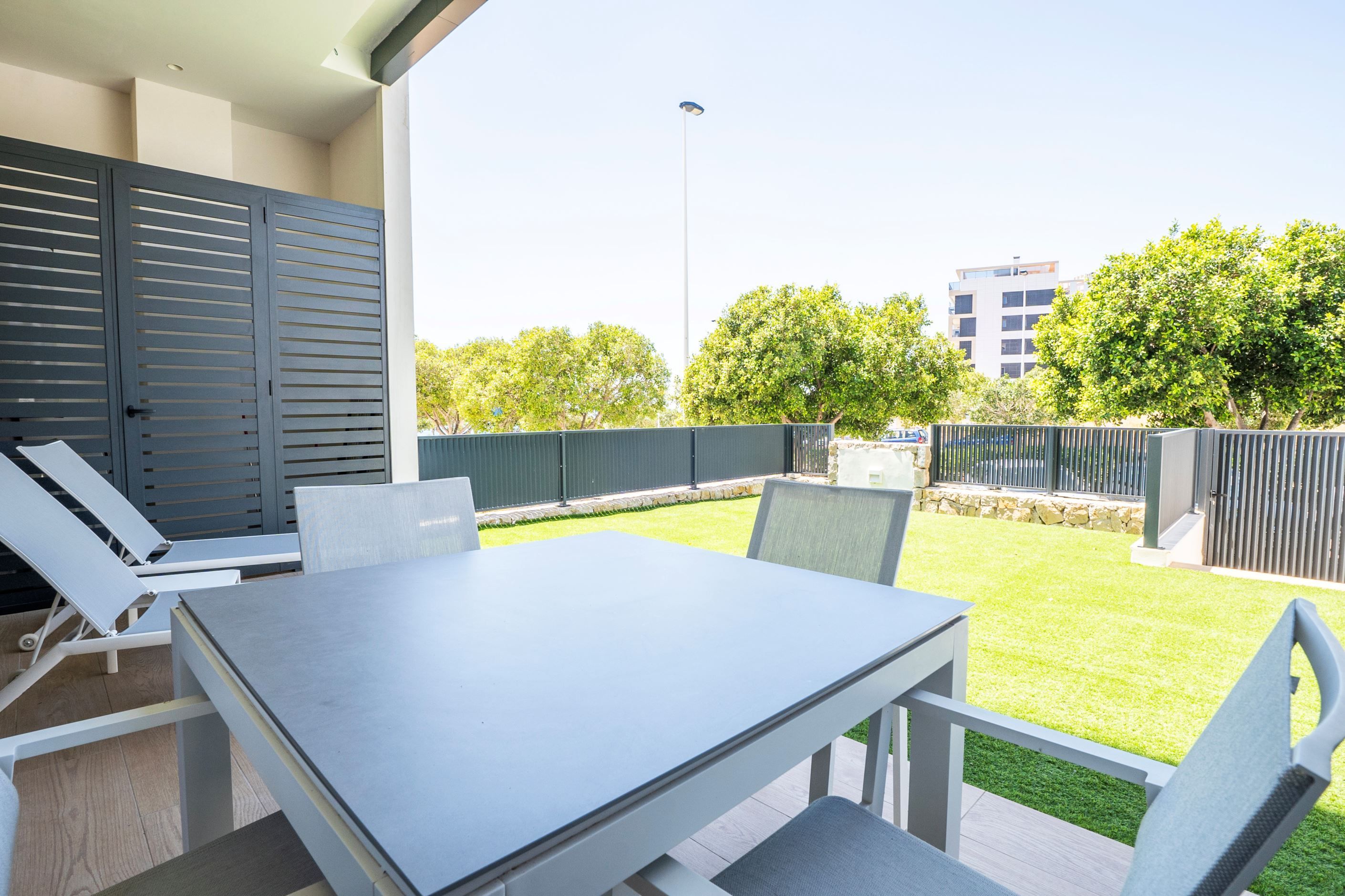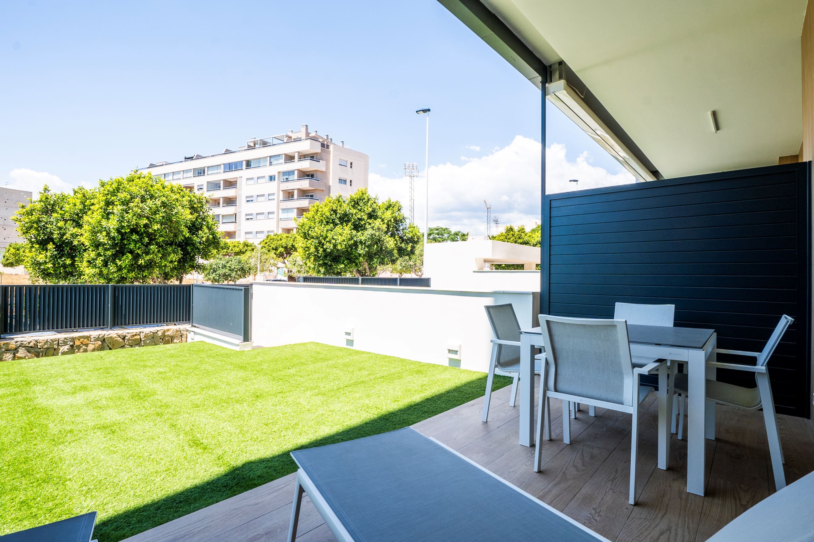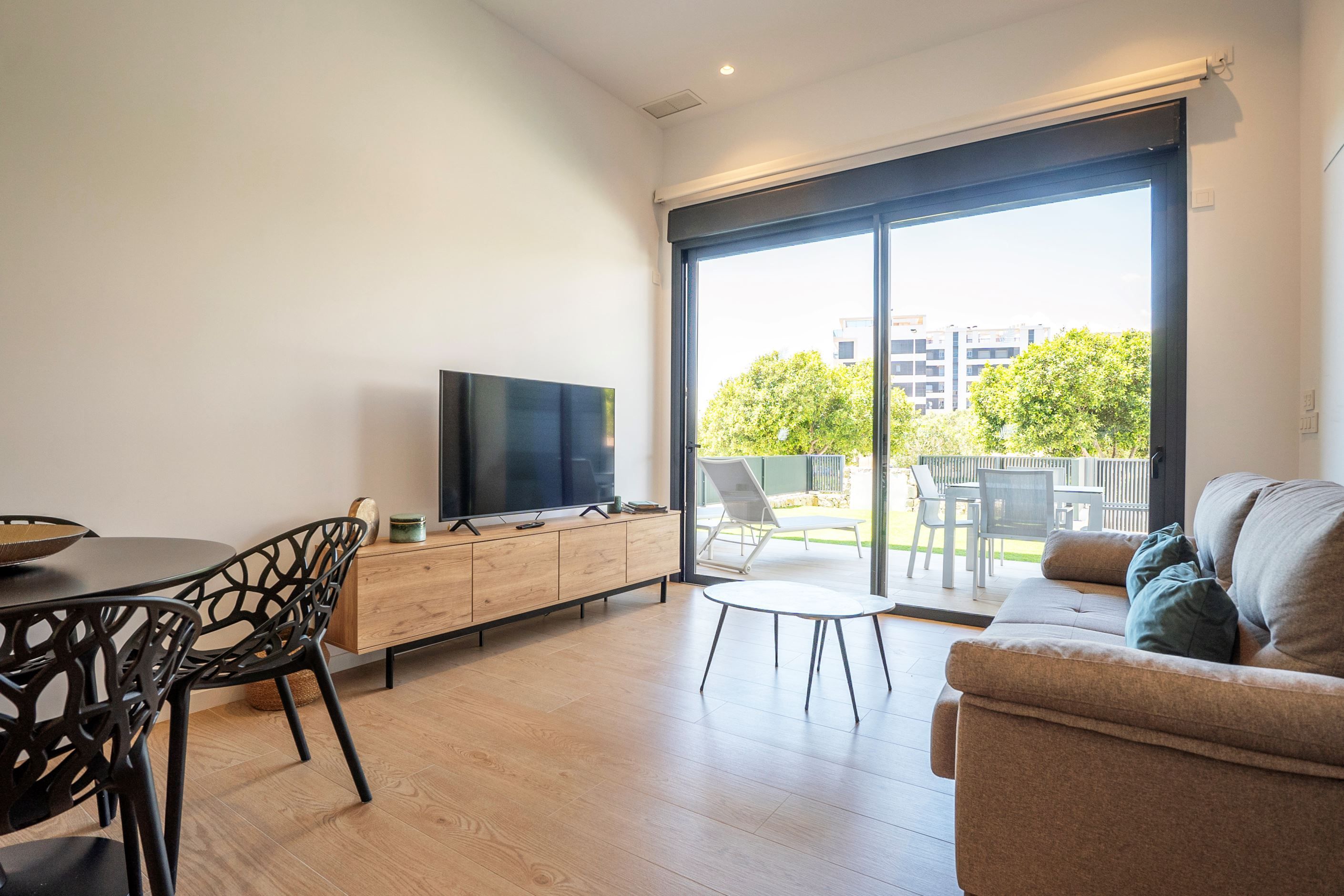 Fastigheten har mer än 50 m2 bostadsyta, tillsammans med 15 m2 täckt terrass och 45 m2 privat trädgård. Den har ett sovrum, ett komplett badrum, ett vardagsrum med integrerat kök och direkt tillgång till en möblerad terrass och privat trädgård med utsikt över de gemensamma områdena. Det är ett perfekt alternativ för både personligt bruk och semesteruthyrning.