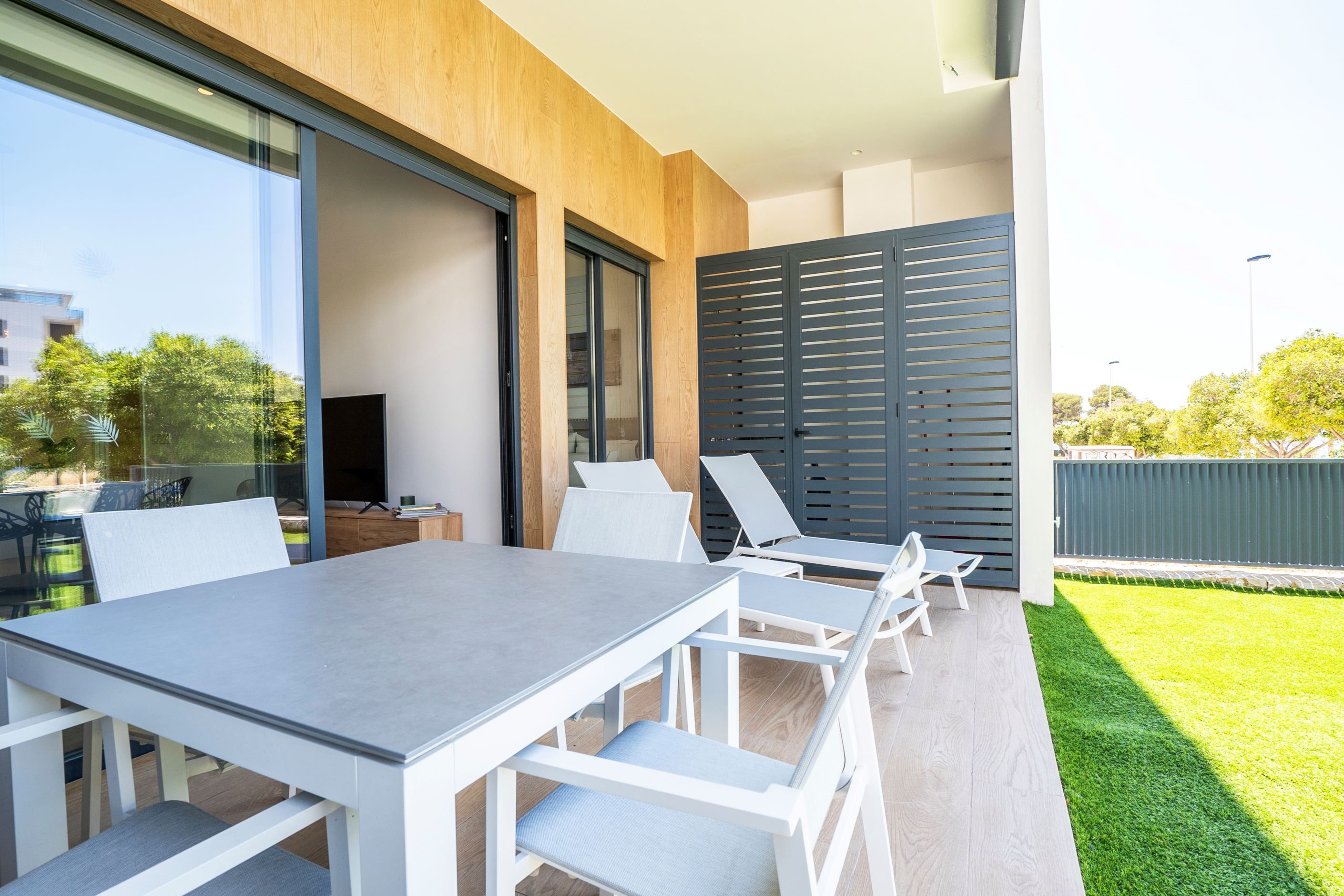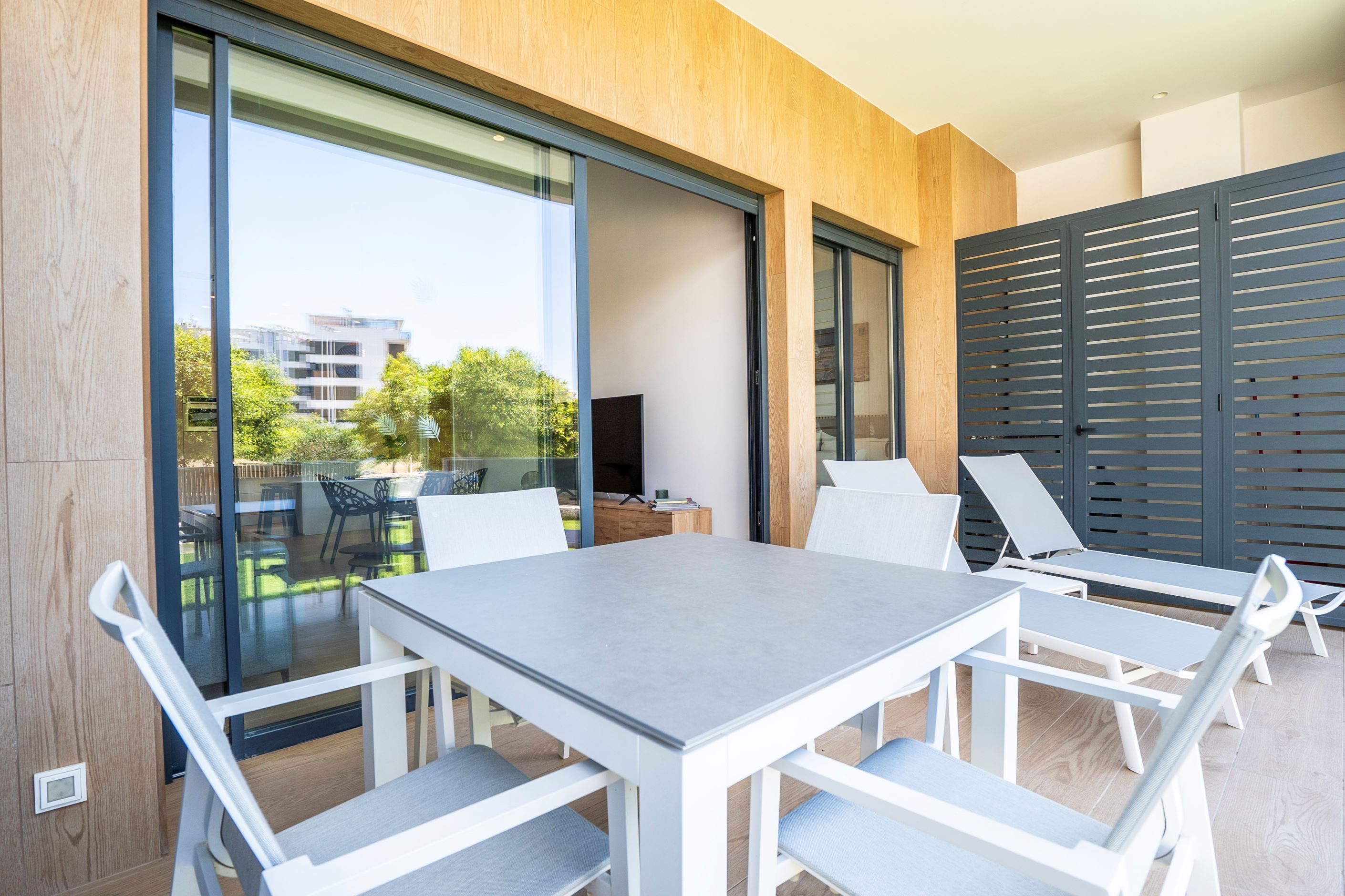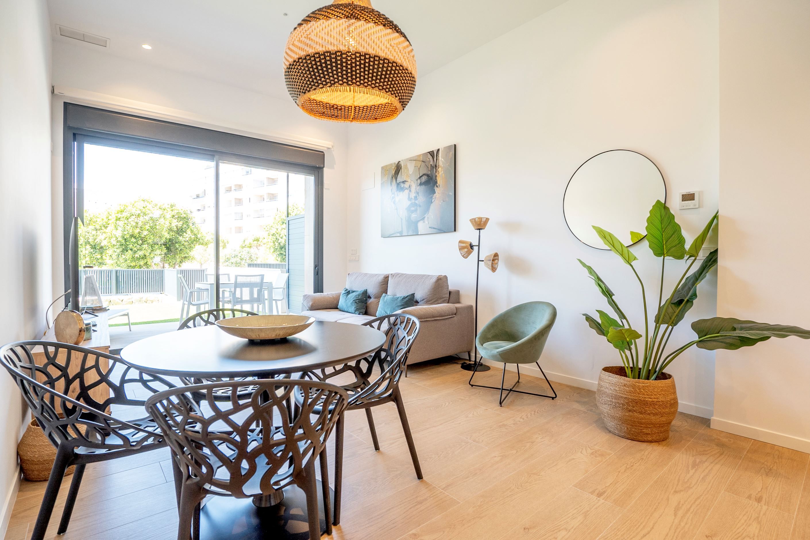 Fastigheten har mer än 50 m2 bostadsyta, tillsammans med 15 m2 täckt terrass och 45 m2 privat trädgård. Den har ett sovrum, ett komplett badrum, ett vardagsrum med integrerat kök och direkt tillgång till en möblerad terrass och privat trädgård med utsikt över de gemensamma områdena. Det är ett perfekt alternativ för både personligt bruk och semesteruthyrning.