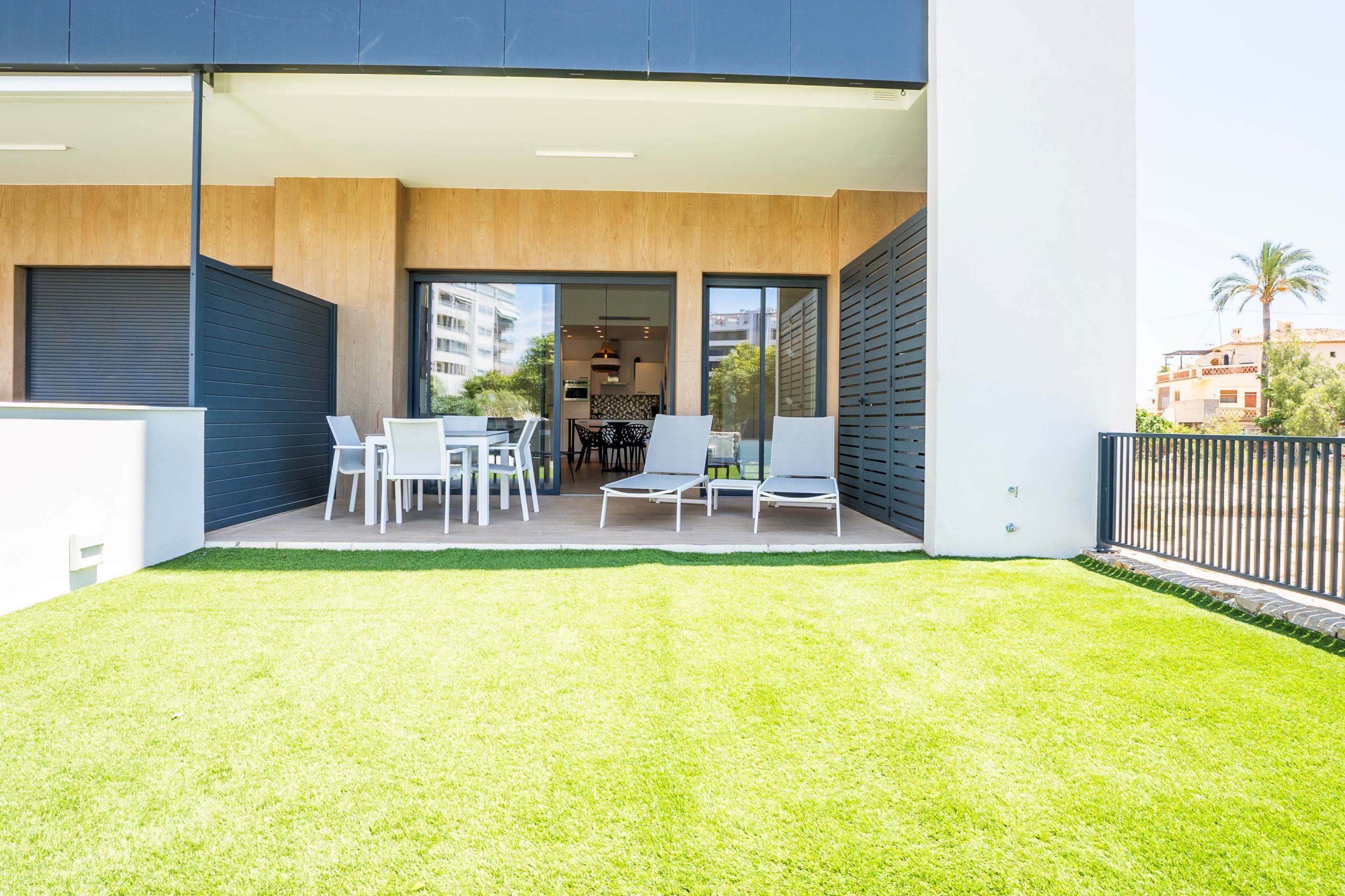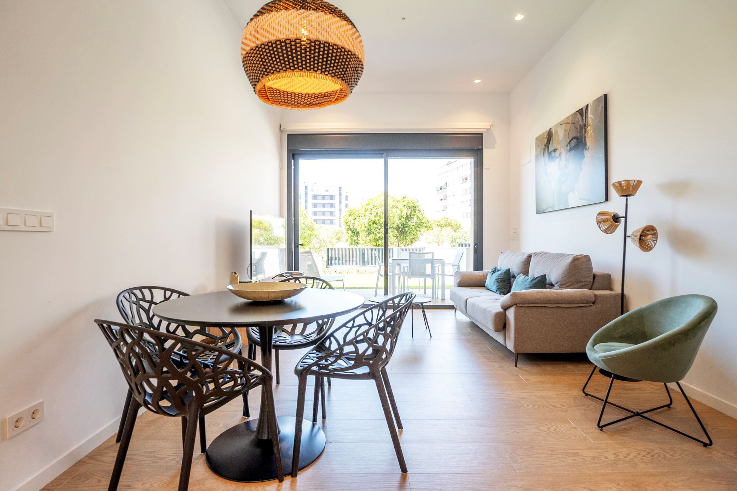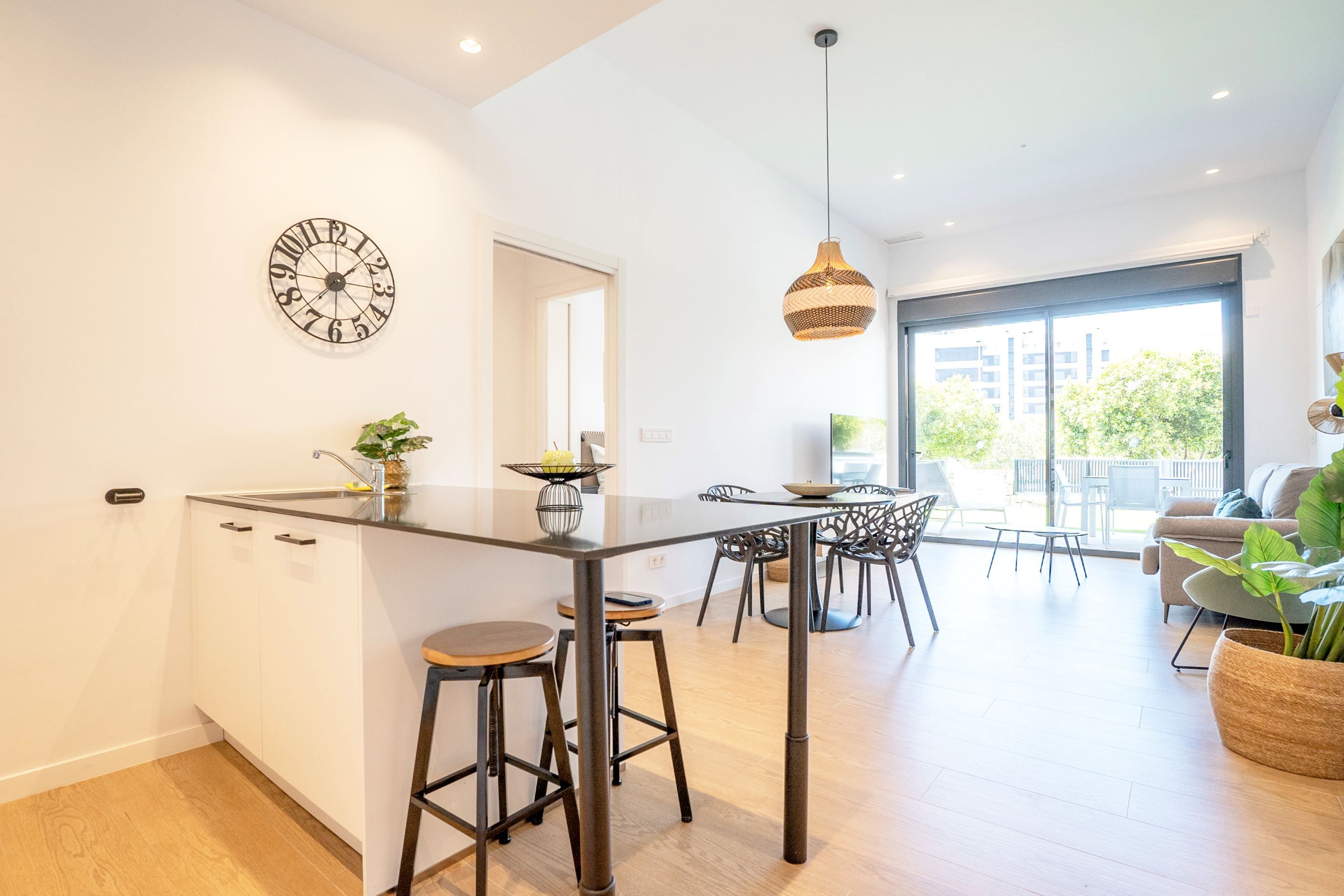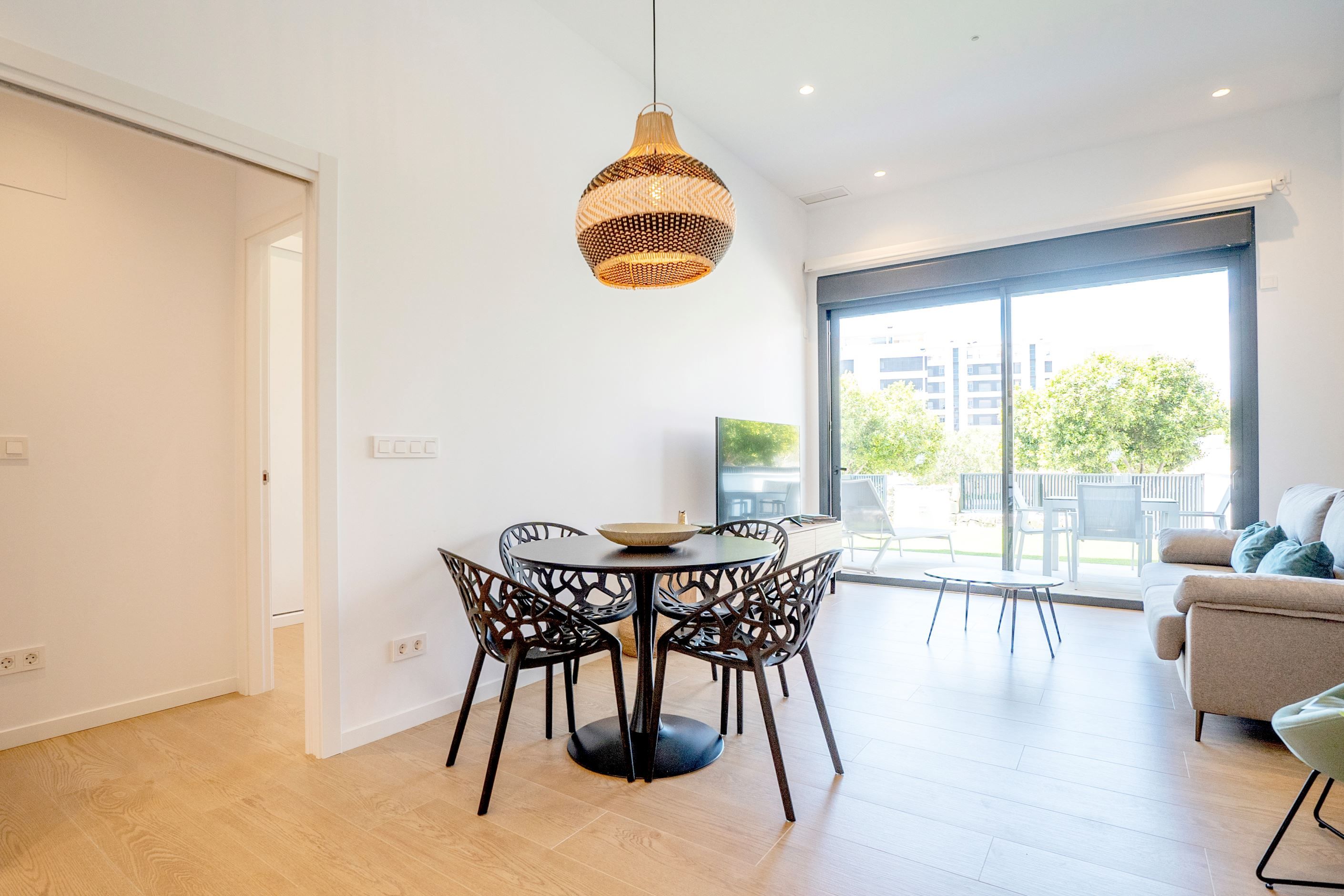 Fastigheten har mer än 50 m2 bostadsyta, tillsammans med 15 m2 täckt terrass och 45 m2 privat trädgård. Den har ett sovrum, ett komplett badrum, ett vardagsrum med integrerat kök och direkt tillgång till en möblerad terrass och privat trädgård med utsikt över de gemensamma områdena. Det är ett perfekt alternativ för både personligt bruk och semesteruthyrning.