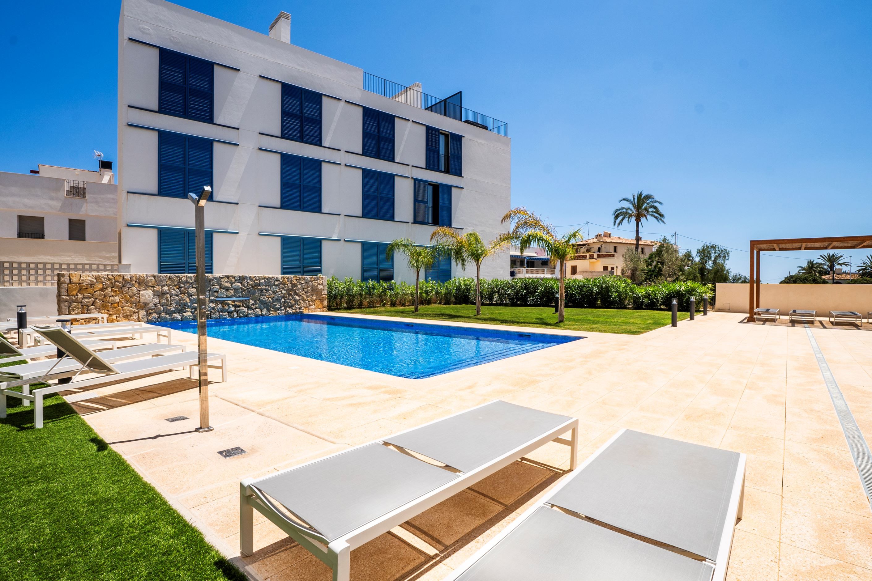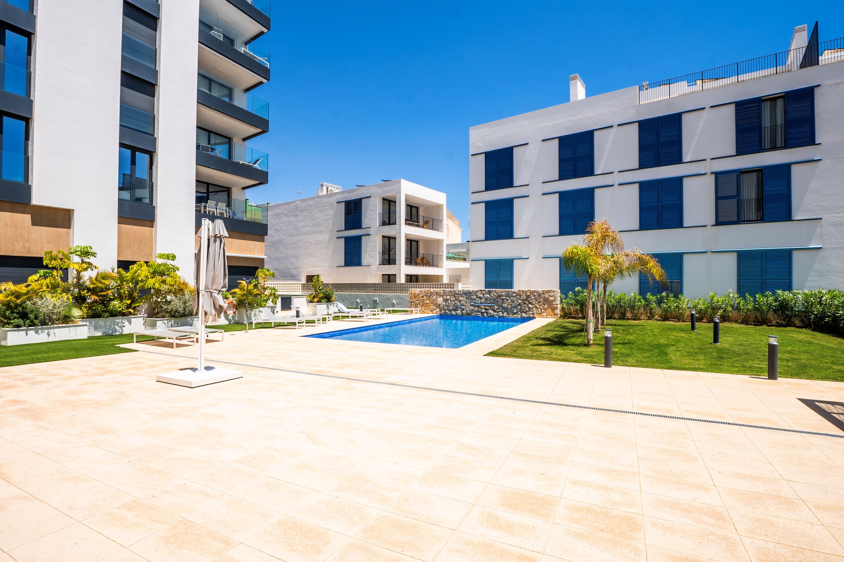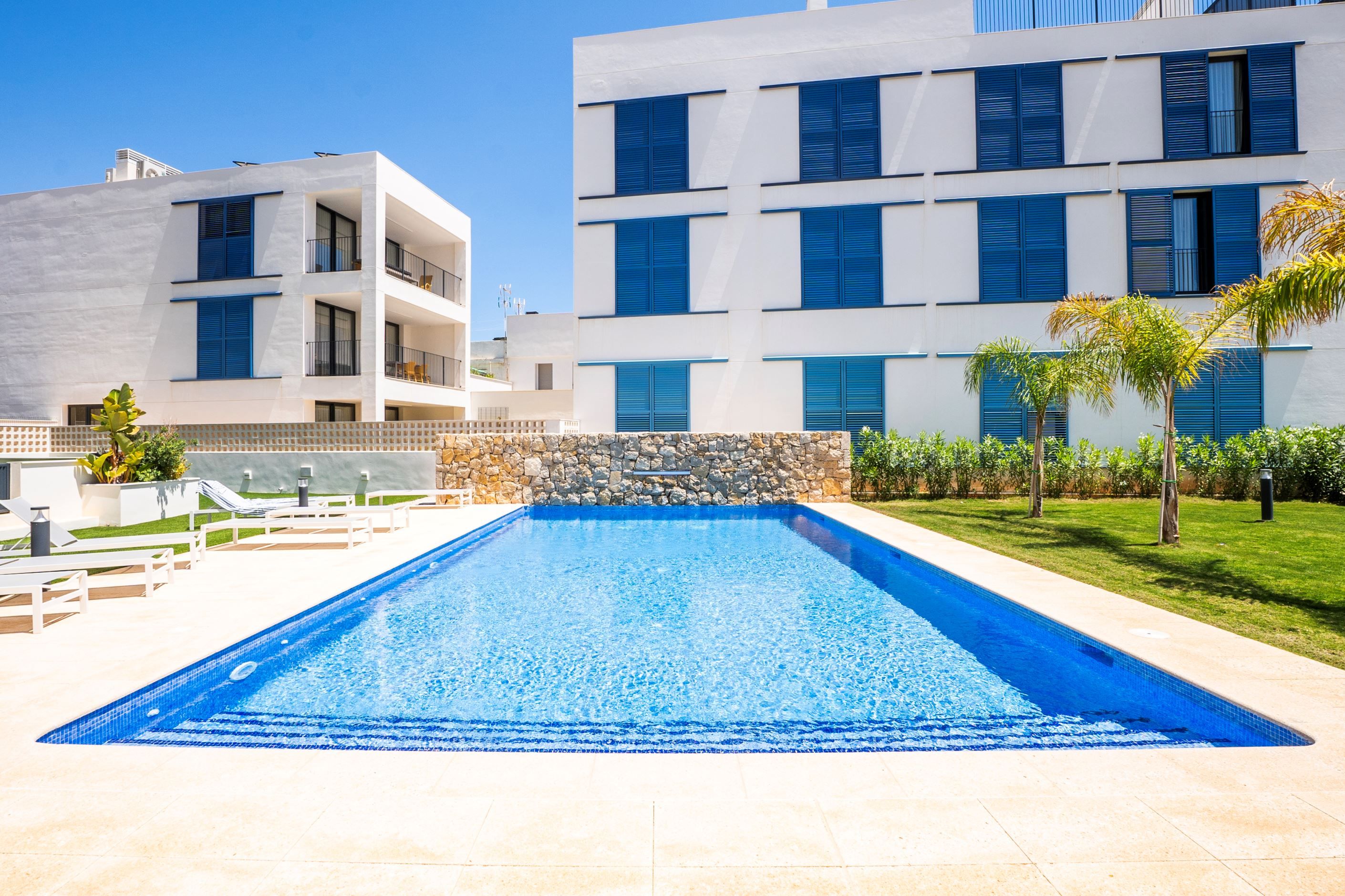 Utomhusområdet har en modern gemensam pool och en gemensam terrass där man kan njuta av solen och Medelhavsklimatet. En parkeringsplats och ett förråd ingår också i priset.