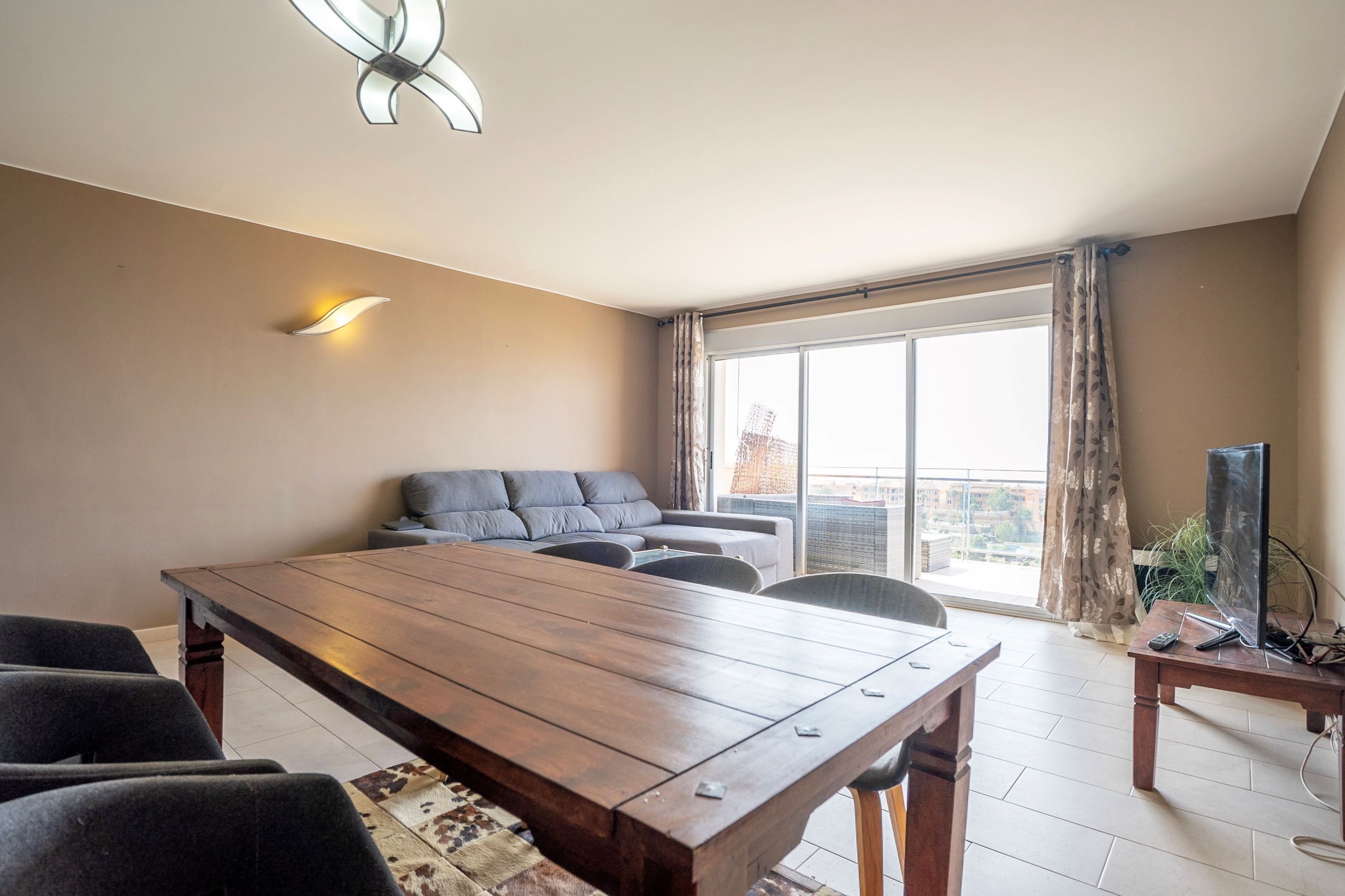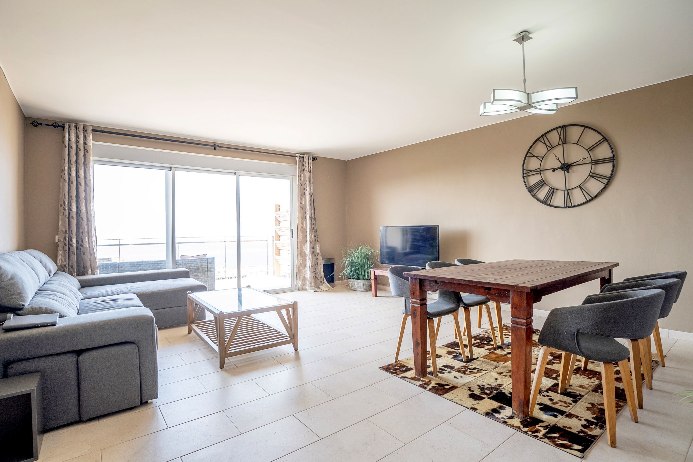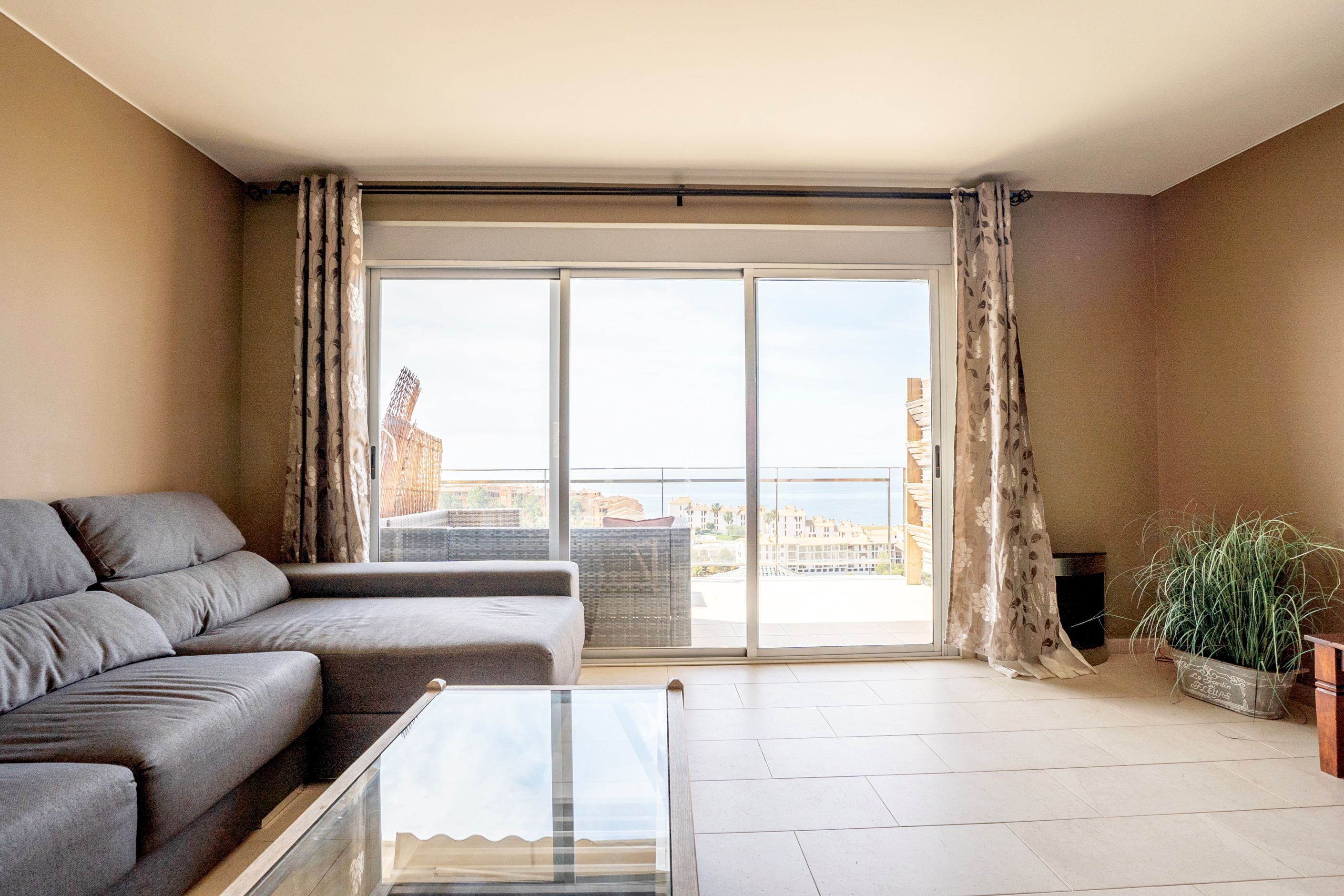 Lägenheten ligger på andra våningen i en byggnad med hiss och har en total yta på 130 m². Den består av en hall, ett separat kök, två sovrum med inbyggda garderober - ett med eget badrum - och ett andra badrum. Vardagsrummet och matsalen vetter mot en terrass med havsutsikt. Fastigheten har kanaliserad luftkonditionering och säljs möblerad.