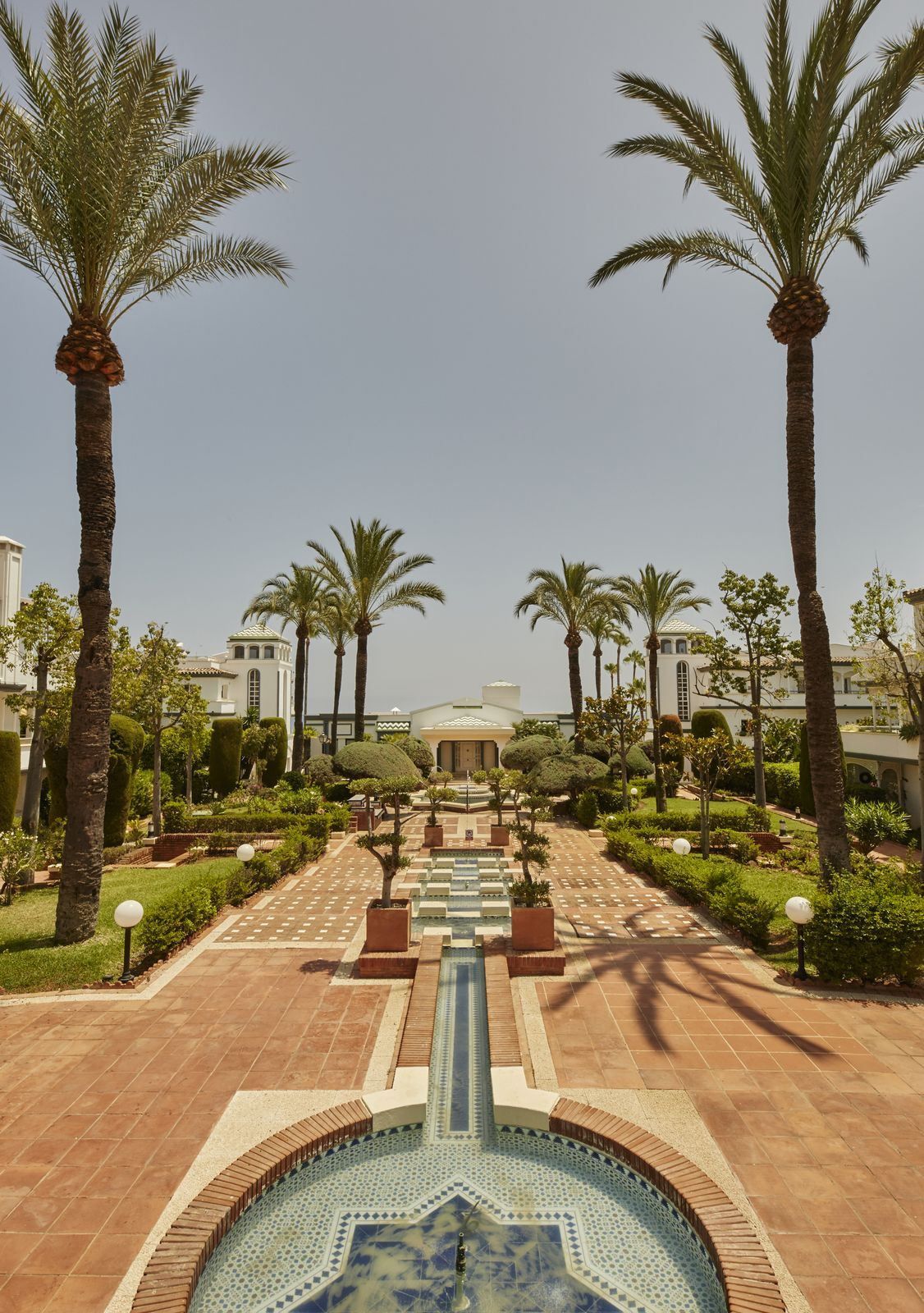 Den har två pooler, ett gym, en restaurang och vackert underhållna, uppvuxna trädgårdar.