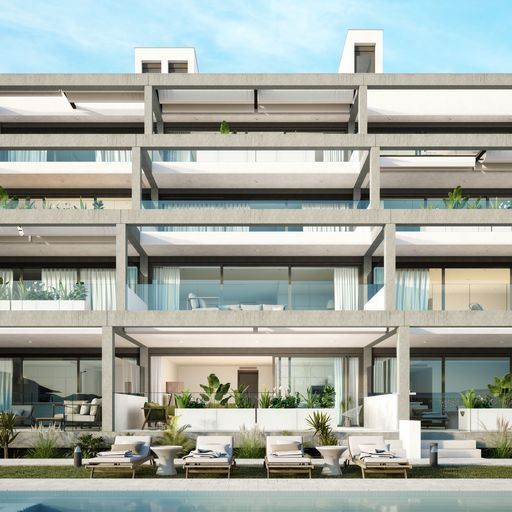Lägenheter är i modern stil, designade med öppna ytor och stora fönster, två sovrum och två badrum. Lägenheterna i markplan har stora terrasser som vetter mot poolen medan takvåningen har ett solarium på mer än 70 kvm.
