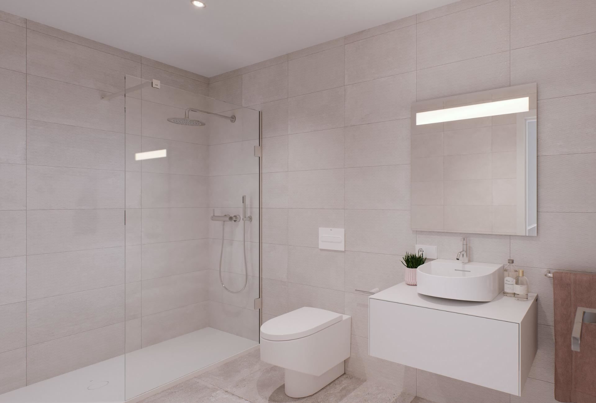 Interiören präglas av moderna material, hög standard och noggrant utvalda detaljer som golvvärme i badrummen, aerotermiskt system för varmvatten och förinstallation för luftkonditionering. En pansrad ytterdörr, isolerande PVC-stommar och ljuddämpande glas ger både trygghet och komfort året runt.