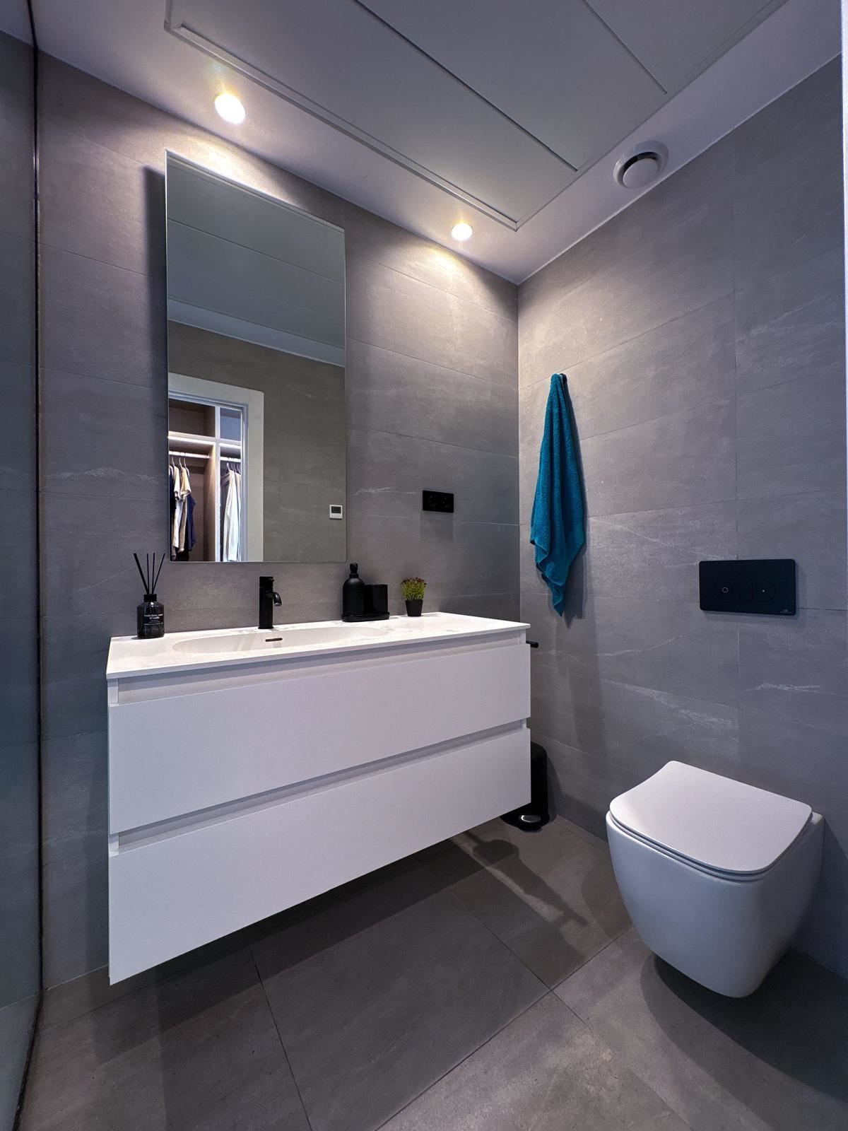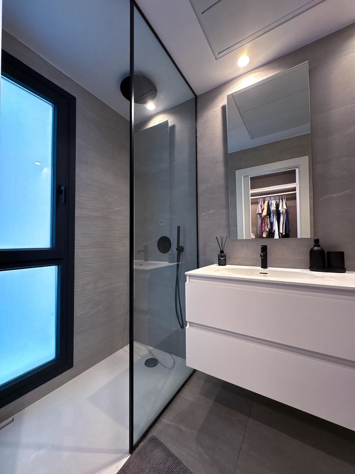 Villan är byggd på en generös tomt om 253 m² med en total boyta på 122 m², smart planerad för att skapa rymd, ljus och komfort. Den erbjuder tre rymliga sovrum, varav två med eleganta badrum ensuite – alla med inbyggda garderober och en stilren, modern känsla. Badrummen är utrustade med golvvärme för extra komfort året om.
