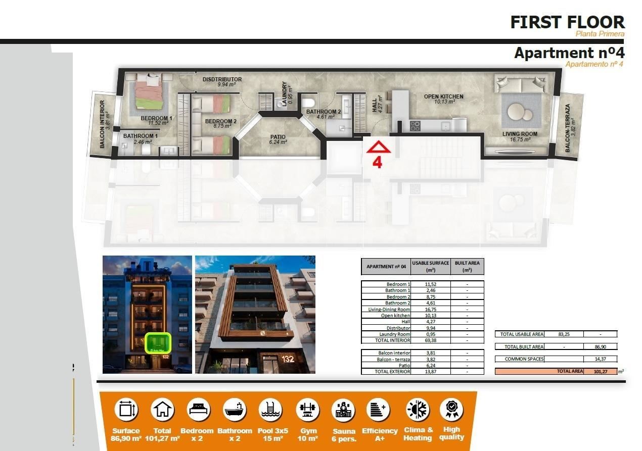 Välkommen till ett exklusivt nybyggnadsprojekt i hjärtat av Torrevieja – en plats där elegans, funktion och medelhavsliv möts. Endast 250 meter från den välkända Playa del Cura ligger denna moderna byggnad med tolv noggrant utformade lägenheter. Här bor du med havet, stadens puls och den avslappnade kustkänslan alldeles runt hörnet.