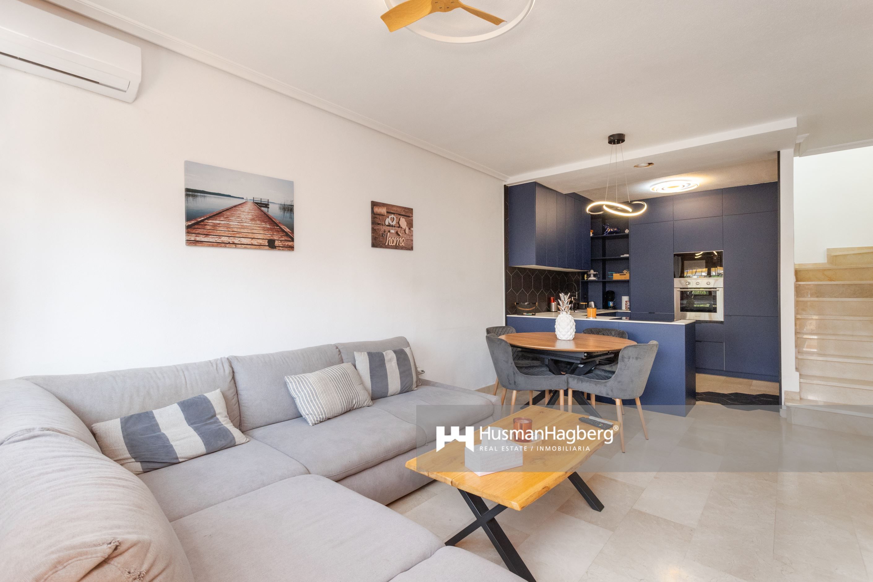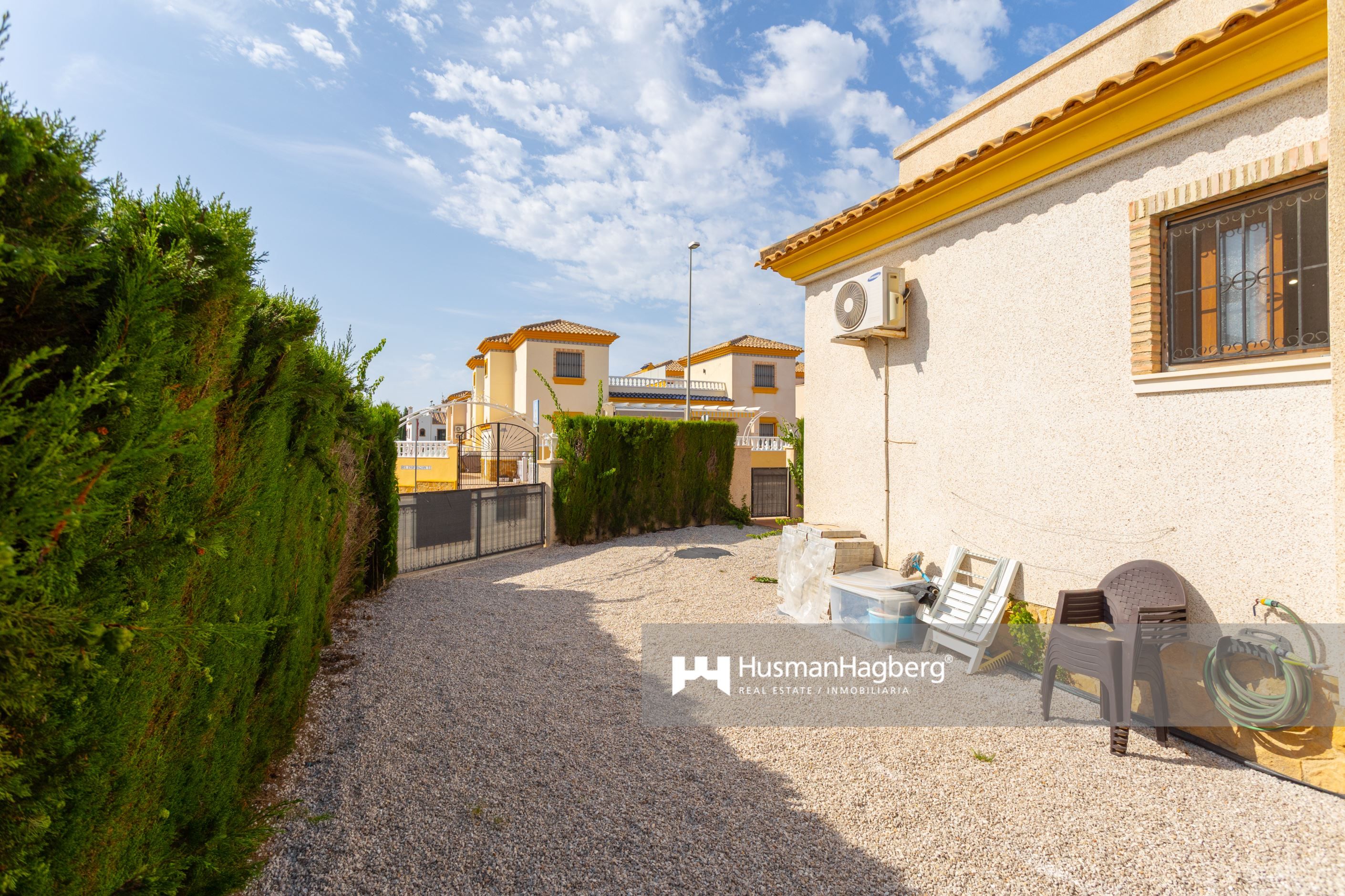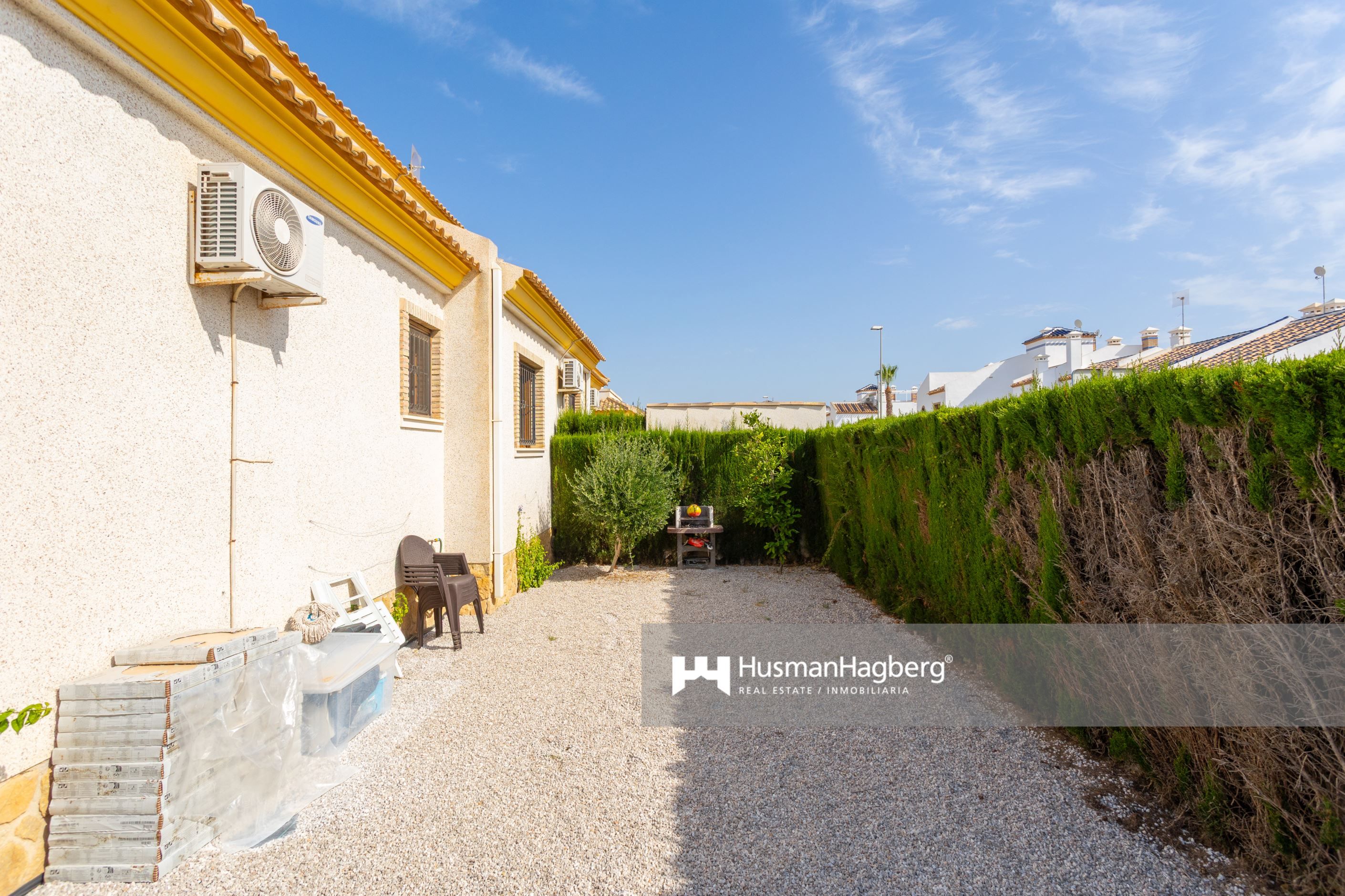 Välkommen till denna smakfullt totalrenoverade fristående villa i ett av Villamartíns mest populära områden – Pau 8. Här bor du på en generös hörntomt med en uppvuxen privat trädgård, gott om plats för både avkoppling och sociala stunder under den spanska solen. Huset erbjuder tre rymliga sovrum med inbyggda garderober, två helkaklade badrum och ett ljust vardagsrum med öppen planlösning mot det moderna köket.