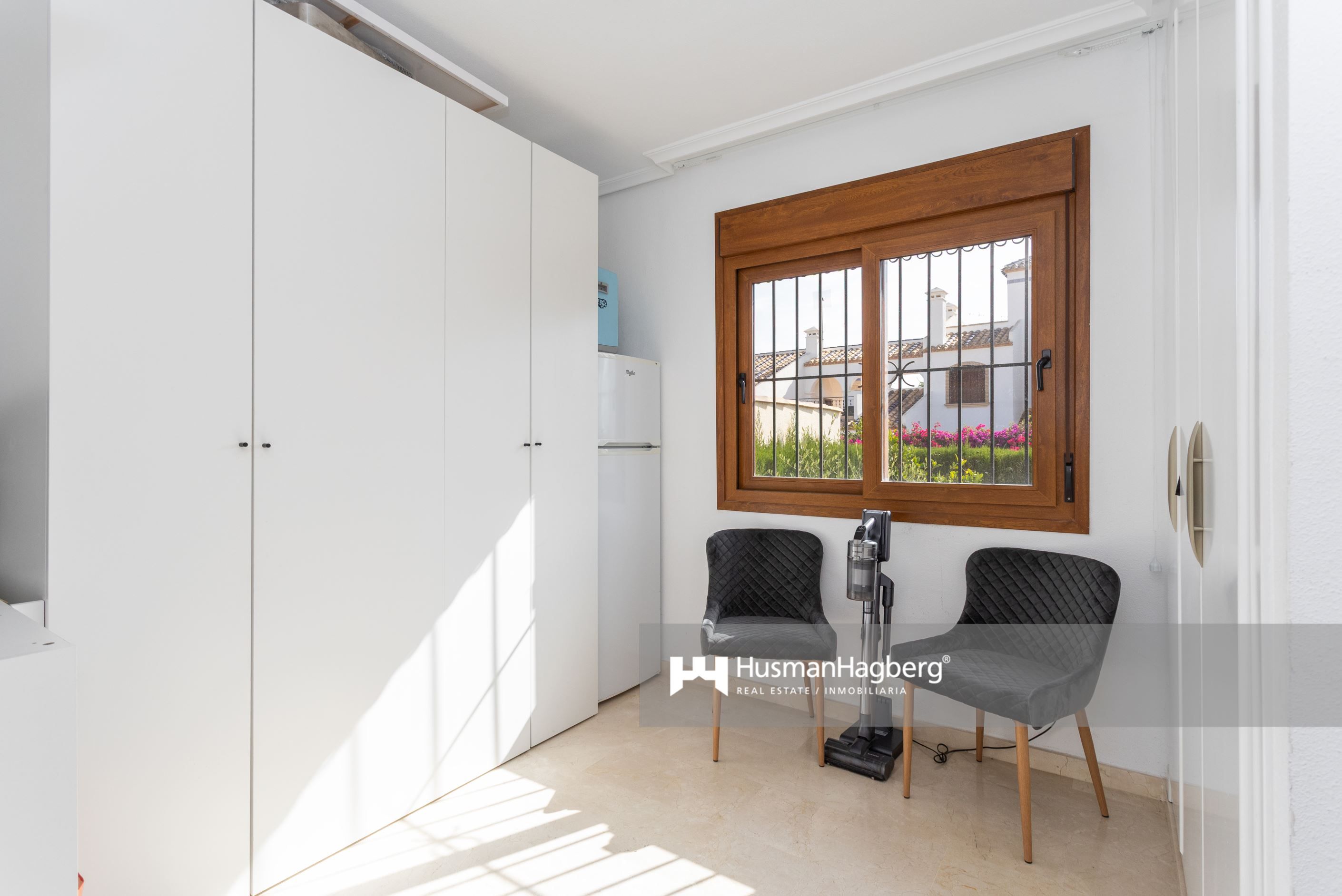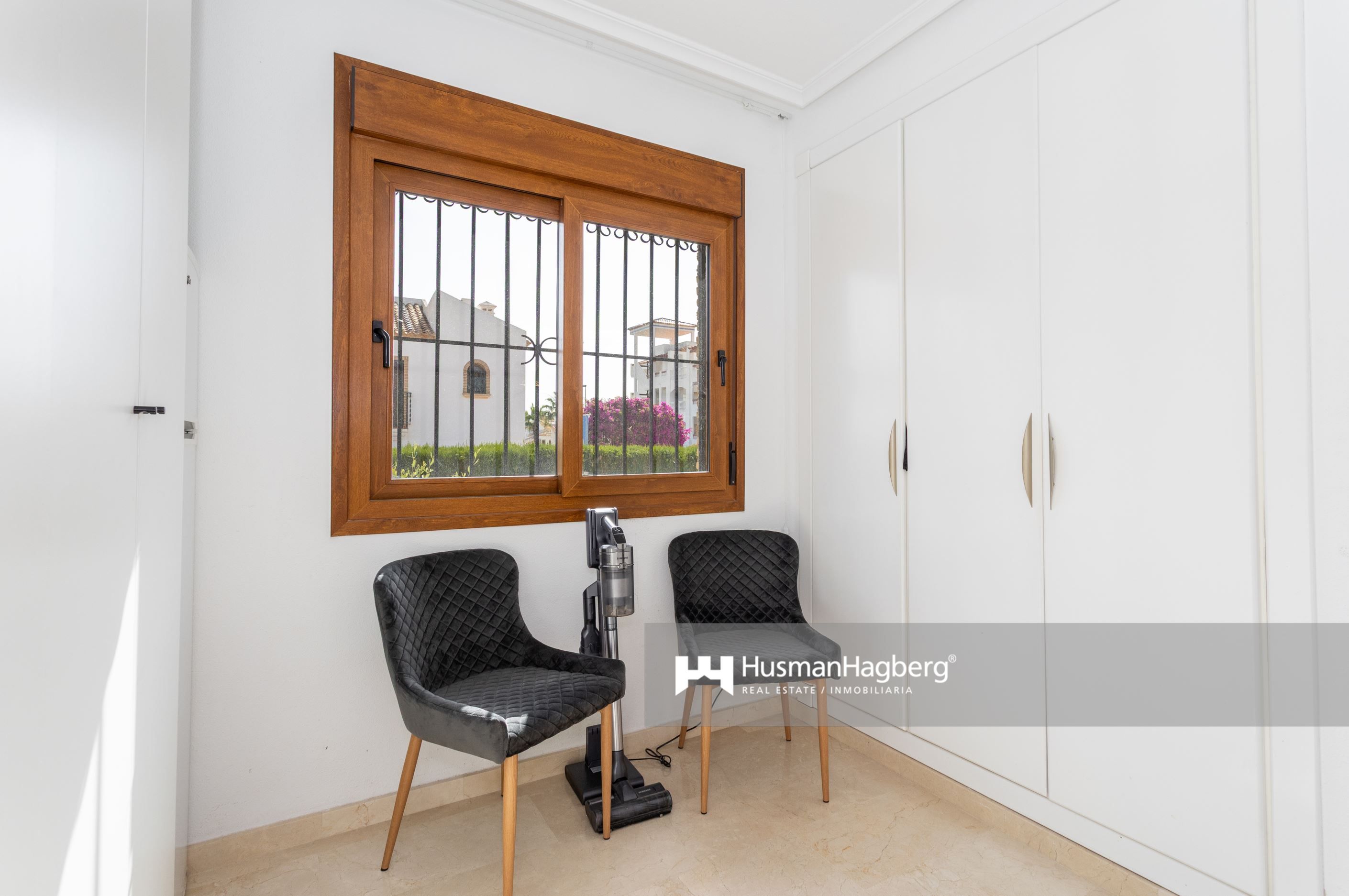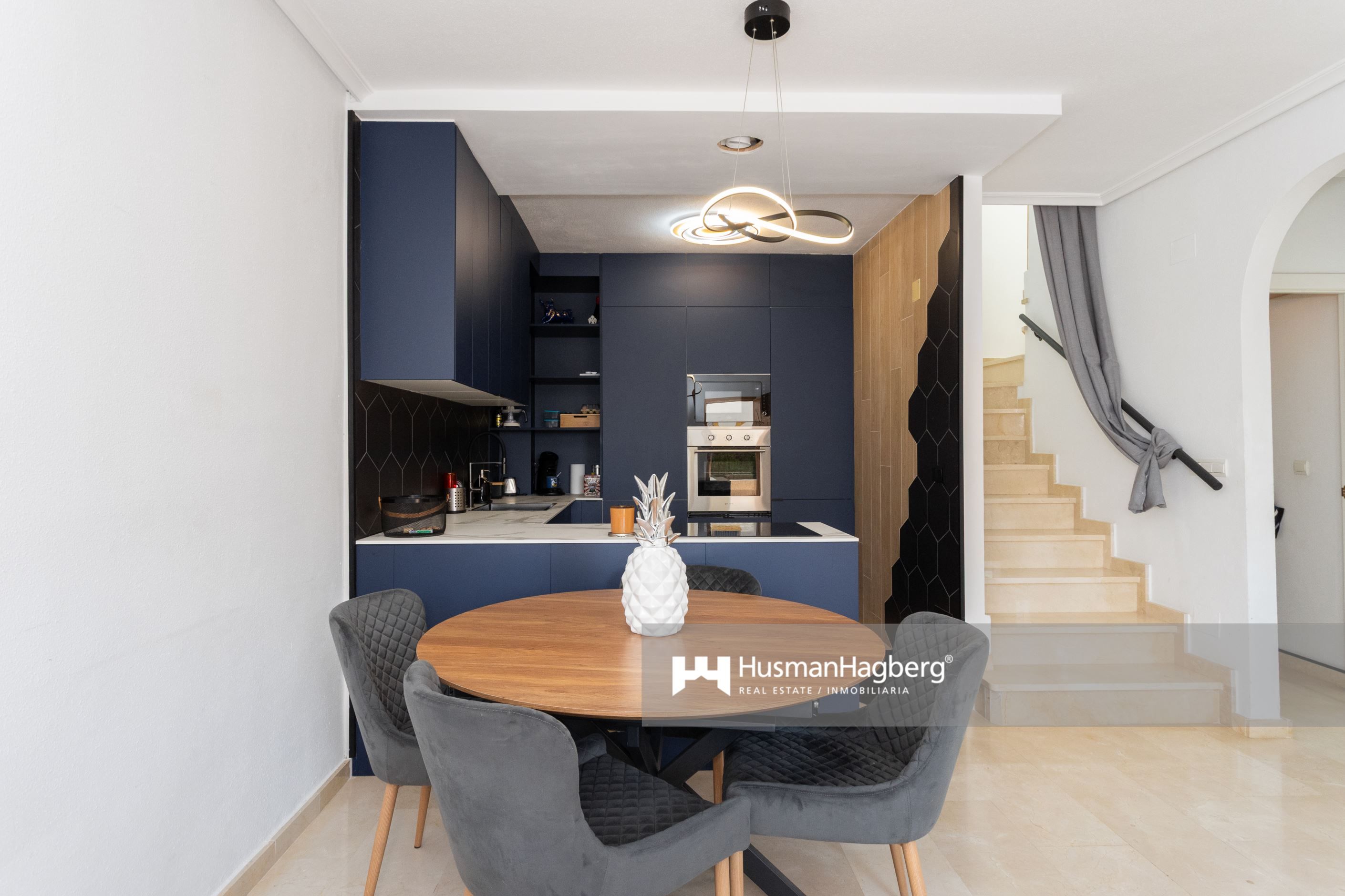 Välkommen till denna smakfullt totalrenoverade fristående villa i ett av Villamartíns mest populära områden – Pau 8. Här bor du på en generös hörntomt med en uppvuxen privat trädgård, gott om plats för både avkoppling och sociala stunder under den spanska solen. Huset erbjuder tre rymliga sovrum med inbyggda garderober, två helkaklade badrum och ett ljust vardagsrum med öppen planlösning mot det moderna köket.