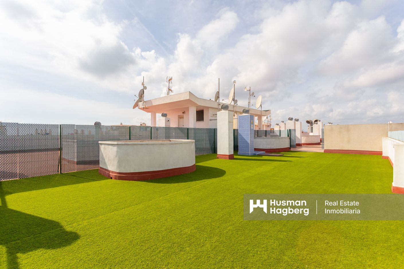 Utanför väntar en vacker gemensam pool och välskötta gröna ytor, perfekta för avkoppling eller sociala stunder med grannar. Allt detta kombineras med ett lugnt och praktiskt läge, med närhet till stadens puls och Playa Los Locos bara några minuter bort.