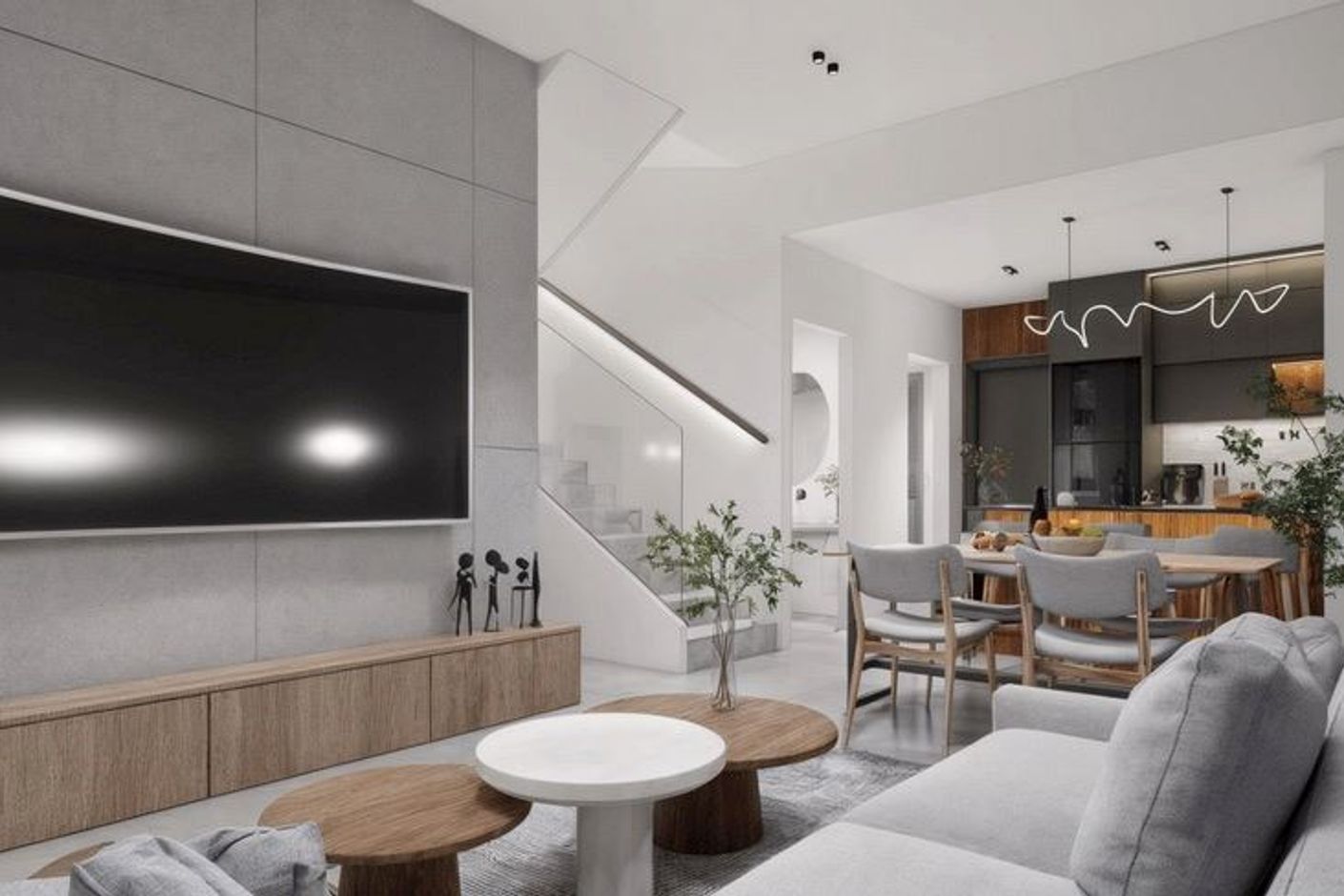 Redan vid första anblick möts du av en modern vit fasad med naturlig sten, stora fönster i aluminium och glas som suddar ut gränsen mellan ute och inne. Den ljusa interiören bärs upp av eleganta raka linjer, höga dörrar och noggrant utvalda material som skapar en känsla av rymd och exklusivitet. De stora skjutpartierna i vardagsrummet öppnar upp mot trädgården och den privata poolen, vilket förlänger bostadens sociala ytor och gör den perfekt för både avkoppling och underhållning.