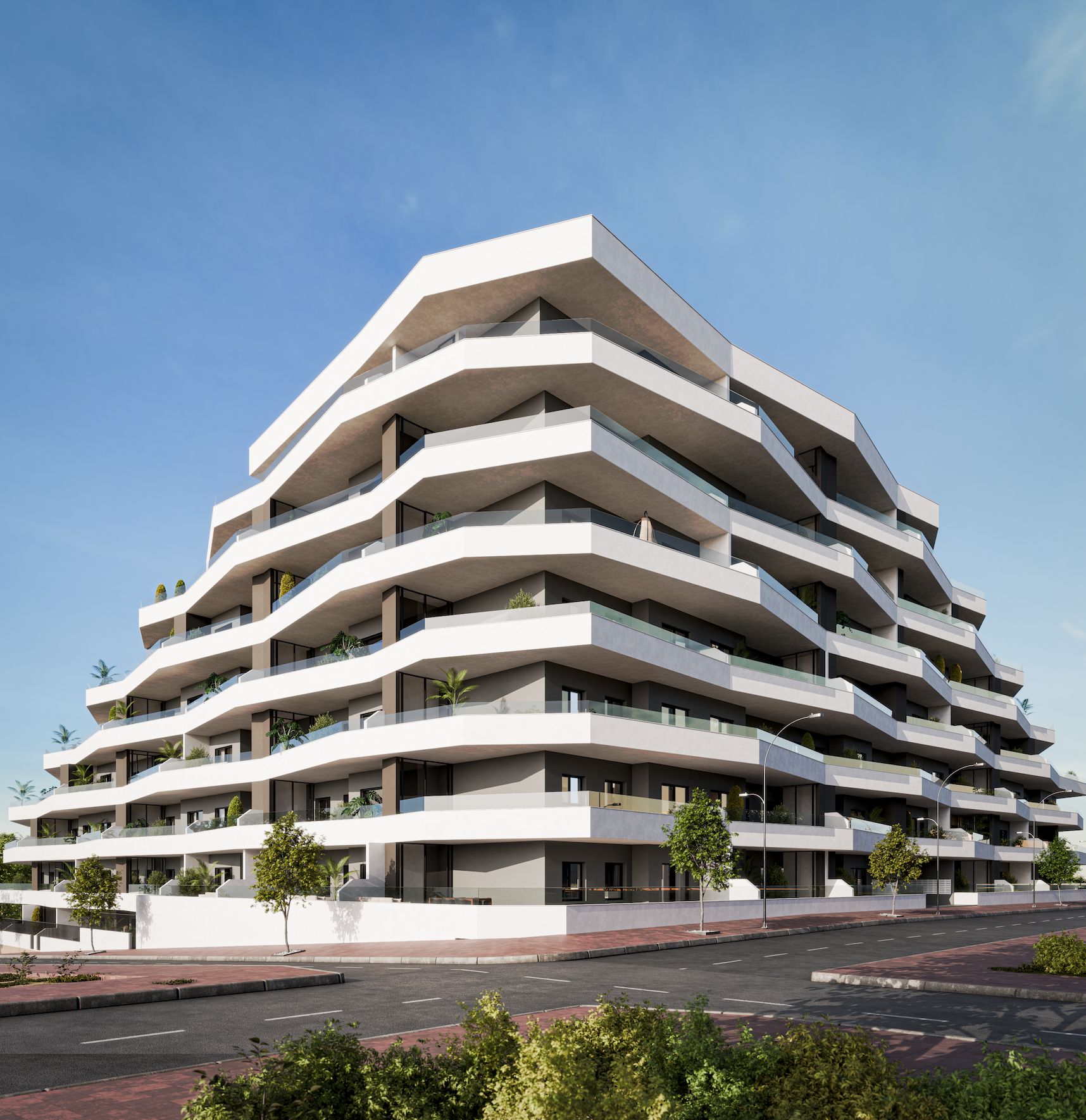 Detta nybyggda bostadsområde i San Miguel de Salinas erbjuder moderna lägenheter med 2 och 3 sovrum och stora terrasser, fördelade på sju våningar. Det gated community erbjuder förstklassiga faciliteter, inklusive separata pooler för vuxna och barn, frodiga grönområden, en lekplats och en wellness-zon för vuxna med en biosaludable krets.