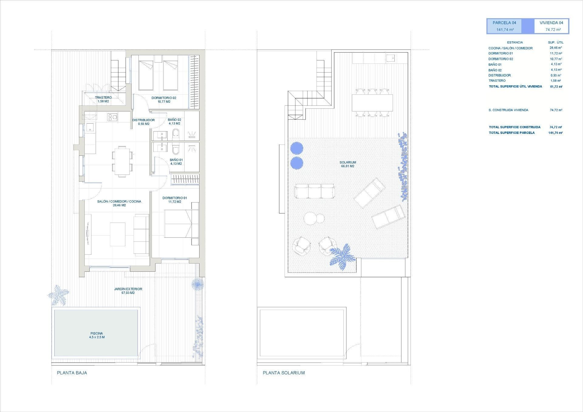 I hjärtat av den traditionella spanska småstaden Roldán växer dessa eleganta nybyggda parhus fram – perfekta för dig som söker en kombination av modernt boende, lugn miljö och närhet till kusten. Villorna är byggda i ett plan och erbjuder 2 eller 3 sovrum, 2 badrum samt ett ljust vardagsrum i öppen planlösning med det moderna köket. Här finns genomtänkta detaljer som inbyggda garderober och privata solarium som bjuder in till många soliga stunder med utsikt över omgivningarna.