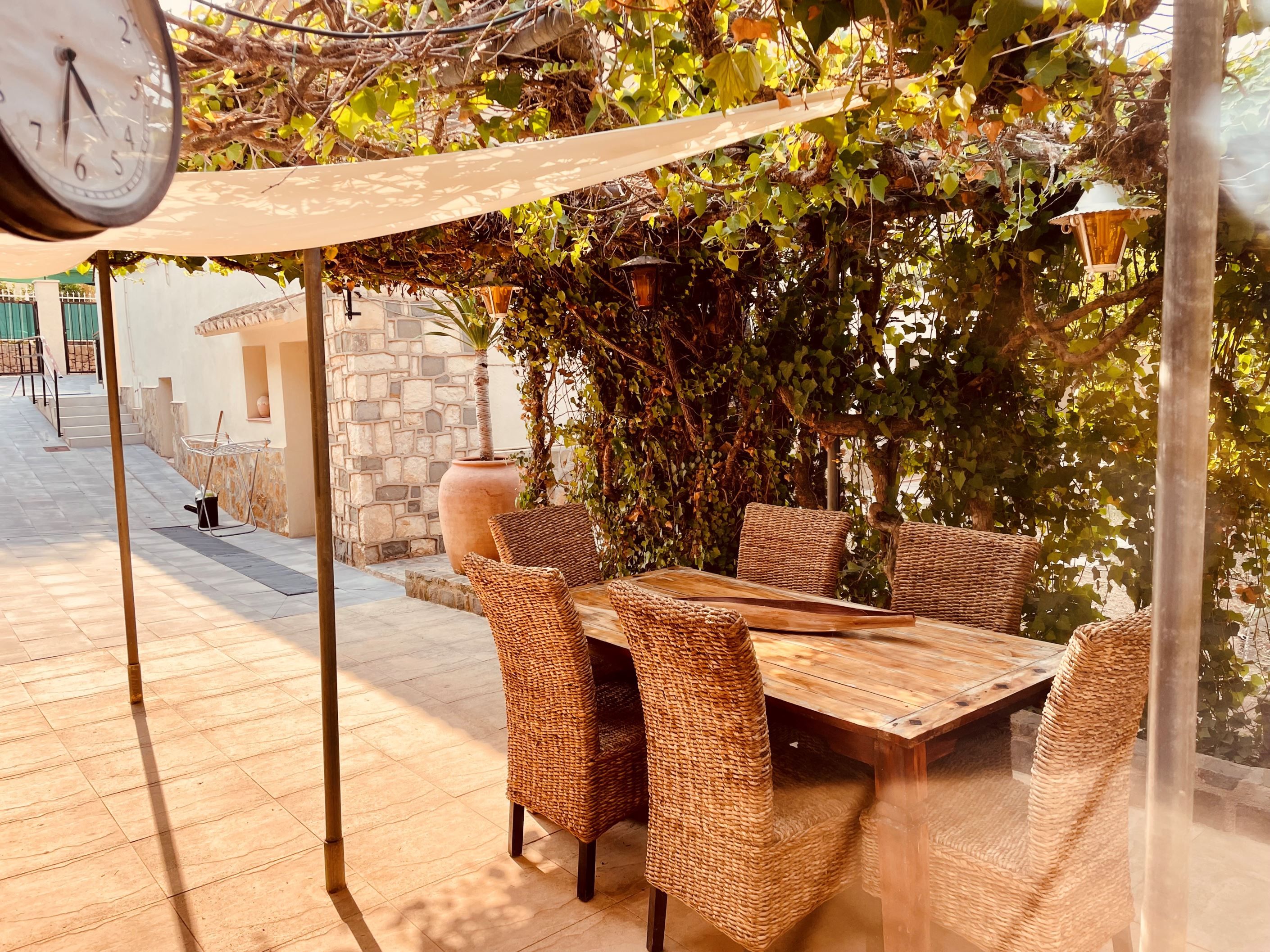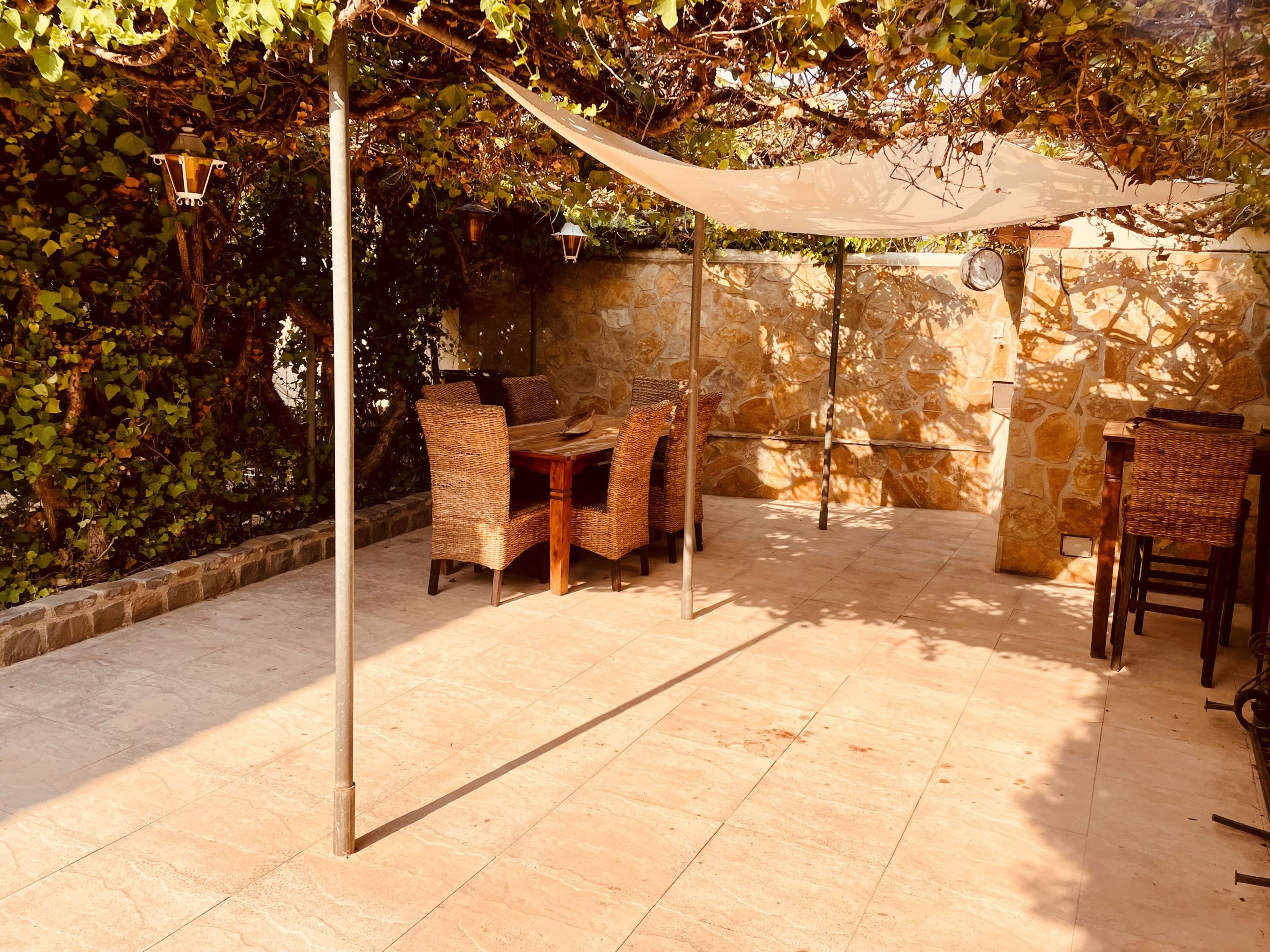 Denna vackert renoverade villa förenar äkta medelhavscharm med modern komfort. Huvudplanet, totalrenoverat 2025, erbjuder ett rymligt vardagsrum och matplats i öppen planlösning, ett helt nytt skräddarsytt kök med stenbänkskiva och integrerade vitvaror, två sovrum och ett modernt badrum med italiensk dusch och dubbla handfat. Från detta plan nås en täckt terrass, perfekt för avkoppling eller middagar utomhus.