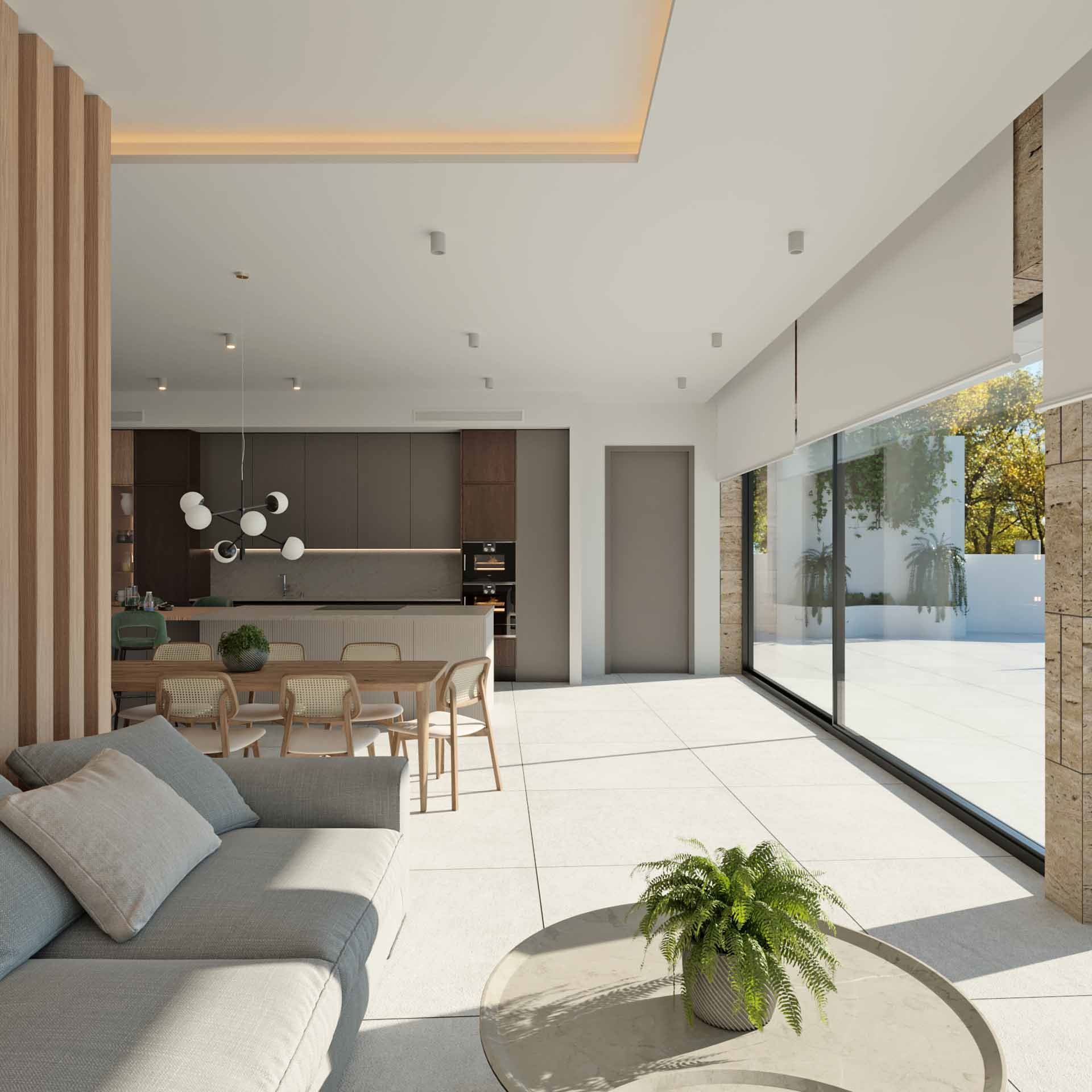 Denna villa med 4 sovrum har en öppen planlösning med fönster från golv till tak som vetter mot en solig terrass med en infinitypool så att du kan njuta av det underbara klimatet och 325 soldagar om året. Den har ett garage för 2 bilar i källaren och en hiss som tar dig till villans entréplan, där du hittar den L-formade vardagsrumsdelen och poolterrassen. Förutom utsökt finish är villan utrustad med bland annat solpaneler, automatiska persienner, AC och hemautomation - allt att komfort och energieffektivitet ska garanteras.