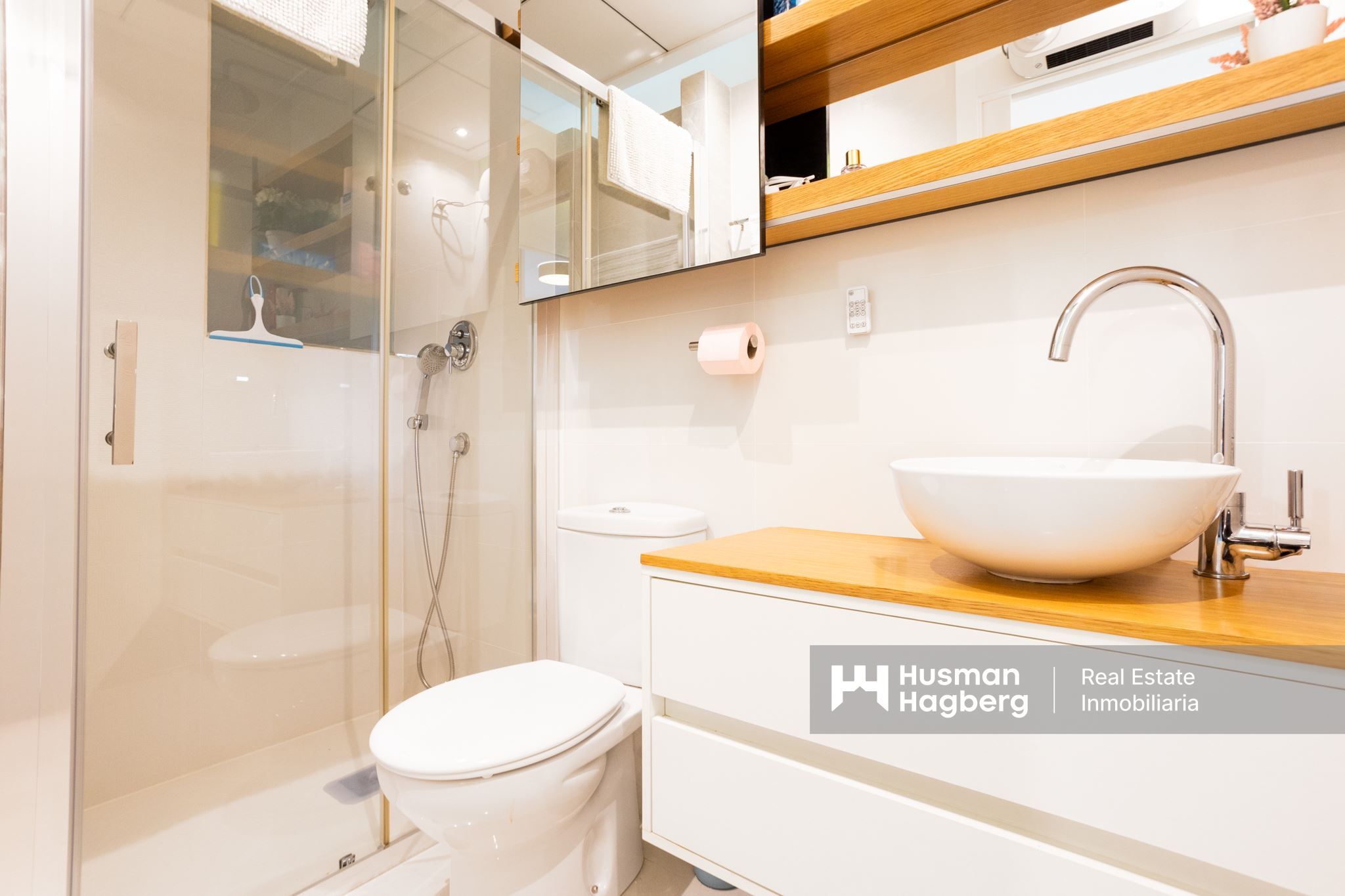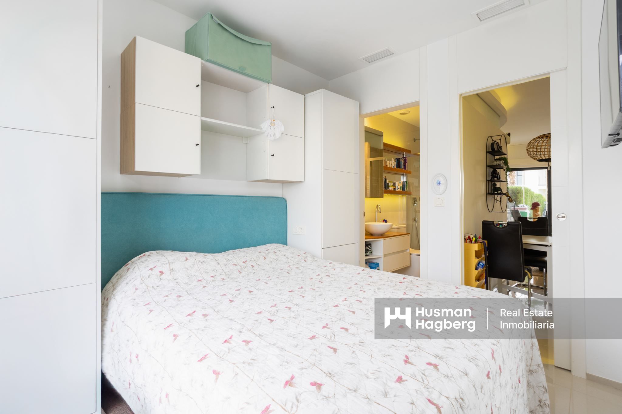 Sovrummen är utrustade med smarta förvaringslösningar i form av inbyggda garderober, och bostaden är designad med fokus på både stil och funktion. Här bor du bekvämt året runt med modern standard och genomtänkta materialval.