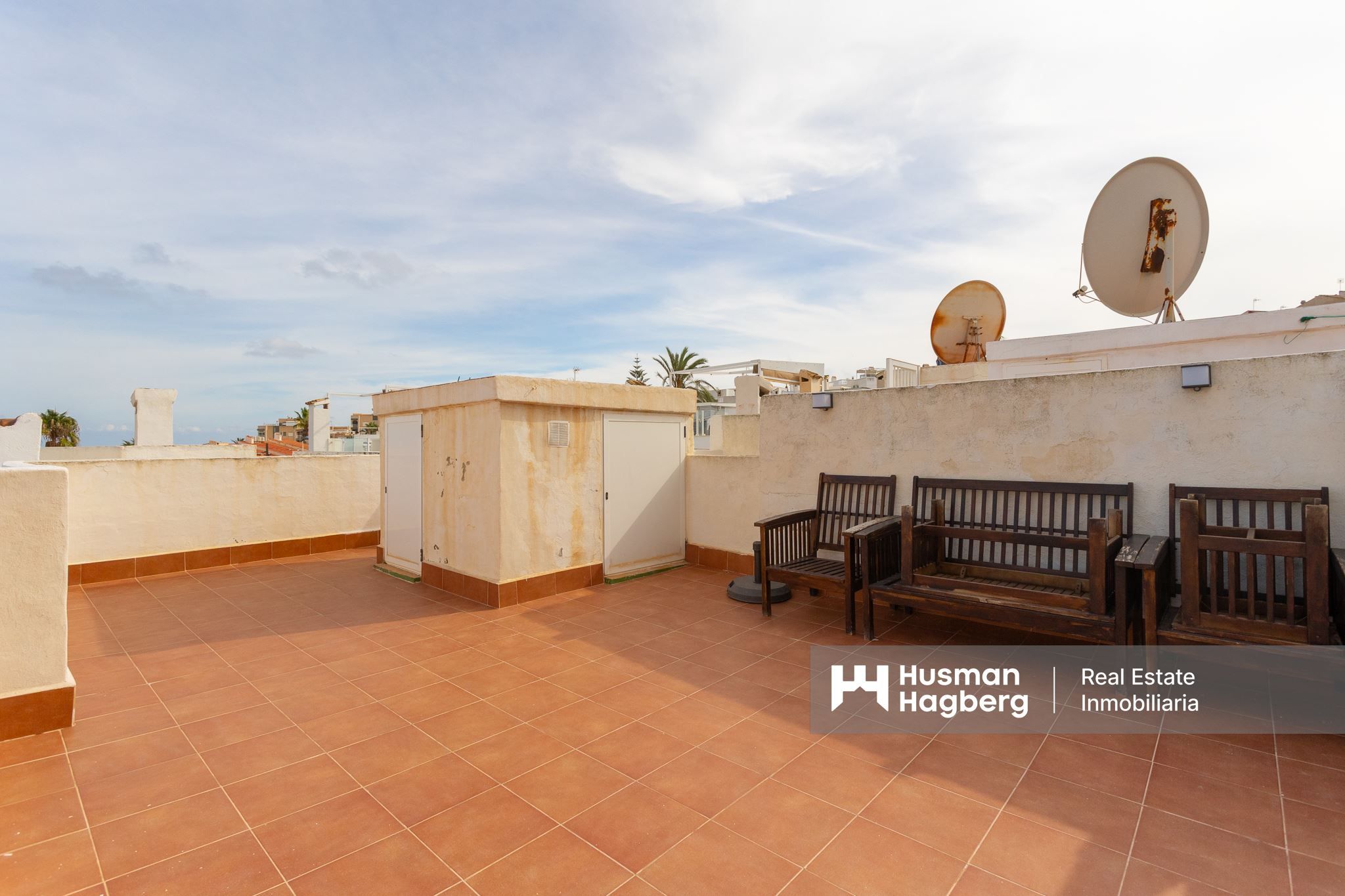 Charmigt radhus med takterrass i soligt läge och havsutsikt